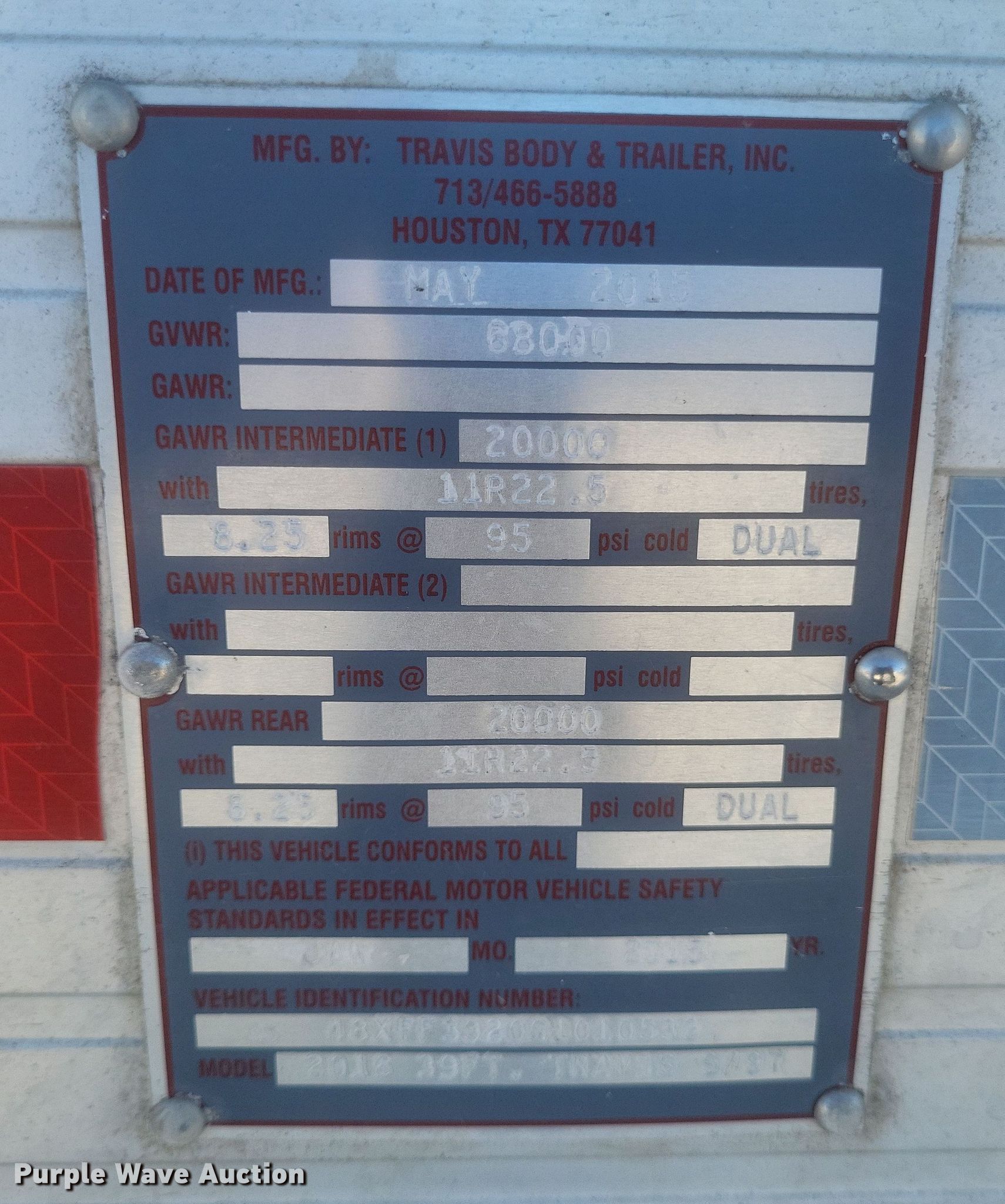 Purple Wave is selling a used End Dump Rock Trailer in Missouri. This item is a 2016 Travis Body and Trailer Travis S/97 end dump trailer with the following: VIN: 48XFF3920G1010532, Unit #: 850