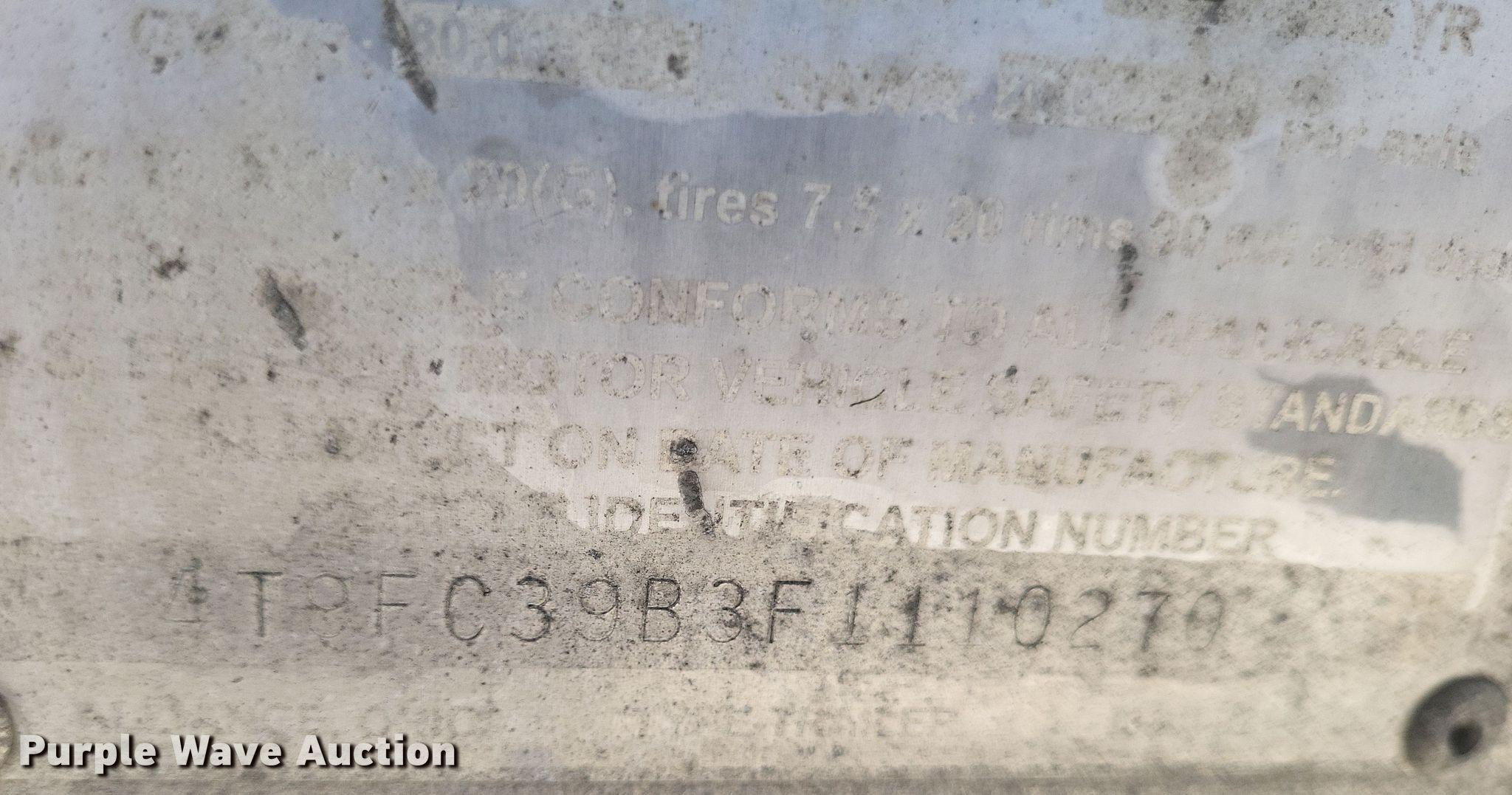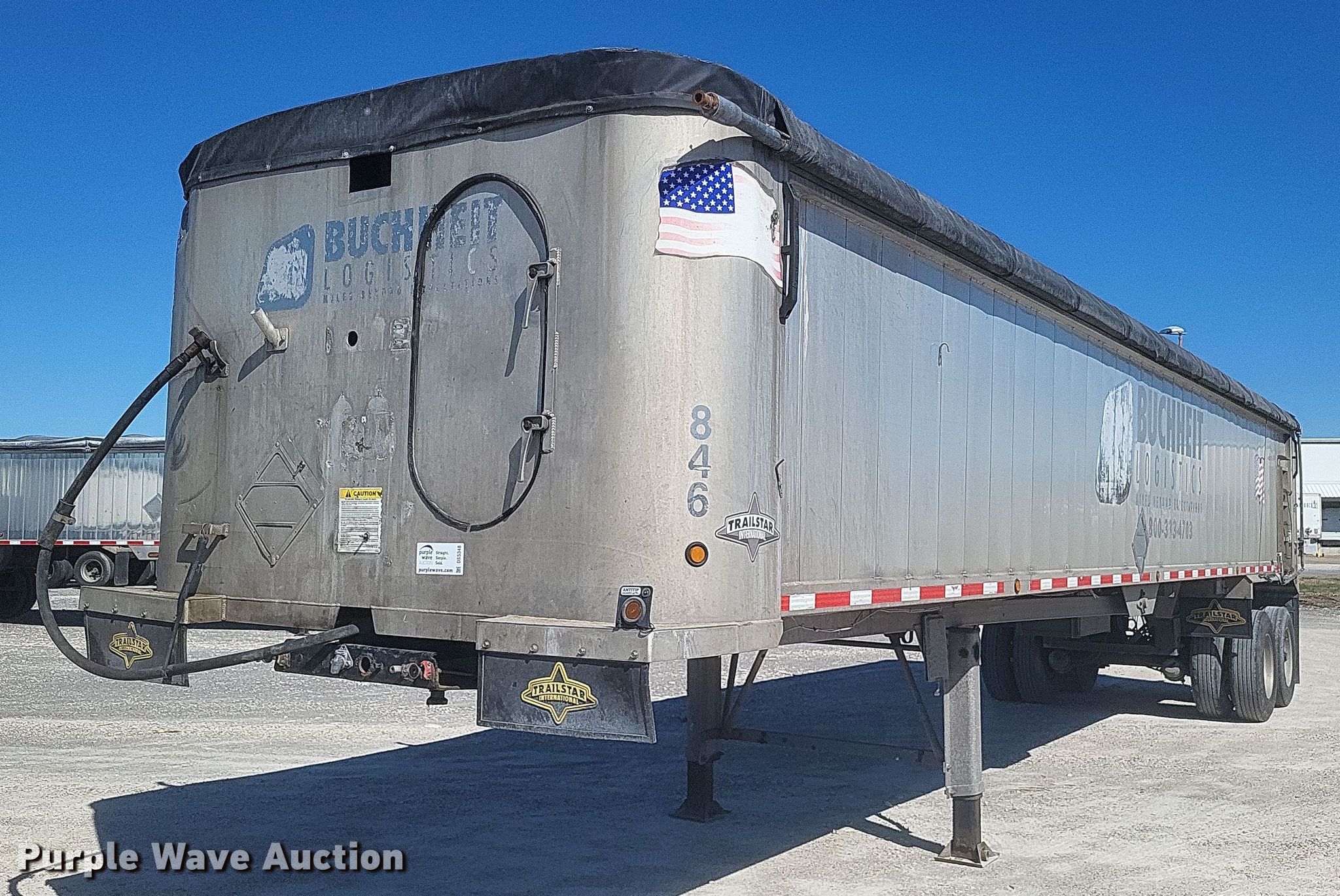 2015 TrailStar end dump trailer. VIN: 4T9FC39B3F1110270, Unit #: 846. Dimensions Overall: 39' 4" L x 8' 6" W, Body: 39' L x 8' 6" W, Side height: 4' 11". Features Body type: Aluminum, Ram: Single, End gate: Air operated Grain door, Roll tarp. Chassis Landing gear: Dual, Suspension: Air, Brakes: Air, Axles: Tandem. Tires Aluminum wheels, Steel wheels, Size: 295/75R22.5. Missouri title. Title distribution may be delayed up to 14 days from verification of funds. Buchheit Logistics/World Wide Leasing, Inc.. Scott City, MO 63780