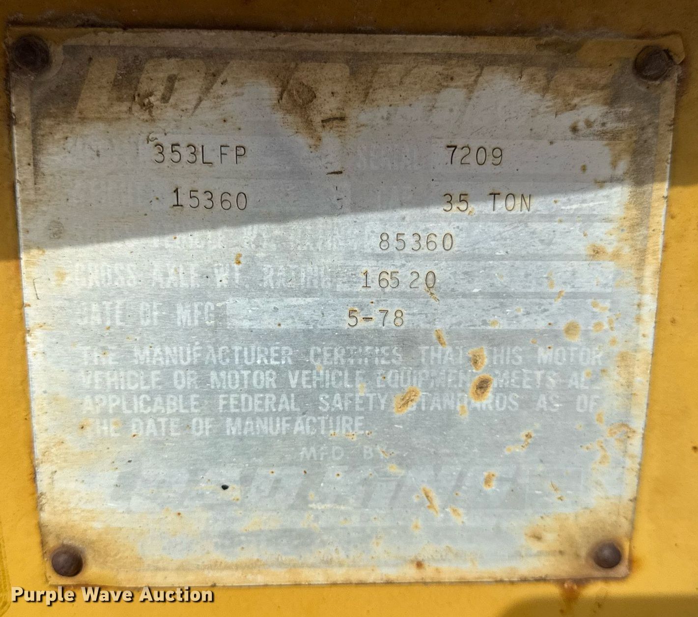 Purple Wave is selling a used Equip. Trailer in Illinois. This item is a 1978 Load King 353LFP lowboy equipment trailer with the following: Overall: 40' 6" L x 96" W, Deck: 31' L x 96" W, Top deck length: 8', Deck height: 34"