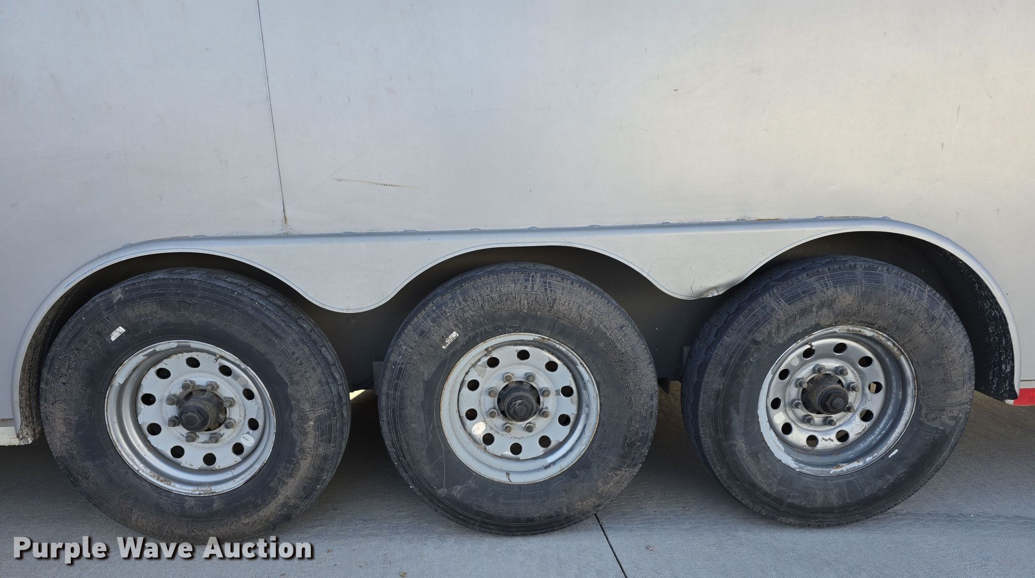 2018 Travalong enclosed cargo trailer. VIN: 1R9GS3035J1784185. Dimensions Overall: 37' 6" L x 102" W, Body: 30' L x 98" W, Rear door / ramp 73" H. Features Deck type: Poly. Chassis Hitch: Gooseneck, Landing gear: Dual, Hydraulic, Suspension: Torsion, Brakes: Electric, Axles: Triple, GVWR: 21,000 lbs, GAWR: 7,000 lbs. Tires Steel wheels, Size: ST235/85R16. Nebraska electronic title. Title has a lien that will be released following the close of the auction. A paper title will be printed once the lien is released. Title distribution may be delayed up to 45 days from verification of funds. BGT Contractors, LLC. 8565 Lake Ridge Drive. Plattsmouth, NE 68048