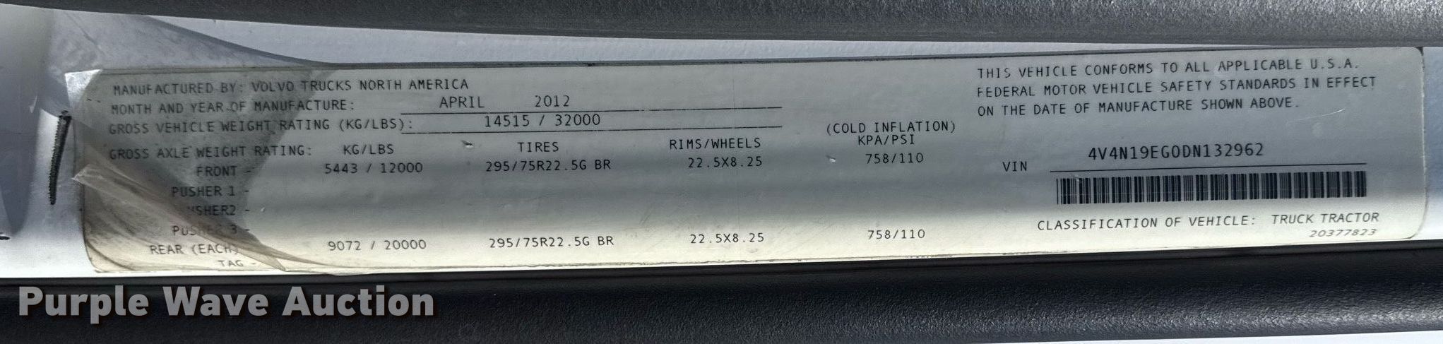 Purple Wave is selling a used Truck Tractor in Oklahoma. This item is a 2013 Volvo Truck VNL semi truck with the following: Miles: 674,481 on odometer, VIN: 4V4N19EG0DN132962