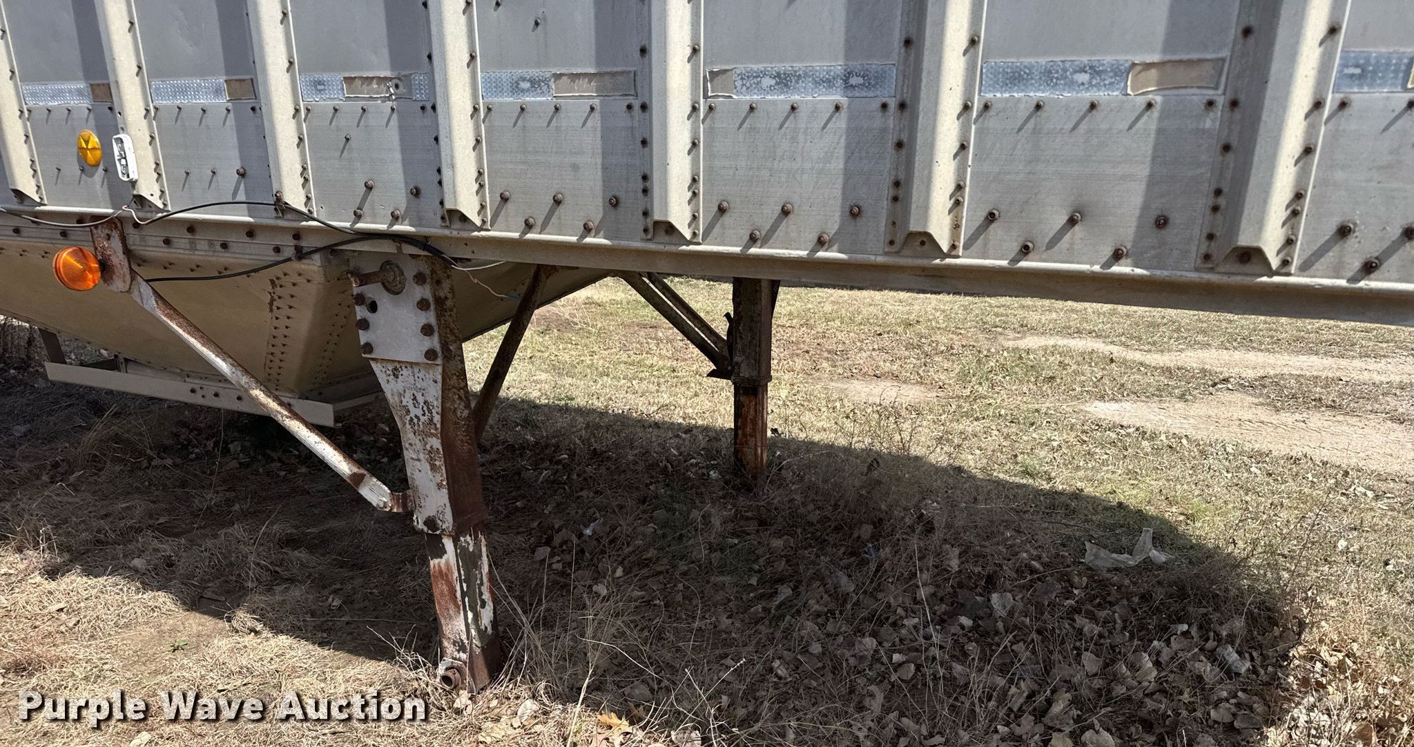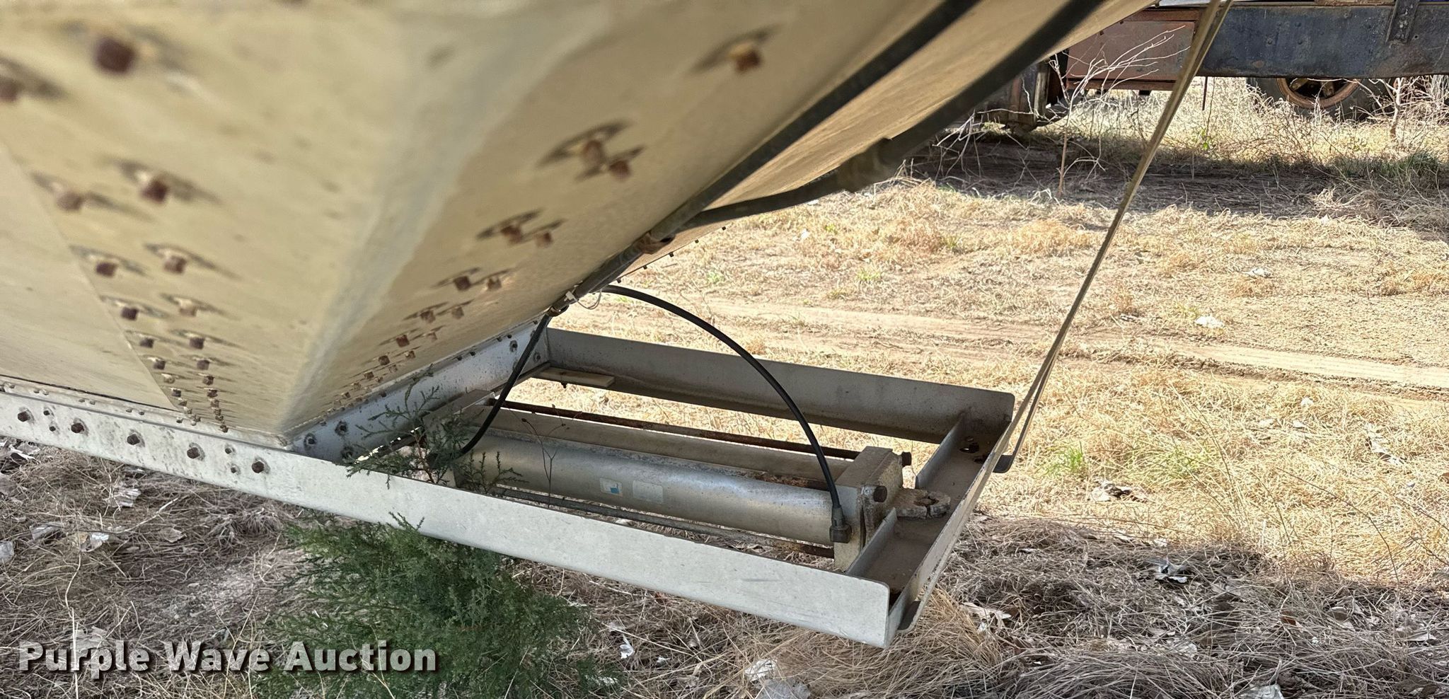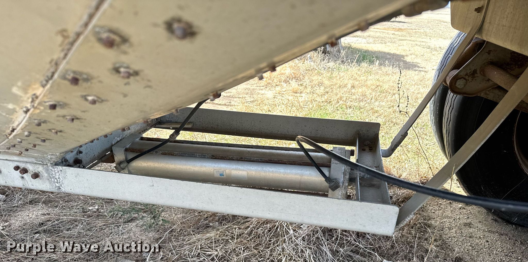 1985 Guthrie grain trailer. VIN: 1G9B42201FG007163. Dimensions Overall: 43' L x 94" W, Side height: 62". Features Body type: Aluminum, Hoppers: Double Trap gates: Air operated, Roll tarp. Chassis Landing gear: Dual, Suspension: Spring, Brakes: Air, Axles: Tandem, GVWR: 68,000 lbs, GAWR: 18,000 lbs. Tires Steel wheels, Size: 11R24.5. Kansas title. Title distribution may be delayed up to 14 days from verification of funds. Kanopolis, KS 67454