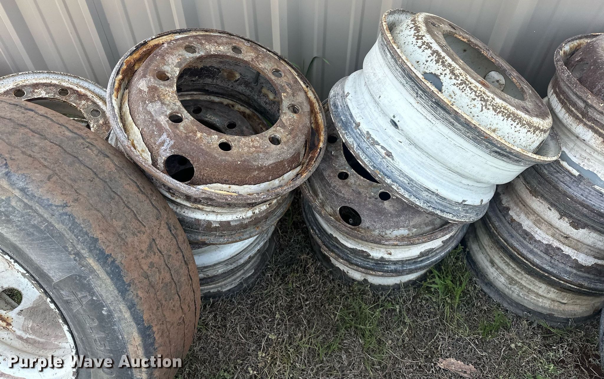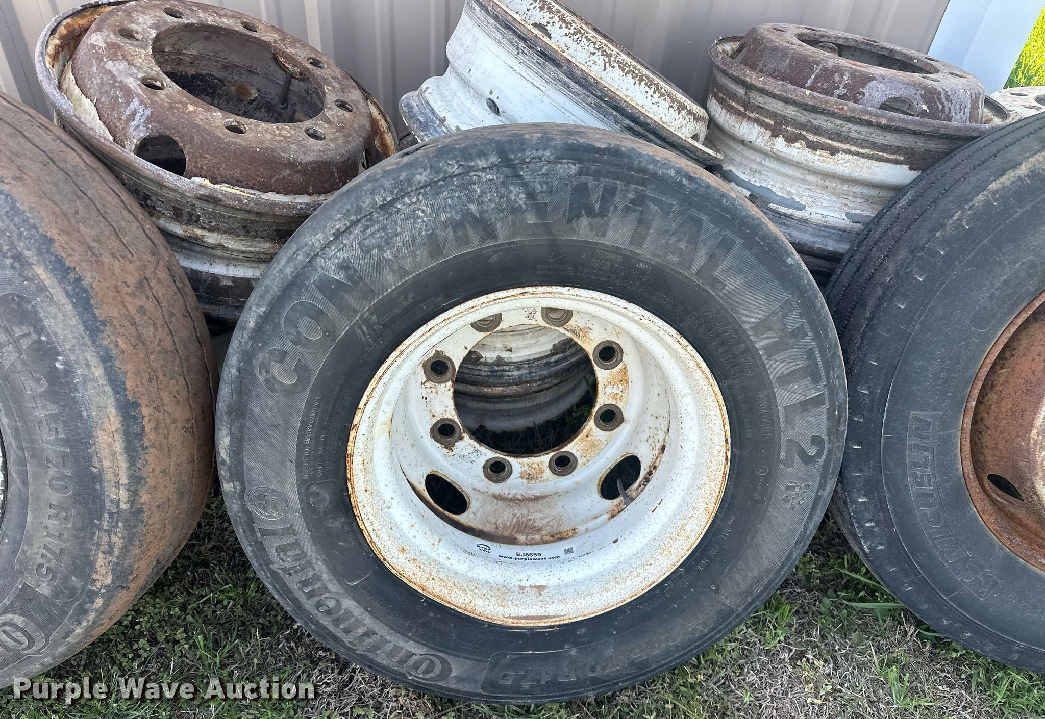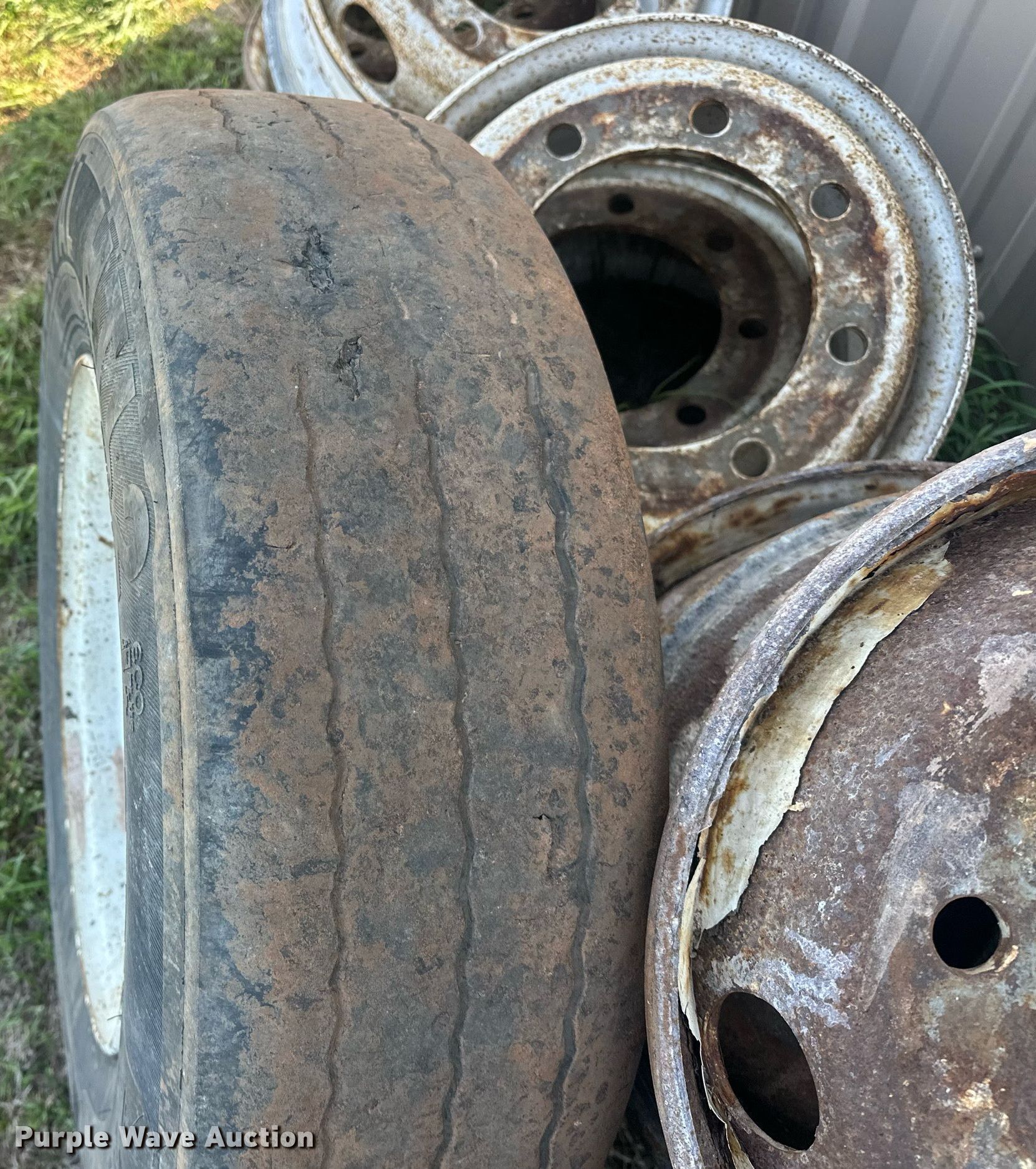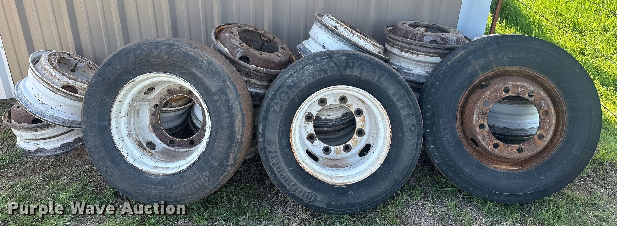 Purple Wave is selling a used Fleet Tires in Oklahoma. This item is a Tires and wheels with the following: (3) 245/70R17.5 tires, (13) 8 lug wheels