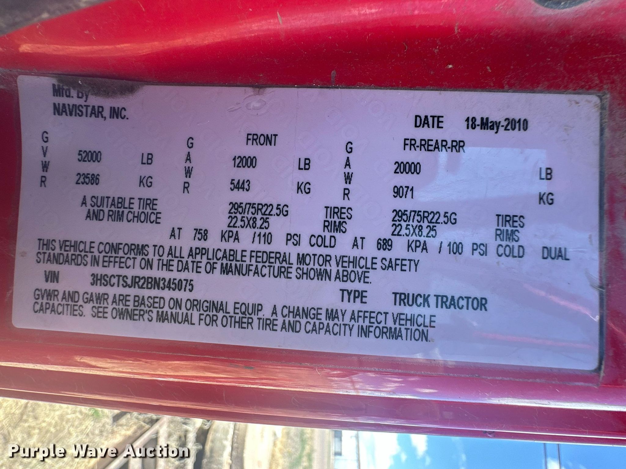 Purple Wave is selling a used Truck Tractor in Kansas. This item is a 2011 International ProStar semi truck with the following: Miles: 956,252 on odometer, VIN: 3HSCTSJR2BN345075