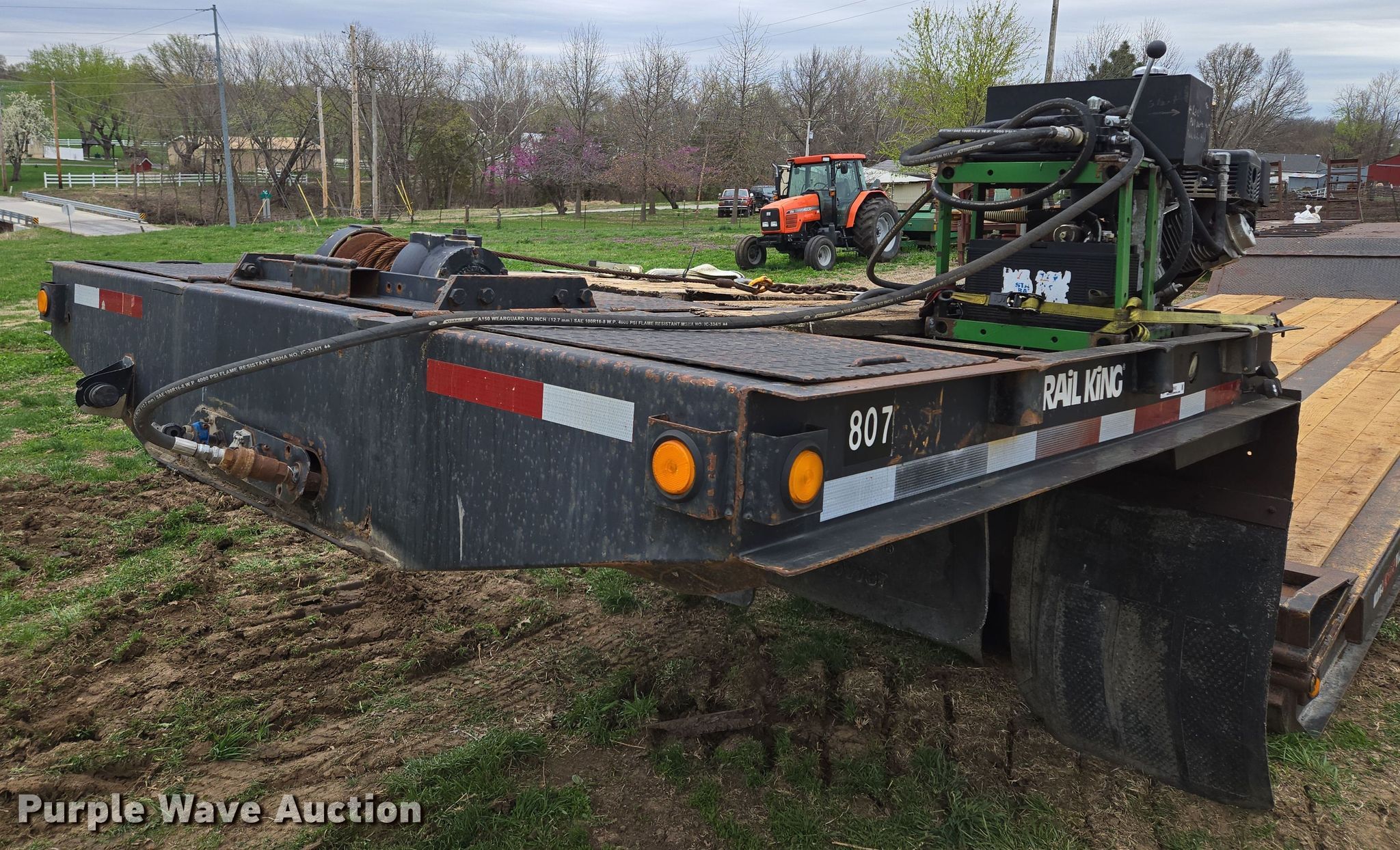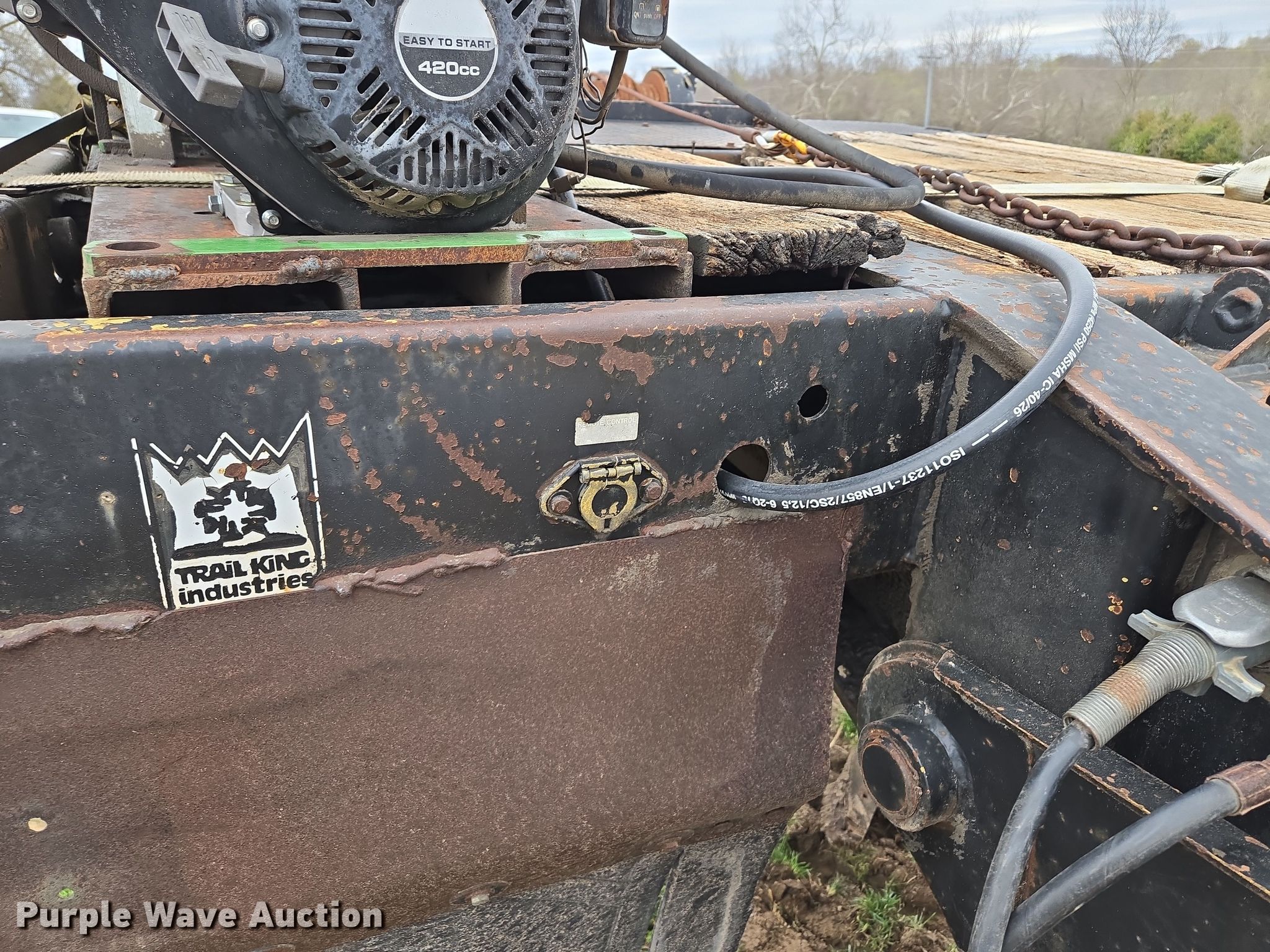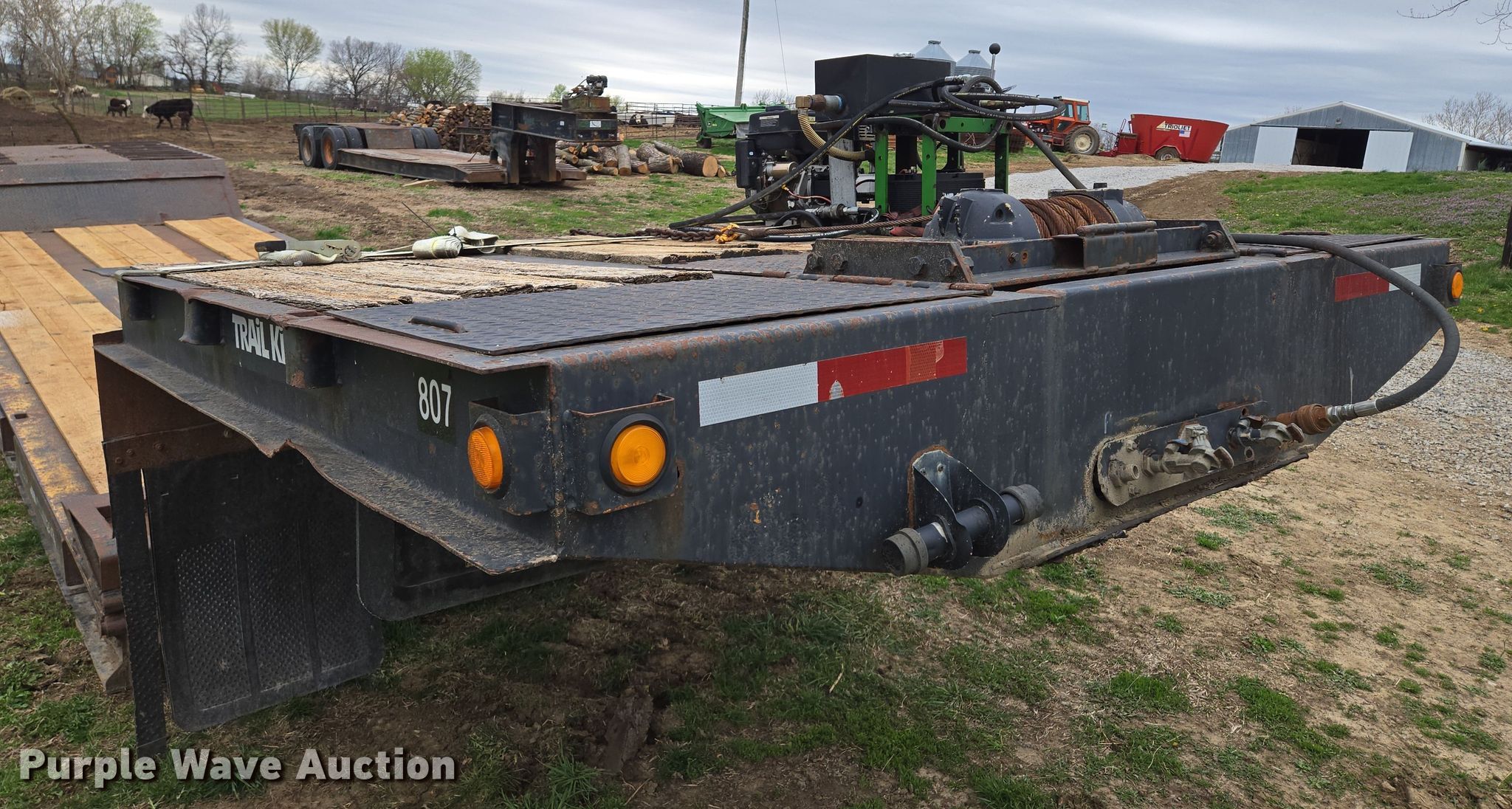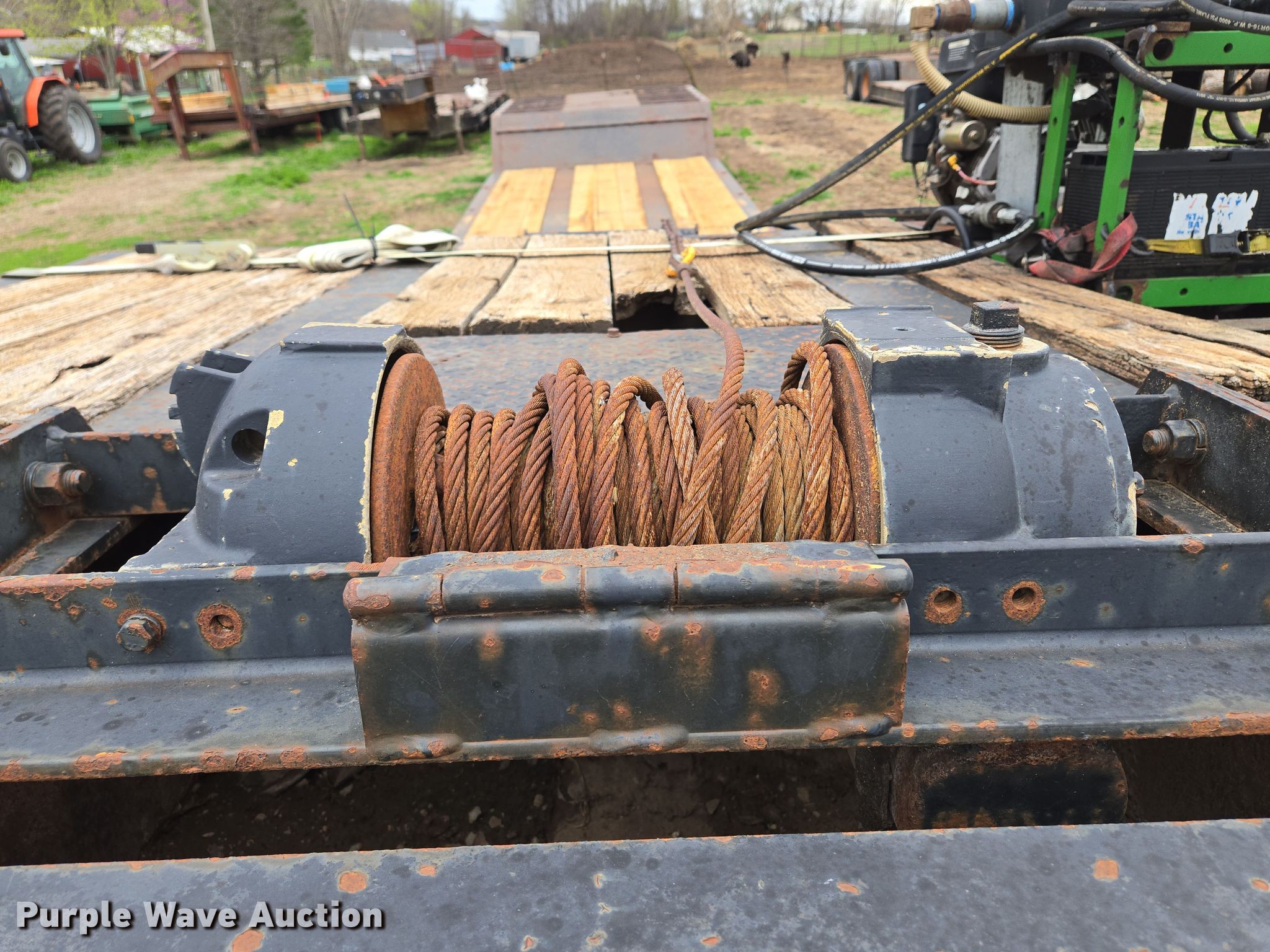 1998 Trail King TK70DGHT-532 lowboy equipment trailer. VIN: 1TKJ05329WM100428. Dimensions Overall: 45' L x 102" W, Deck: 24' L x 102" W, Top deck length: 89", Rear deck length: 96", Deck height: 18", Ramps: Manual. Features Deck type: Steel, Wood, Neck type: Detachable, Self-contained hydraulics, Winch Braden, Hydraulic controls: Manual. Chassis Suspension: Air, Brakes: Air, Axles: Tandem, GVWR: 93,280 lbs. Tires Steel wheels, Size: 255/70R22.5. Missouri title. Title distribution may be delayed up to 14 days from verification of funds. Excelsior Springs, MO 64024