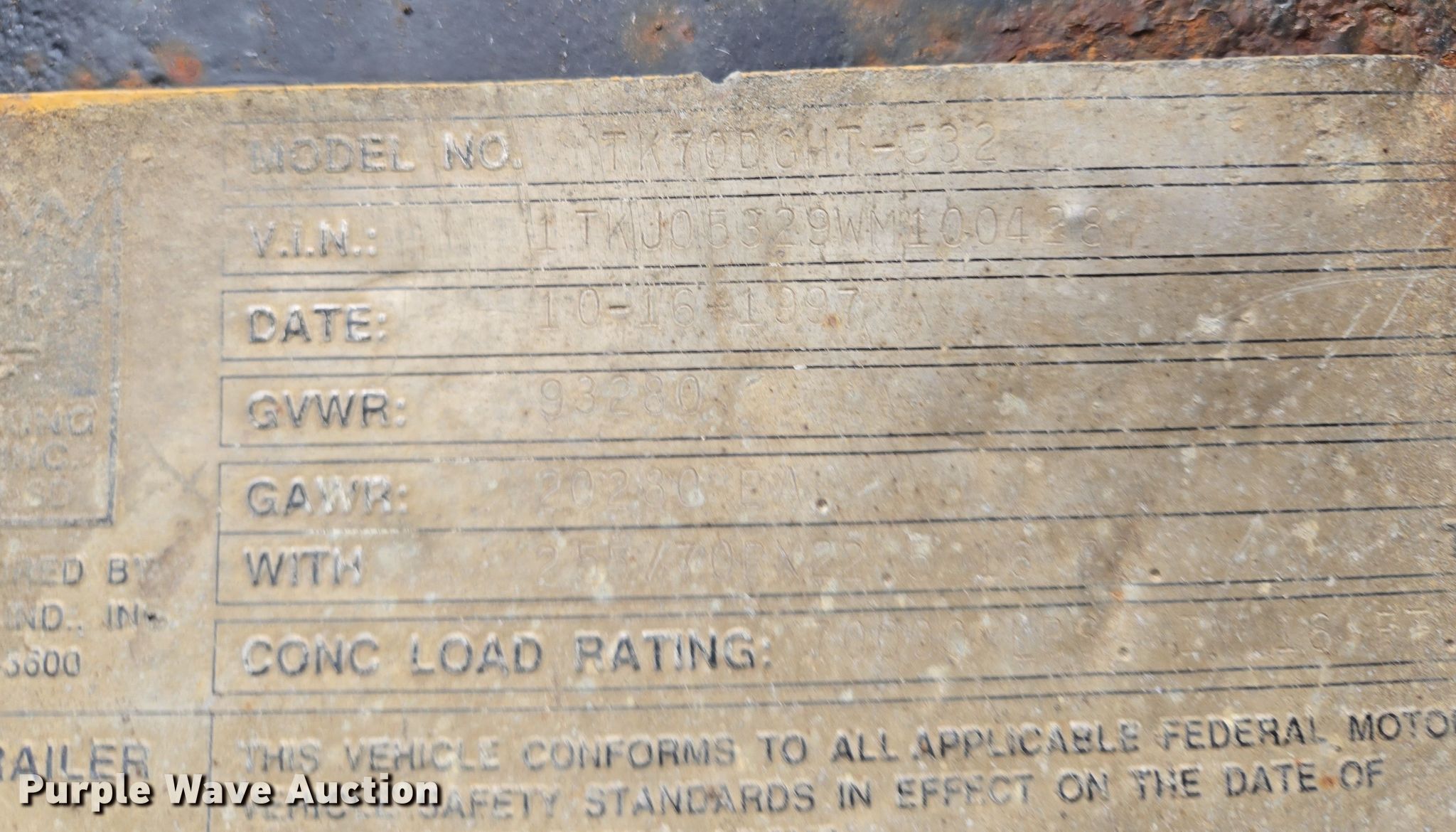 Purple Wave is selling a used Equip. Trailer in Missouri. This item is a 1998 Trail King TK70DGHT-532 lowboy equipment trailer with the following: VIN: 1TKJ05329WM100428