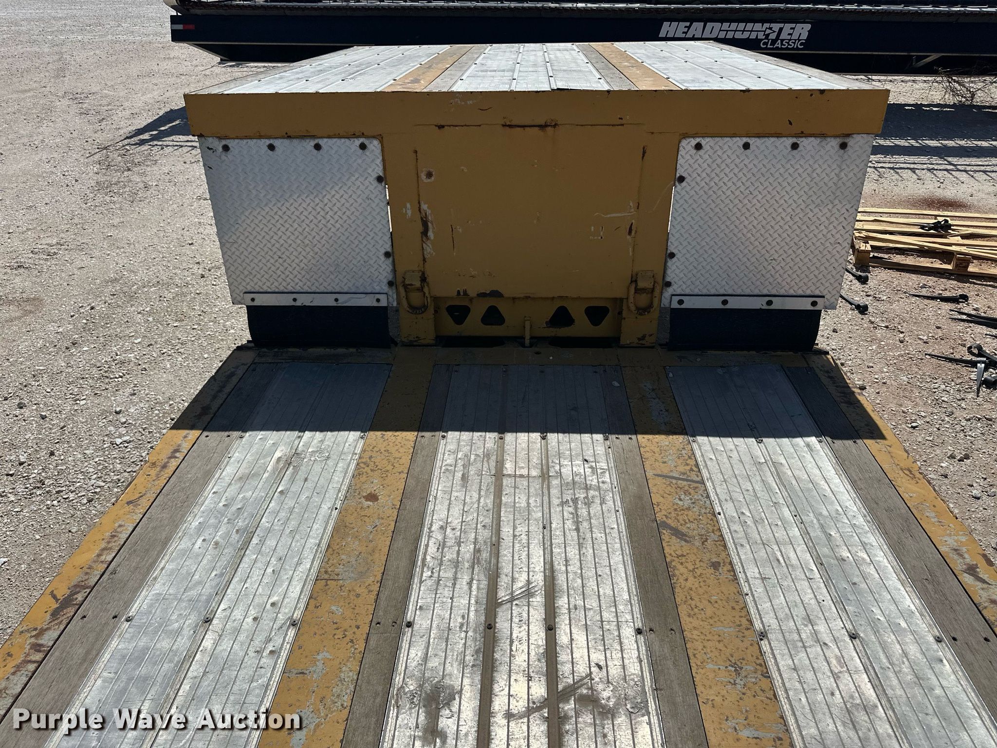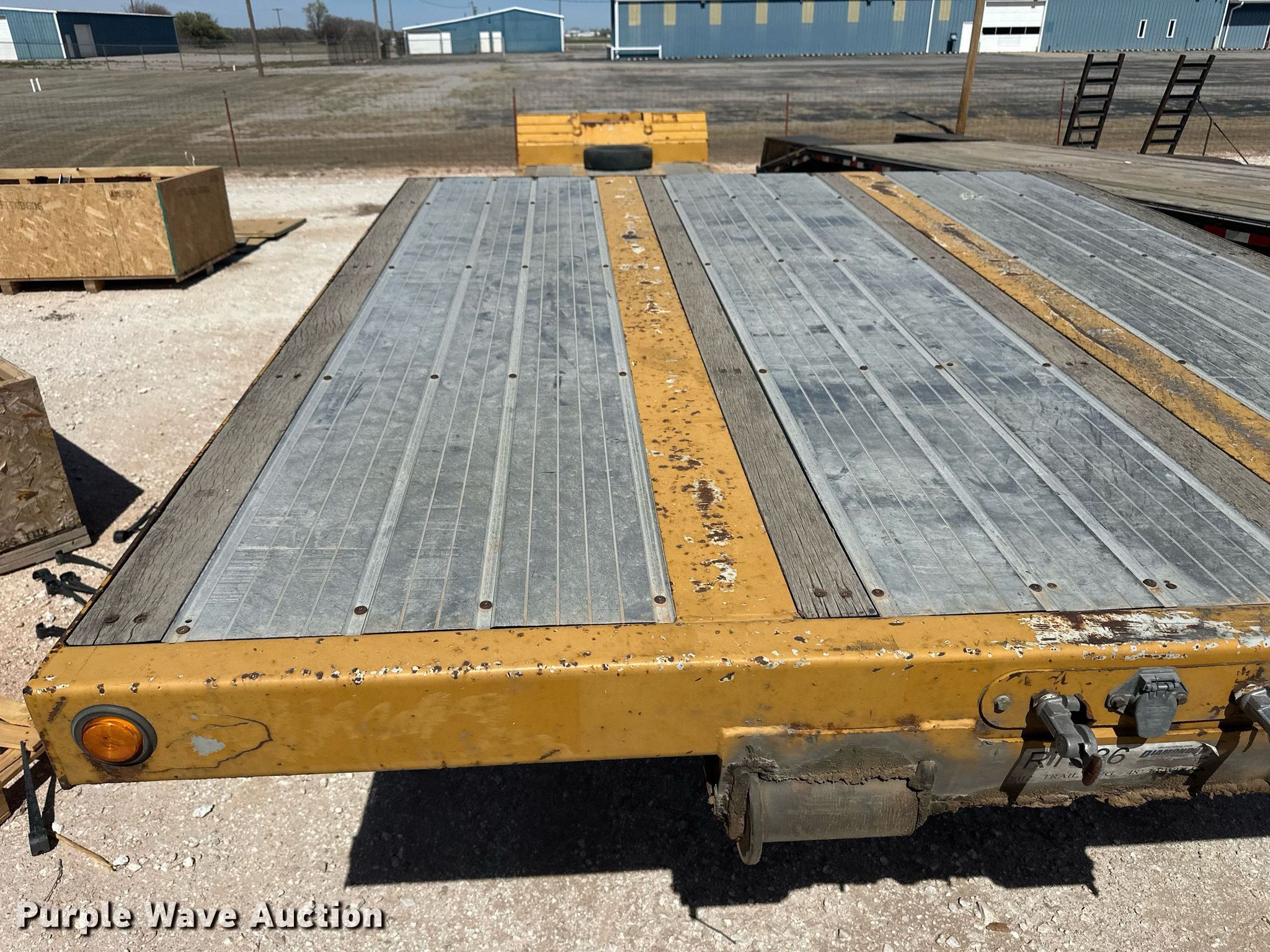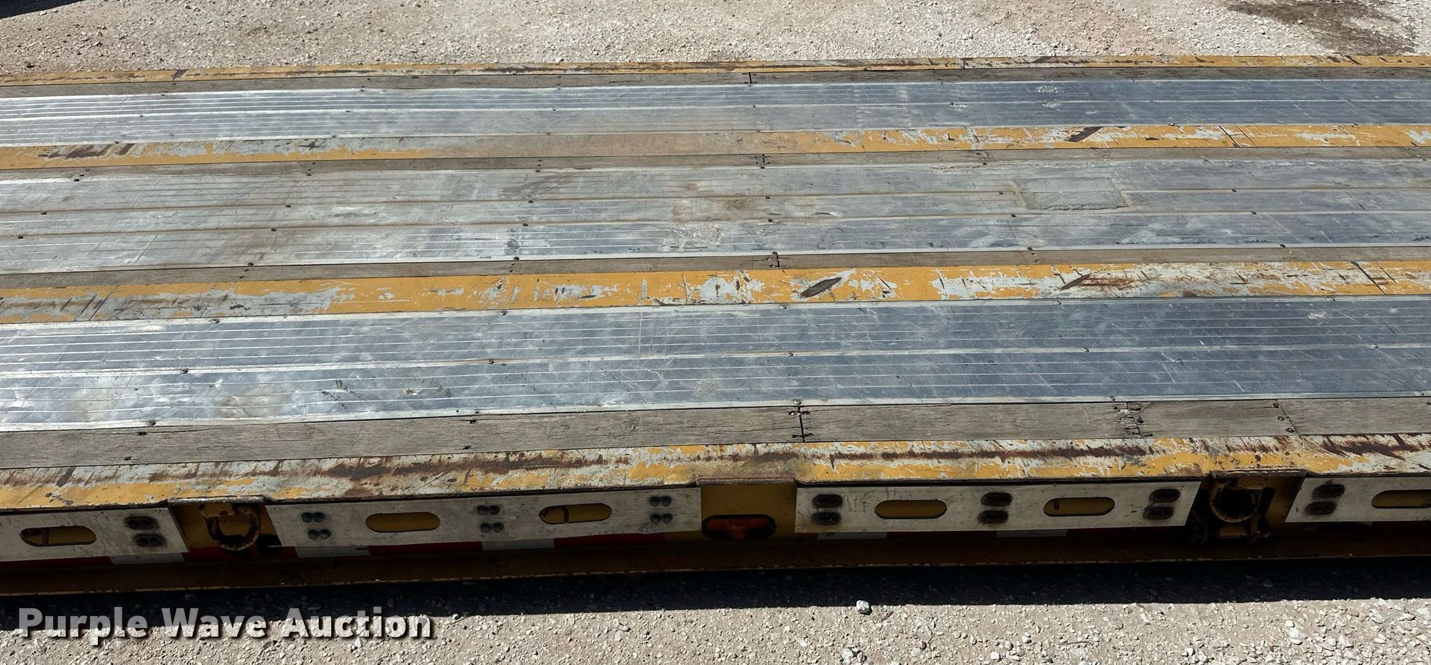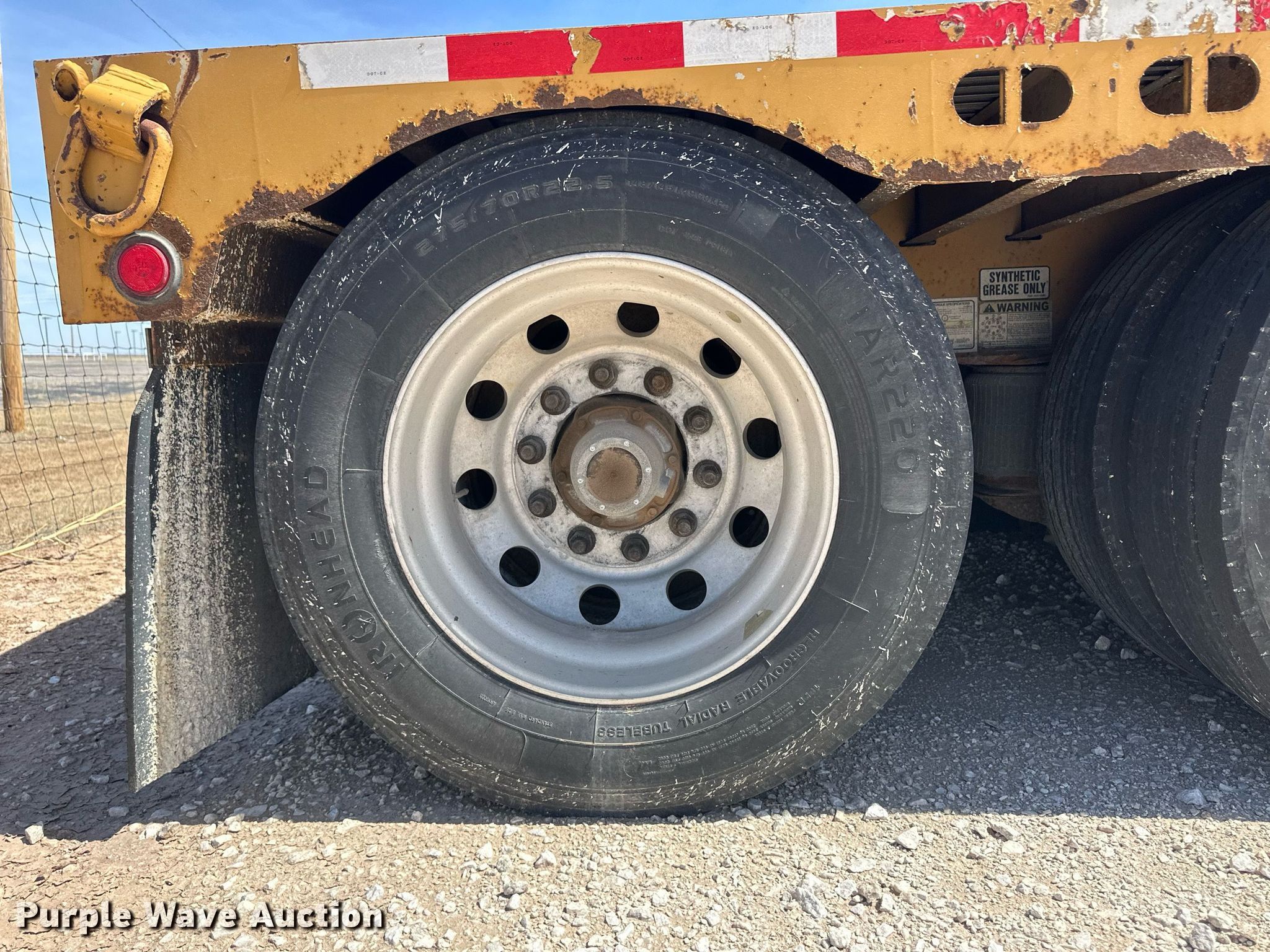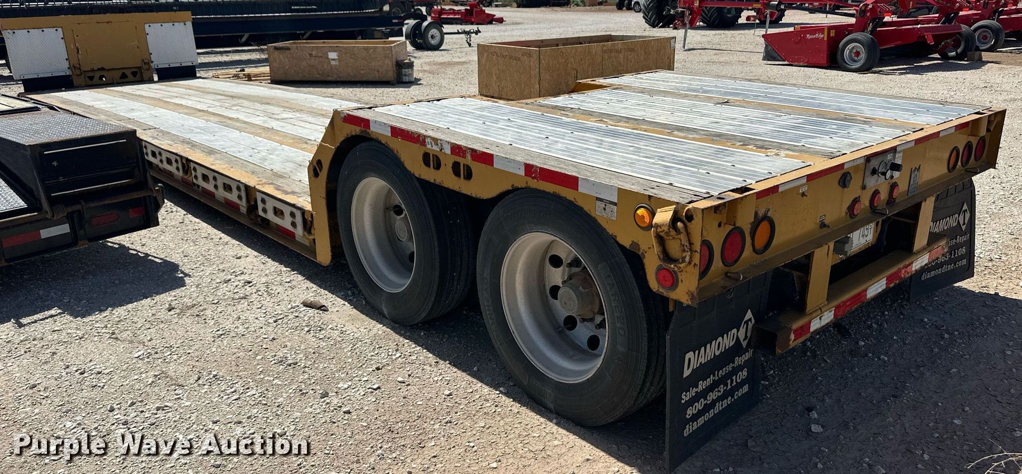 2012 Trail King TK54MG-482 lowboy equipment trailer. VIN: 1TKJ04829CM043386. Dimensions Overall: 48' L x 102" W, Deck: 30' L x 102" W, Top deck length: 9', Rear deck length: 7'. Features Deck type: Aluminum, Outriggers: Pull-out, Neck type: Detachable. Chassis Suspension: Air, Brakes: Air, Axles: Tandem, GVWR: 70,400 lbs, GAWR: 23,000 lbs. Tires Aluminum wheels, Size: 275/70R22.5. Illinois title. Parallel Ag. 2005 North Main Street. Fairview, OK 73737