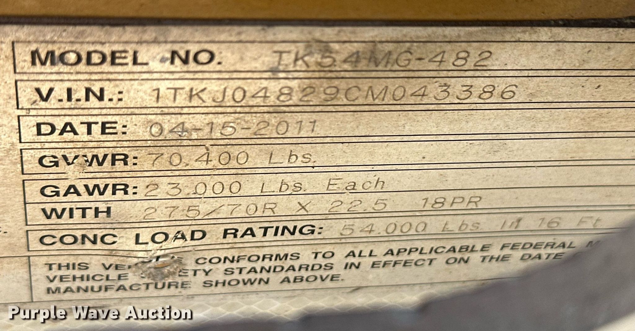 Purple Wave is selling a used Equip. Trailer in Oklahoma. This item is a 2012 Trail King TK54MG-482 lowboy equipment trailer with the following: VIN: 1TKJ04829CM043386
