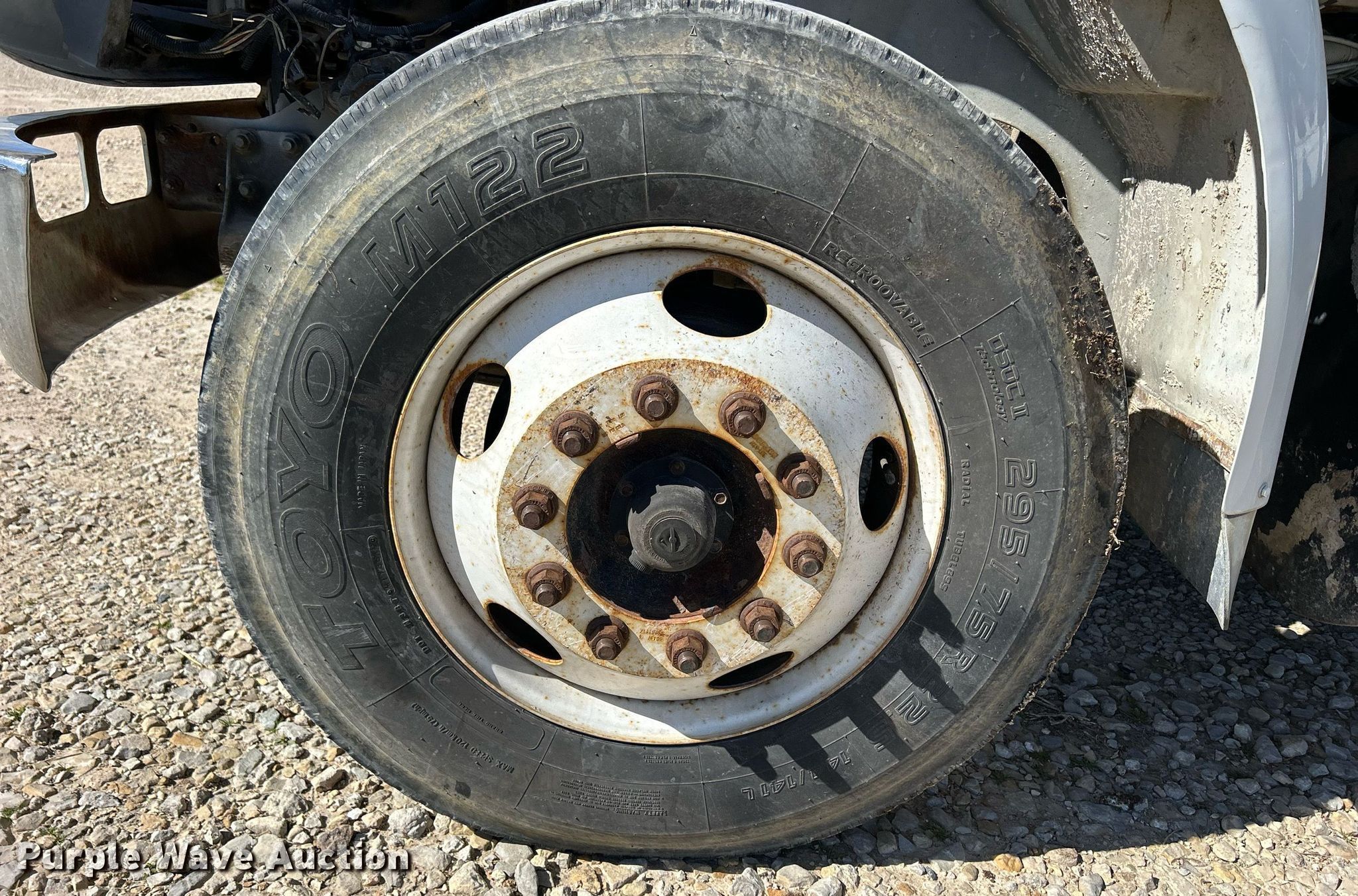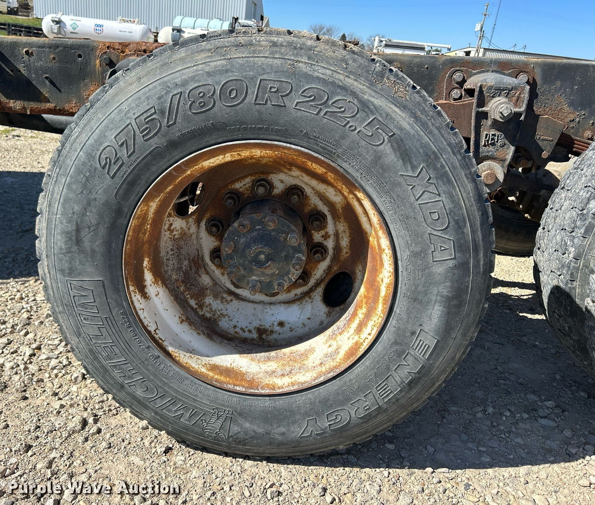 2001 International 8100 truck cab and chassis. Miles: 6,491 on odometer Actual miles unknown, VIN: 1HSHBATN11H348006. Engine Caterpillar C-10, 3176, Displacement: 10.3L OHV, Cylinders: 6, Fuel type: Diesel. Transmission Manual. Chassis Axles: Tandem, Differential lock: Inter-axle, Suspension: Spring, Brakes: Air, PTO, Truck chassis: 16' 2", GVWR: 32,000 lbs. Interior AC, Heat, Heated mirrors, Cruise control, Air ride cab. Features Fuel tank: Dual. Tires Size: 295/75R22.5, Front left drive tires size: 275/80R22.5. Notes Dash warning indicator: Engine light, Water/Oil light, Windshield chipped or cracked, Drivers door issues, does not latch., Hood issues does not latch correctly, Rust damage, holes in floorboard. Missouri title. MFA Inc. Owensville, MO 65066