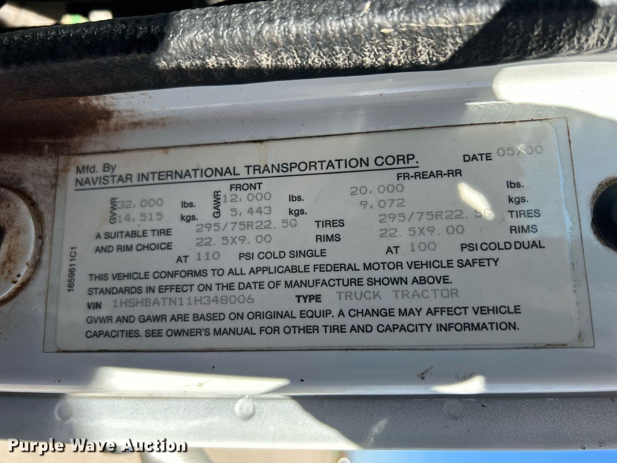 Purple Wave is selling a used Truck Chassis in Missouri. This item is a 2001 International 8100 truck cab and chassis with the following: Miles: 6,491 on odometer, Actual miles unknown, VIN: 1HSHBATN11H348006