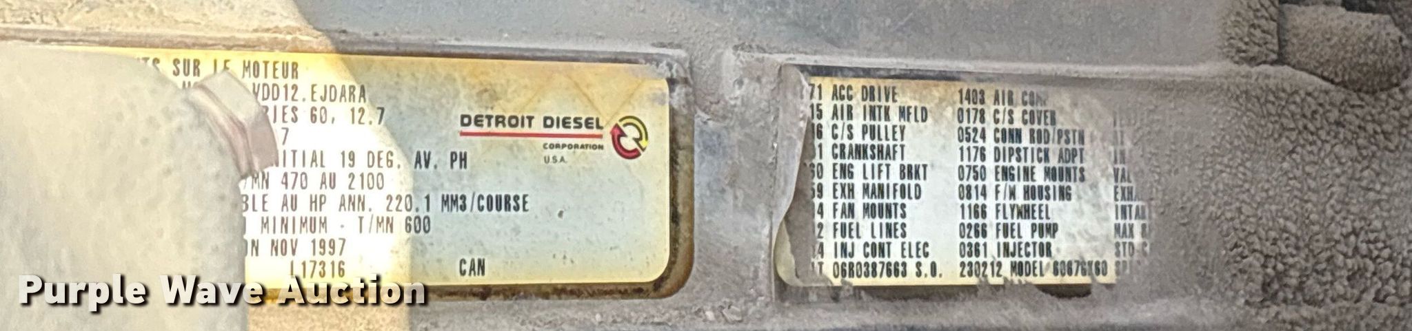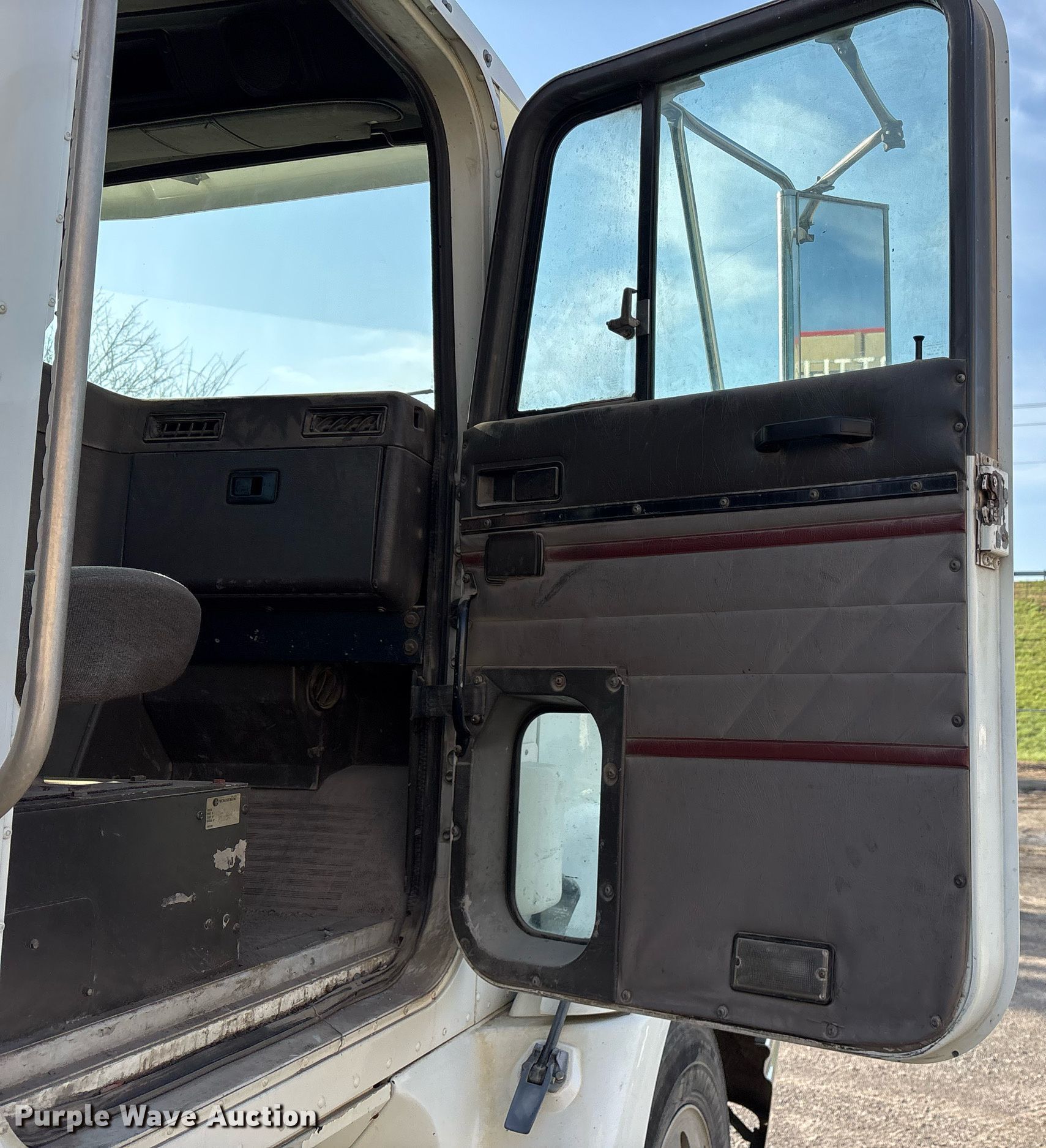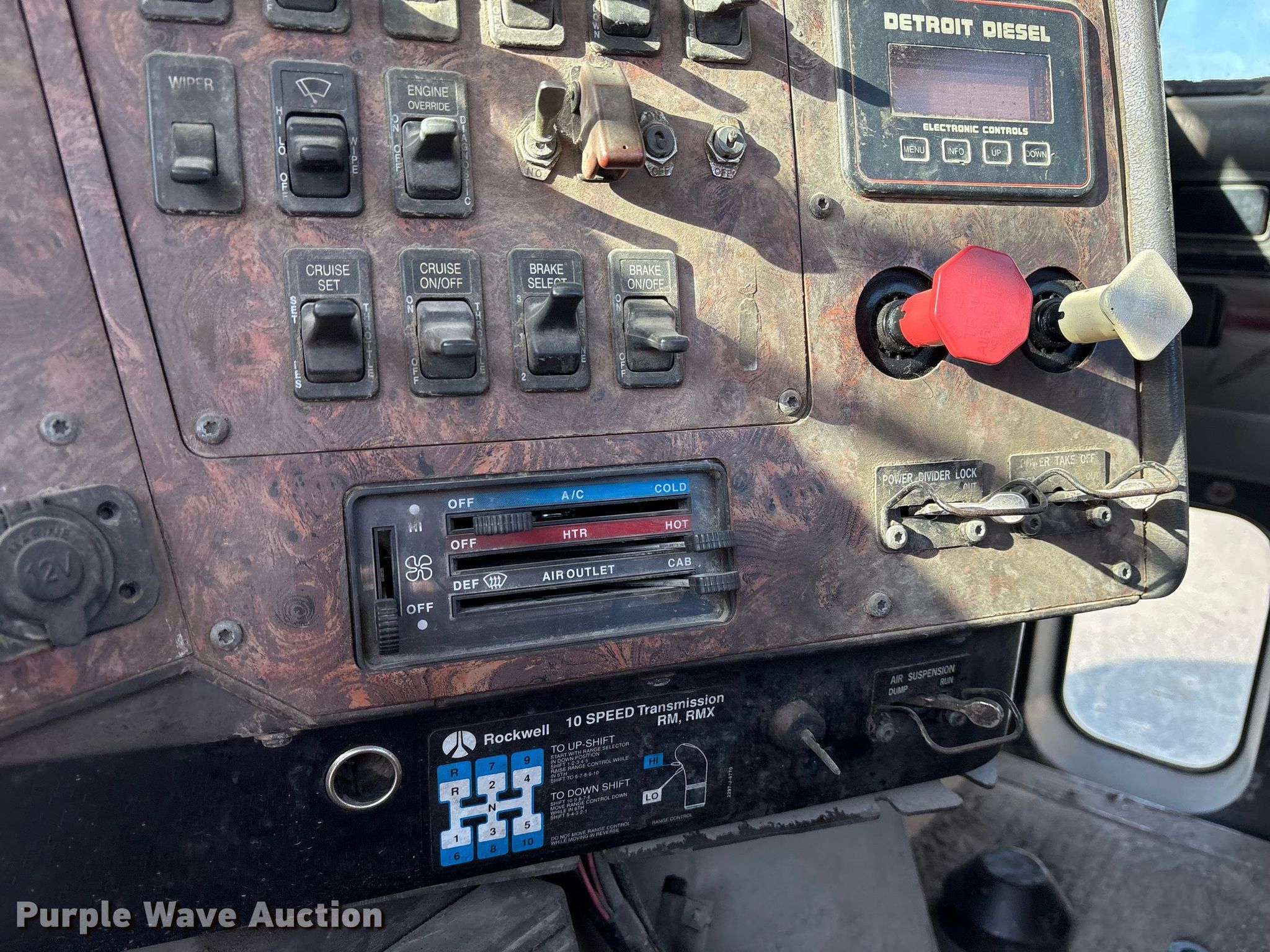 1998 International 9200 semi truck. Miles: 986,743 on odometer, VIN: 2HSFMAMR8WC058203, Unit #: 328. Engine Detroit Diesel Series 60, Displacement: 12.7L, Cylinders: 6, Fuel type: Diesel. Transmission Rockwell, Manual, Speed: 10. Chassis Axles: Tandem, Differential lock: Inter-axle, Suspension: Air Dump valves, Brakes: Air, GVWR: 52,000 lbs FAWR: 12,000 lbs, IAWR: 20,000 lbs, RAWR: 20,000 lbs, Wheelbase: 183". Interior AC, Heat, Heated mirrors, Power windows, Cruise control. Features Deck plate: Aluminum, Fifth wheel type: Fixed, Fuel tank: Dual. Tires Size: 275/89R24.5. Notes Windshield chipped or cracked. Oklahoma title. Title distribution may be delayed up to 14 days from verification of funds. Love Bottling Company. Muskogee, OK 74401