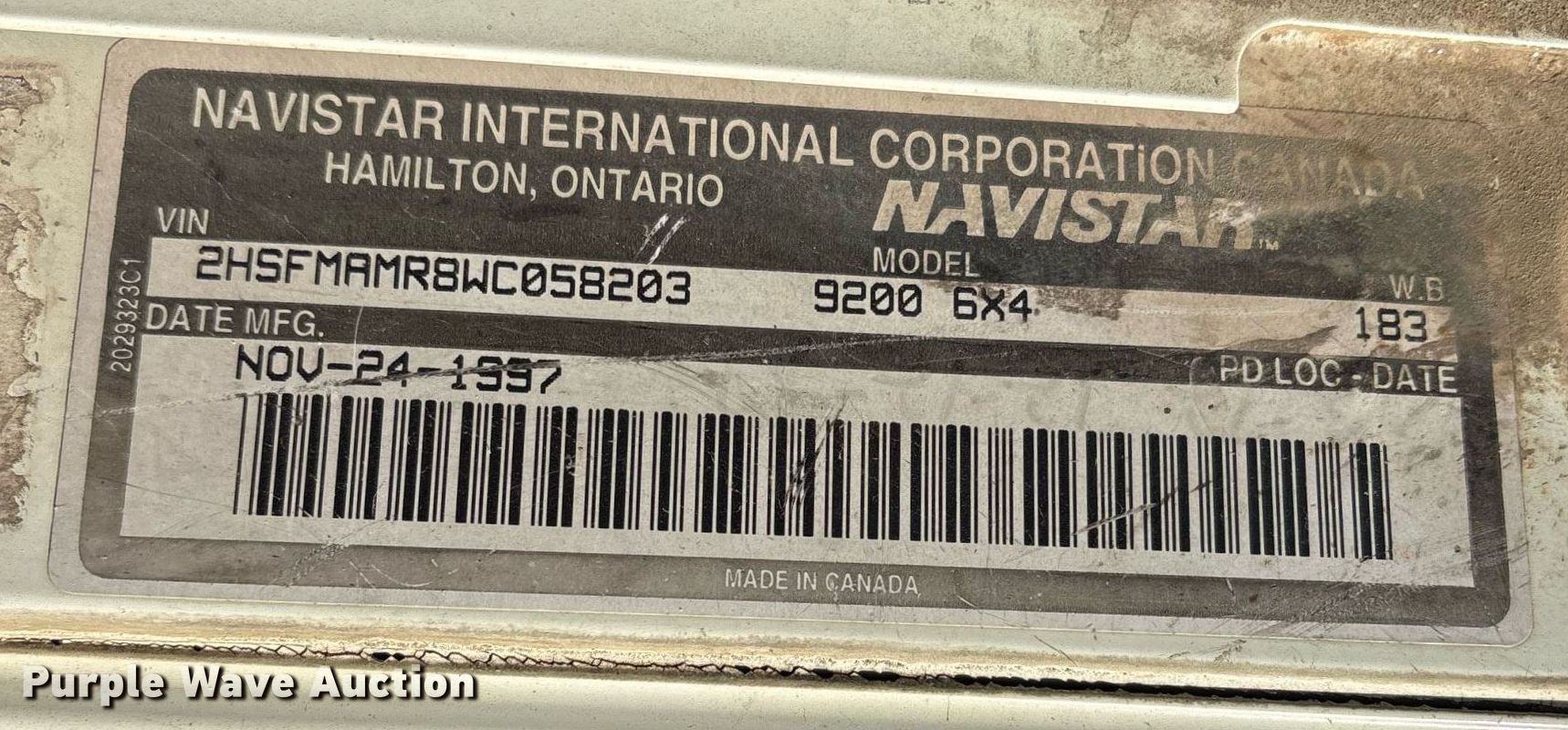 1998 International 9200 semi truck has sold in Muskogee, Oklahoma for $10010. Item OB9601 sold on May 1st, 2025.
