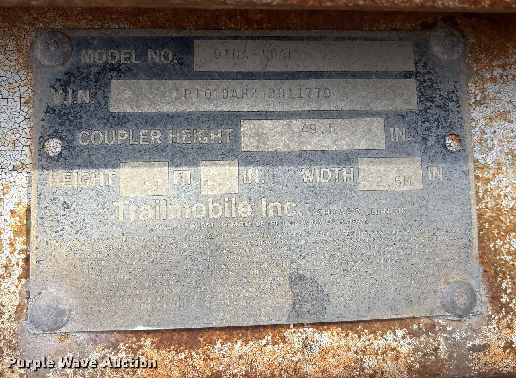 Purple Wave is selling a used Dry Van Trailer in Oklahoma. This item is a 1996 Trailmobile dry van trailer with the following: VIN: 1PT01DAH2T9011770
