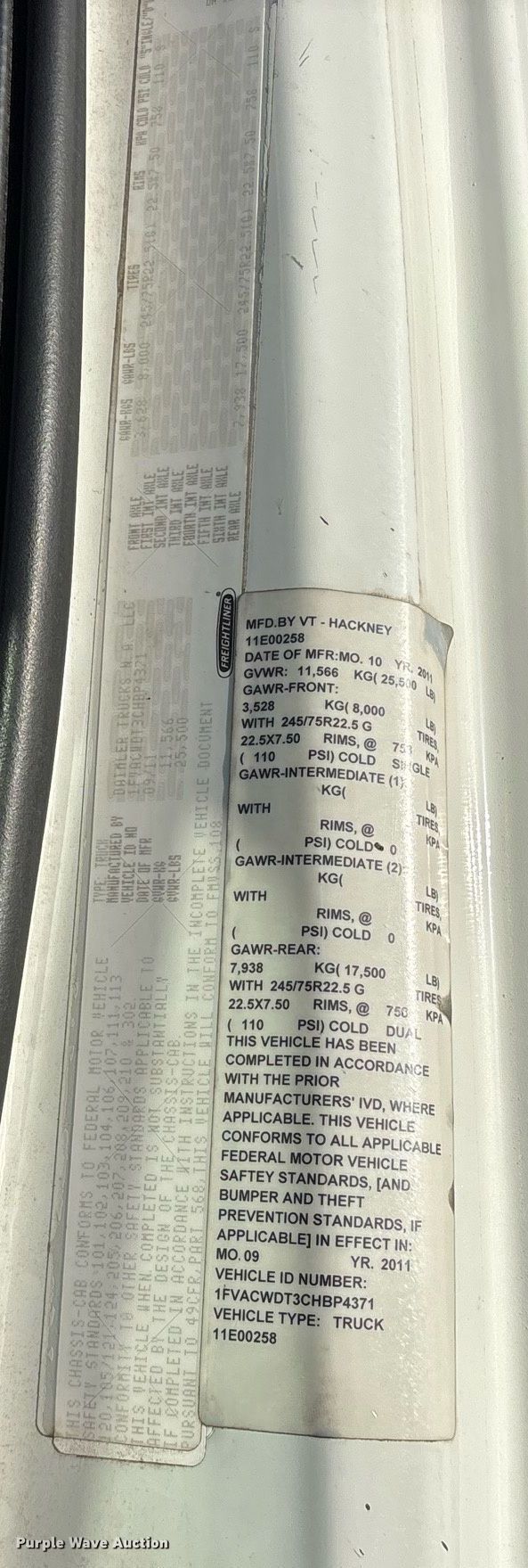 2012 Freightliner Business Class M2 delivery truck. Miles: 244,674 on odometer, Hours: 14,144 on meter, VIN: 1FVACWDT3CHBP4371, Unit #: 232. Engine Cummins, Displacement: 6.7L, Cylinders: 6, Fuel type: Diesel. Transmission Orscheln, Automatic. Chassis Axles: Single, Suspension: Spring, Brakes: Air, GVWR: 25,500 lbs. Interior AC, Heat, Cruise control. Features Box bed Hackney, Serial: 11E00258, 17' L x 8' W x 93" H, Floor: Aluminum. Tires Size: 255/70R22.5. Notes Dash warning indicator: Check engine. Oklahoma title. Title distribution may be delayed up to 14 days from verification of funds. Love Bottling Company. Muskogee, OK 74401