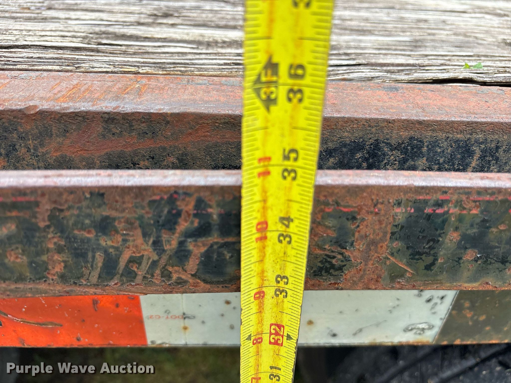 1996 Ehrlish drop deck trailer. VIN: 45PSD482XT3612526. Dimensions Overall: 48' L x 8' 5" W, Deck: 40' L x 8' W, Top deck length: 8', Deck height: 2' 11", Ramps: Manual Length: 14', Capacity: 3,000 lbs. Features Deck type: Steel, Wood. Chassis Landing gear: Dual, Suspension: Air, Brakes: Air, Axles: Tandem, GVWR: 26,000 lbs, GAWR: 18,180 lbs. Tires Steel wheels, Size: 215/75R17. Oklahoma title. Title distribution may be delayed up to 14 days from verification of funds. Rusty's Recycling. Tulsa, OK 74107