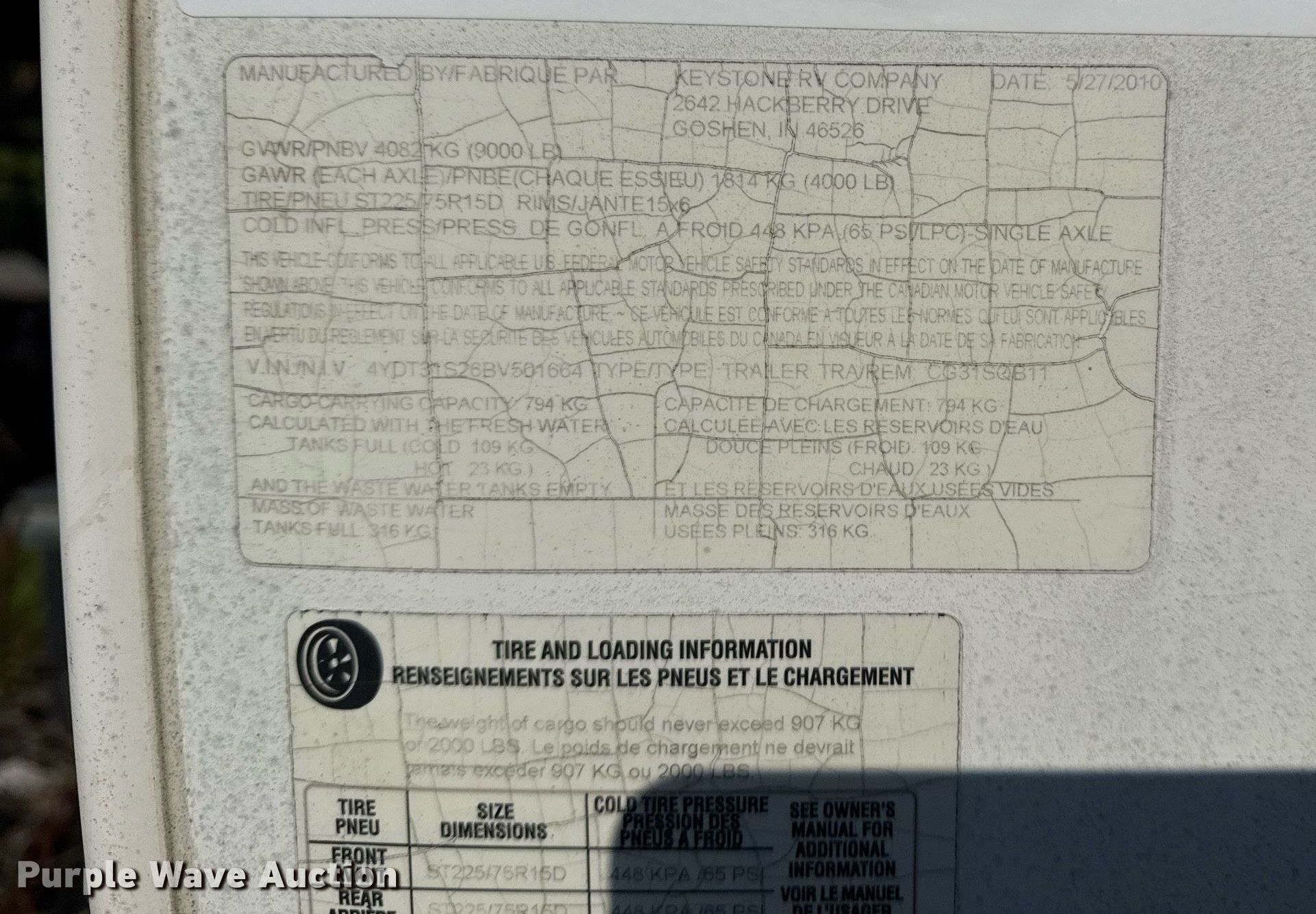 Purple Wave is selling a used RV or Camper in Oklahoma. This item is a 2011 Keystone Cougar camper with the following: Camper length: 32', VIN: 4YDT31S26BV501664