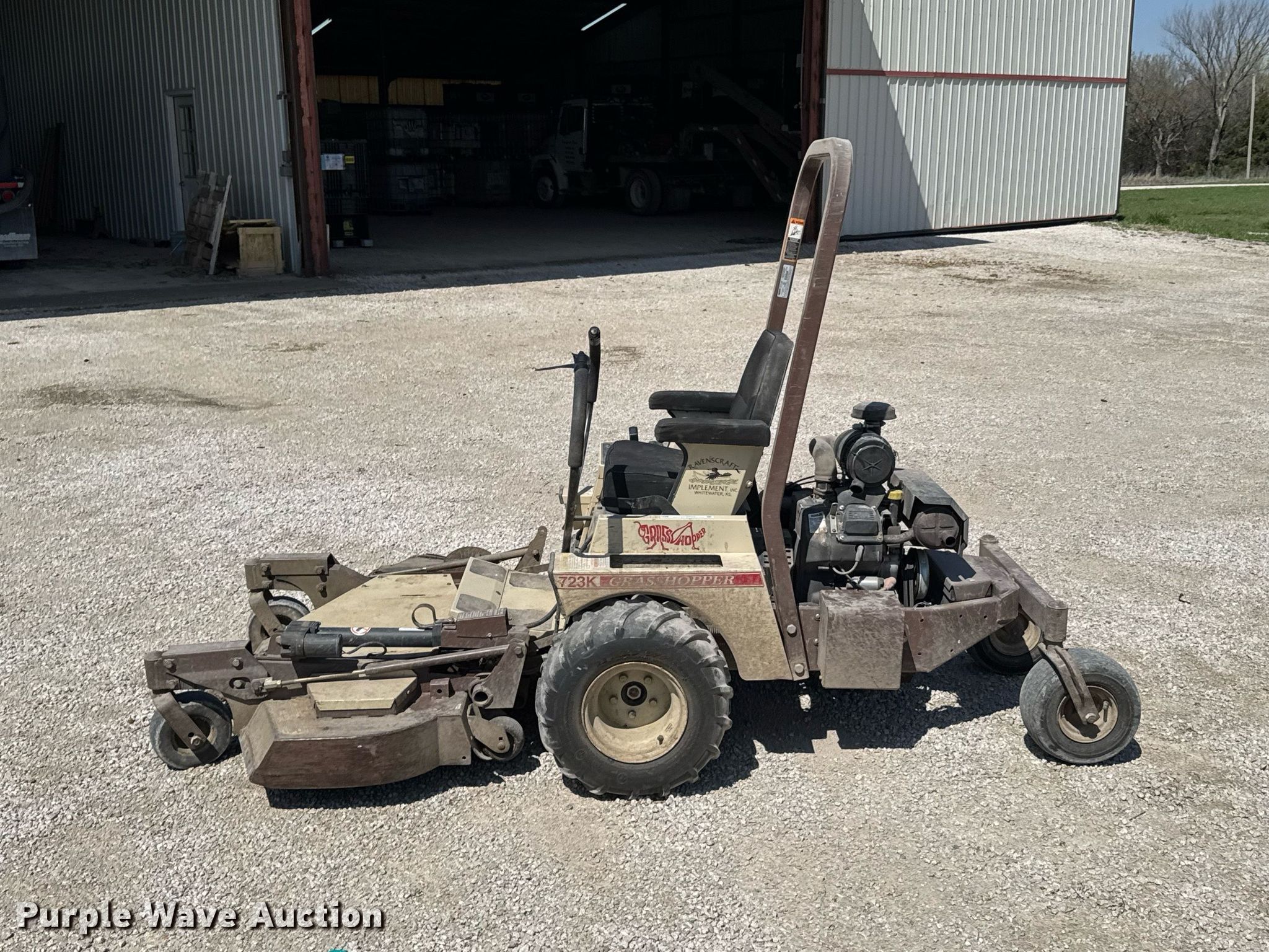 Purple Wave is selling a used Lawn Mower in Kansas. This item is a 2007 Grasshopper 723K H2 lawn mower with the following: Hours: 756 on meter, Cutting width: 52", Serial: 5718233