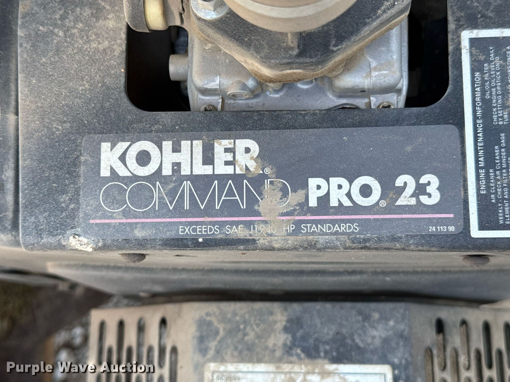 2007 Grasshopper 723K H2 lawn mower. Hours: 756 on meter, Cutting width: 52", Serial: 5718233. Engine Kohler Command Pro 23, Displacement: 674 cc, Cylinders: 2, Fuel type: Gas. Transmission Hydrostatic. Features Hydraulic front deck lift. Tires Front: 22x11.00-10, Rear: 13x6.50-6. Chanute, KS 66720