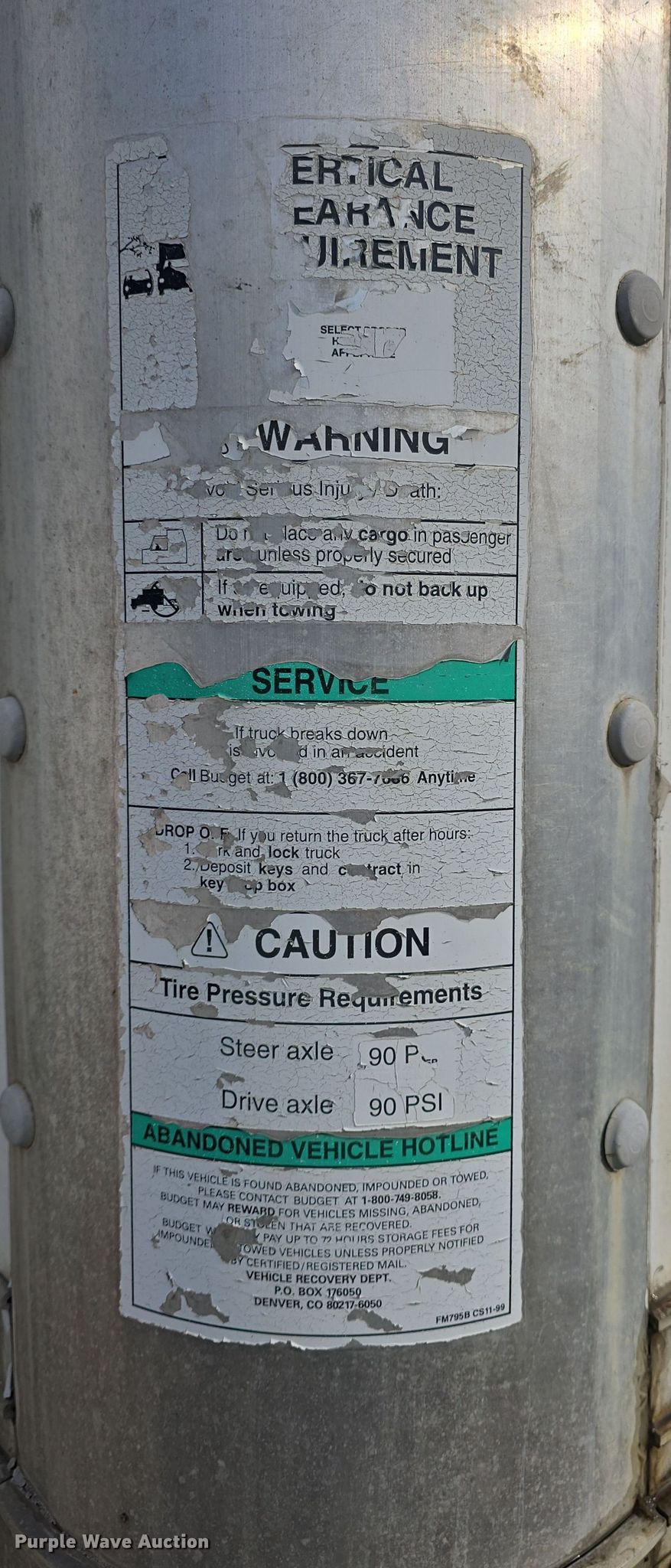 2005 GMC C7500 box truck. Miles: 239,052 on odometer, VIN: 1GDJ7C1C55F902153, Unit #: 2017. Engine Caterpillar C7, Displacement: 7.2L, Cylinders: 6, Fuel type: Diesel. Transmission Automatic. Chassis Axles: Single, Suspension: Spring, Brakes: Hydraulic, GVWR: 25,950 lbs, Wheelbase: 261". Interior Heat. Features Box bed Supreme, Serial: VF24090096, 25' L x 96" W x 96" H, E-track rail system, Floor: Wood, Slider ramp Width: 27", Capacity: 1,000 lbs.. Tires Size: 295/75R22.5, Brand: Power King, Dunlop. Notes Driver side interior door panels missing, Box bed issues, leak, Dash warning indicator: Check engine, Dead battery. Kansas title. Title distribution may be delayed up to 14 days from verification of funds. Manhattan, KS 66502