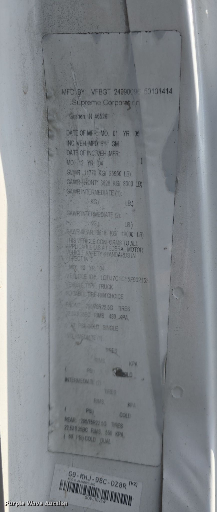 - VIN: 1GDJ7C1C55F902153