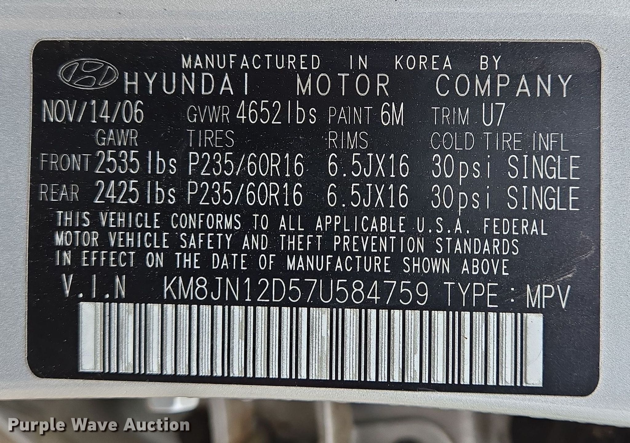 Purple Wave is selling a used Passenger Vehicle in Missouri. This item is a 2007 Hyundai Tucson SUV with the following: Miles: 141,242 on odometer, VIN: KM8JN12D57U584759
