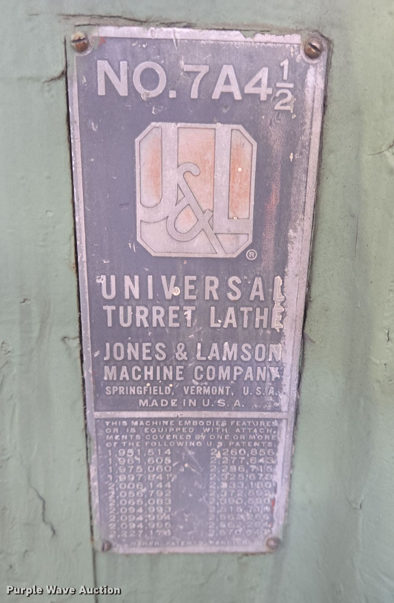 Take a look at this used Jones & Lamson universal turret lathe being sold on May 7th, 2025 in the SOLD! May 07 Vehicles and Equipment Auction made by Jones & Lamson. Take a look at all of the item information below or take a look at similar auctions for Machine Tools.