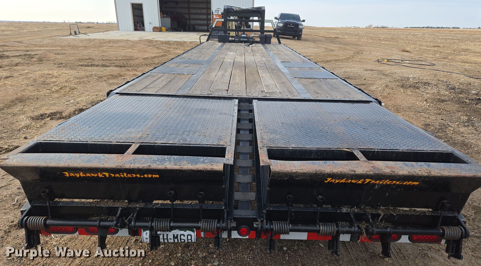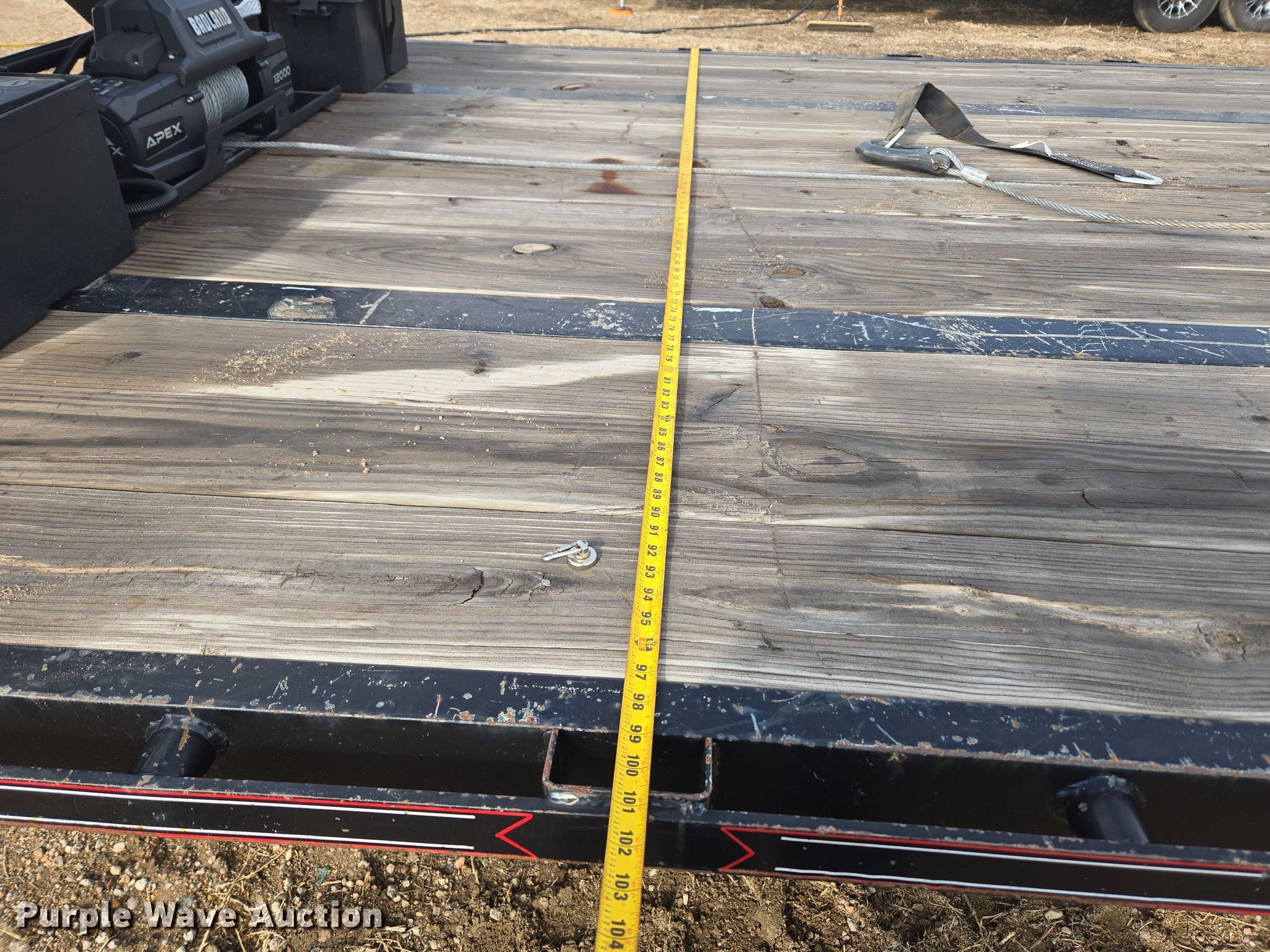 2018 Diamond T 10232DTF equipment trailer. VIN: 5FWFP3227JR022475. Dimensions Overall: 41' 2" L x 101" W, Deck: 27' L x 101" W, Tail length: 4', Ramps: Manual Length: 4' 9". Features Deck type: Wood, Winch Badland Apex 12000, Capacity: 12,000 lbs. Chassis Hitch: Gooseneck, Landing gear: Dual, Suspension: Spring, Brakes: Electric, Axles: Tandem, GVWR: 24,000 lbs, GAWR: 10,000 lbs. Tires Steel wheels, Size: 235/80R16. Notes Unknown operating condition of winch Winch remote missing. Colorado title. Title distribution may be delayed up to 14 days from verification of funds. Industrial Pipe Solutions, INC. Wiggins, CO 80654