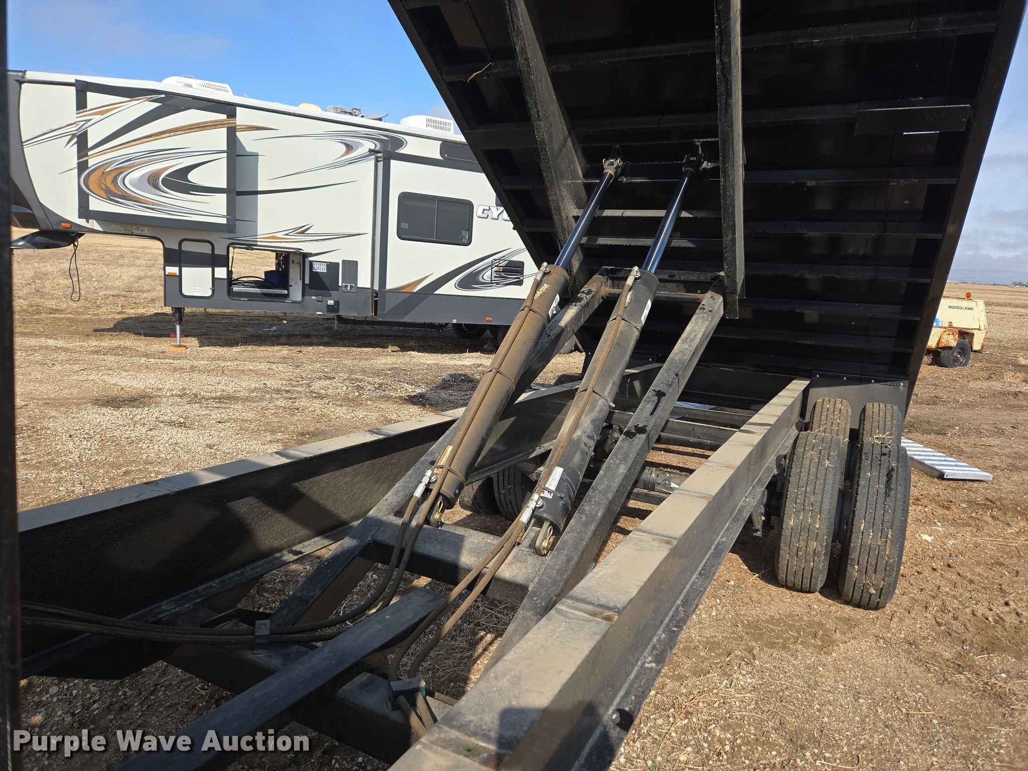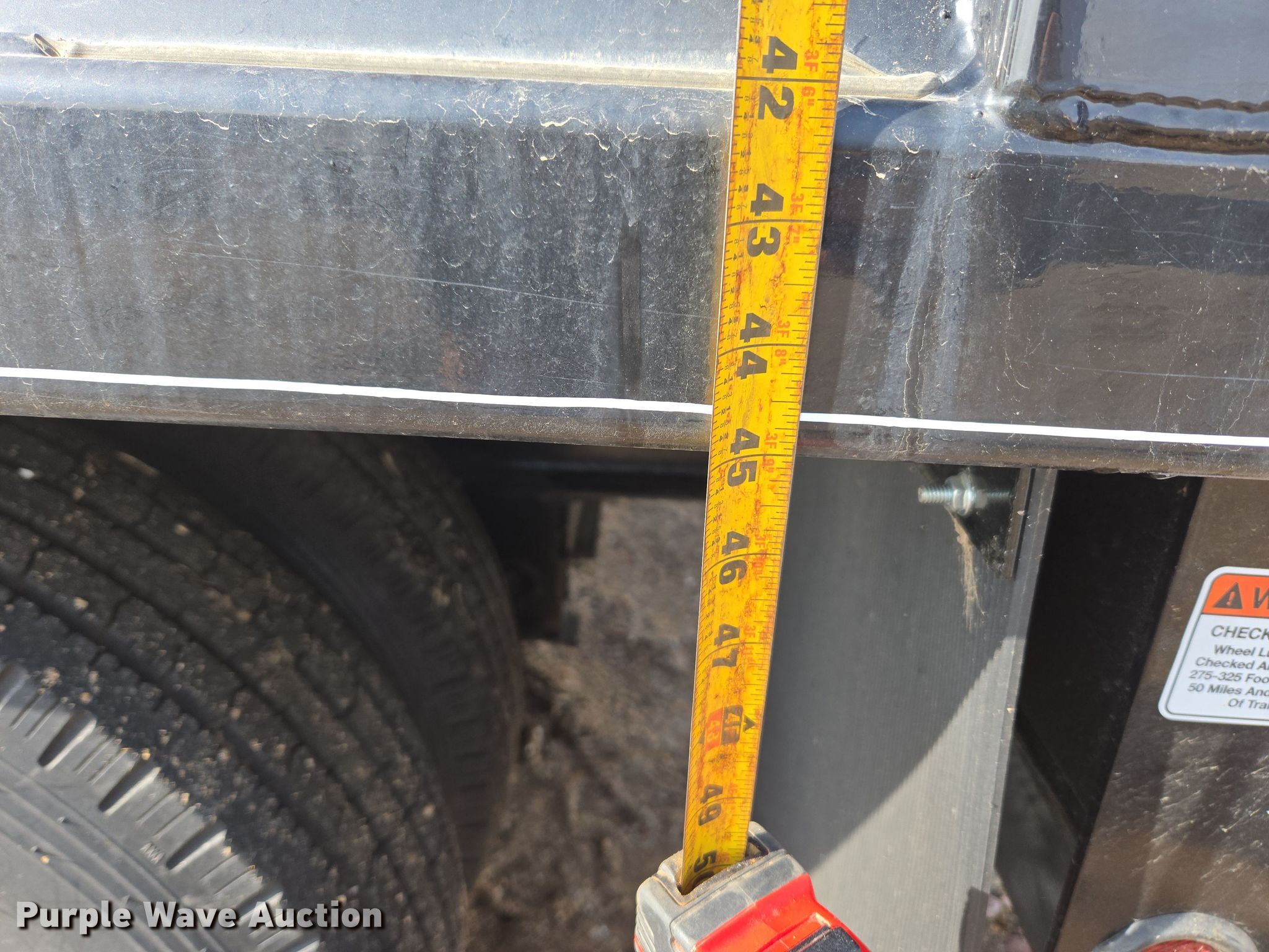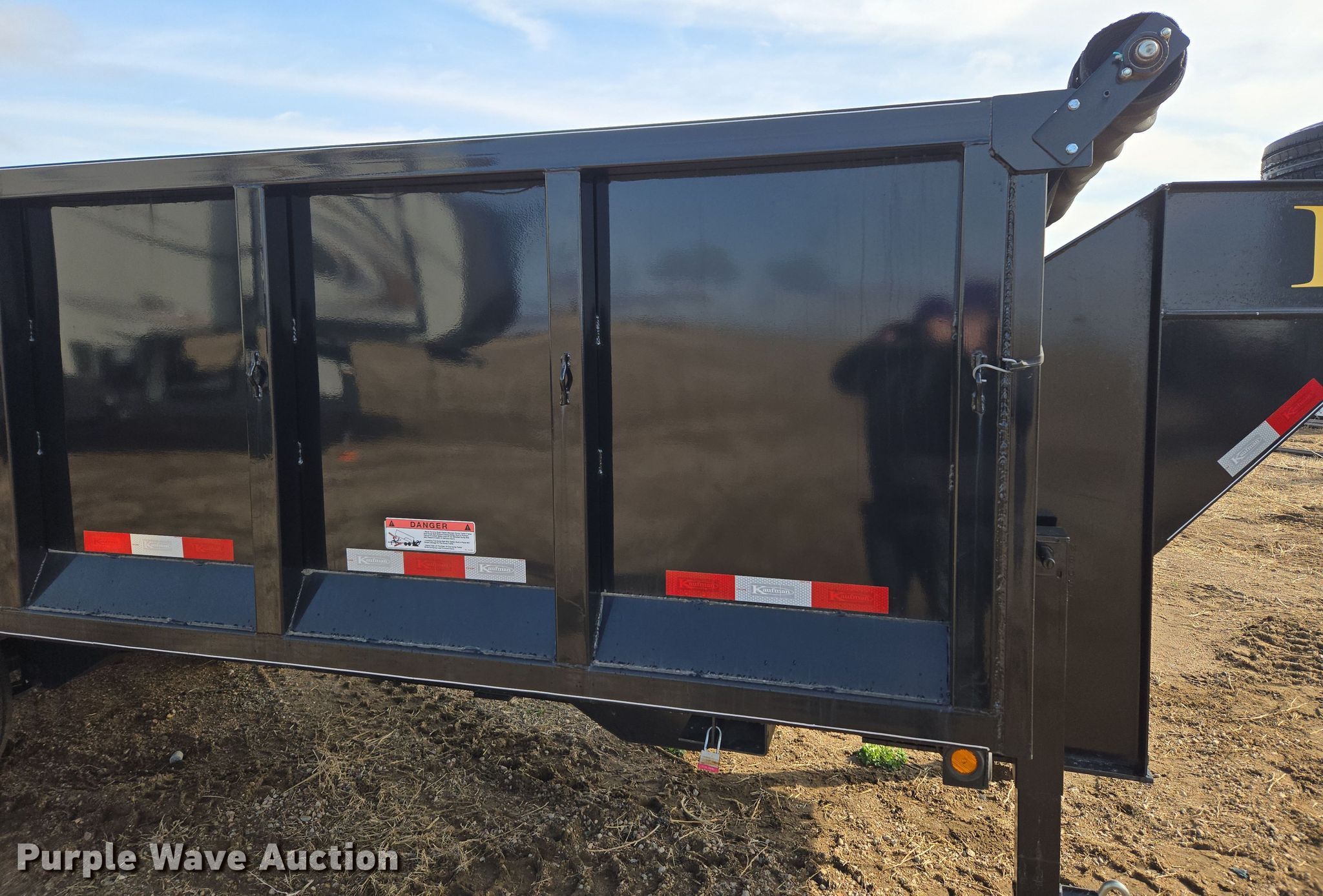 2022 Kaufman dump trailer. VIN: 5VGFX2021NL003435. Dimensions Overall: 28' 11" L x 98" W, Body: 20' L x 98" W, Side height: 3' 8". Features Body type: Steel, Ram: Dual, End gate: Manual, Trailer controls, Roll tarp. Chassis Hitch: Gooseneck, Landing gear: Dual, Suspension: Spring, Brakes: Electric, Axles: Tandem, GVWR: 25,000 lbs, GAWR: 10,000 lbs. Tires Steel wheels, Size: 235/80R16. Notes Contents not included. Colorado title. Title distribution may be delayed up to 14 days from verification of funds. Industrial Pipe Solutions, INC. Wiggins, CO 80654