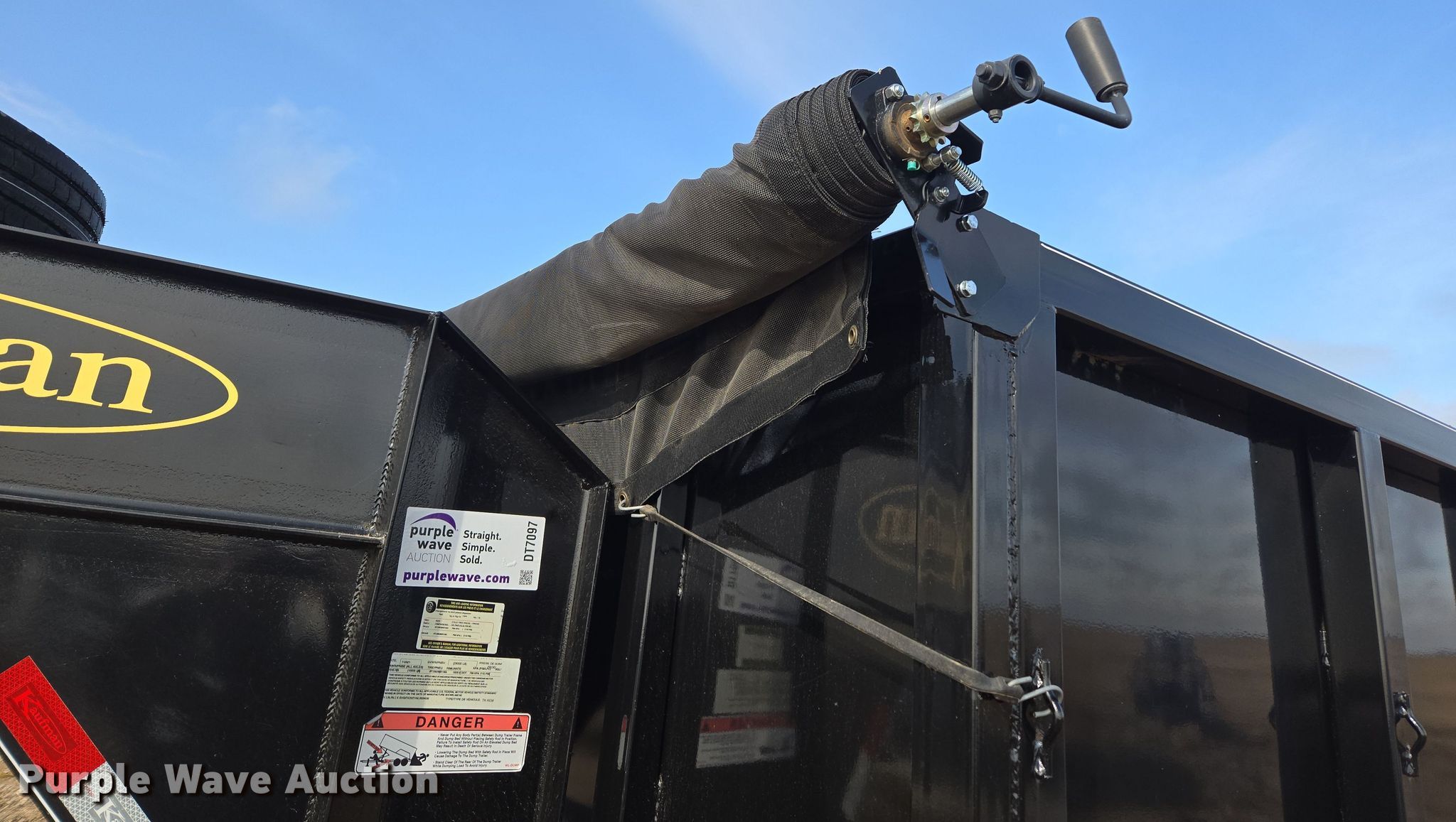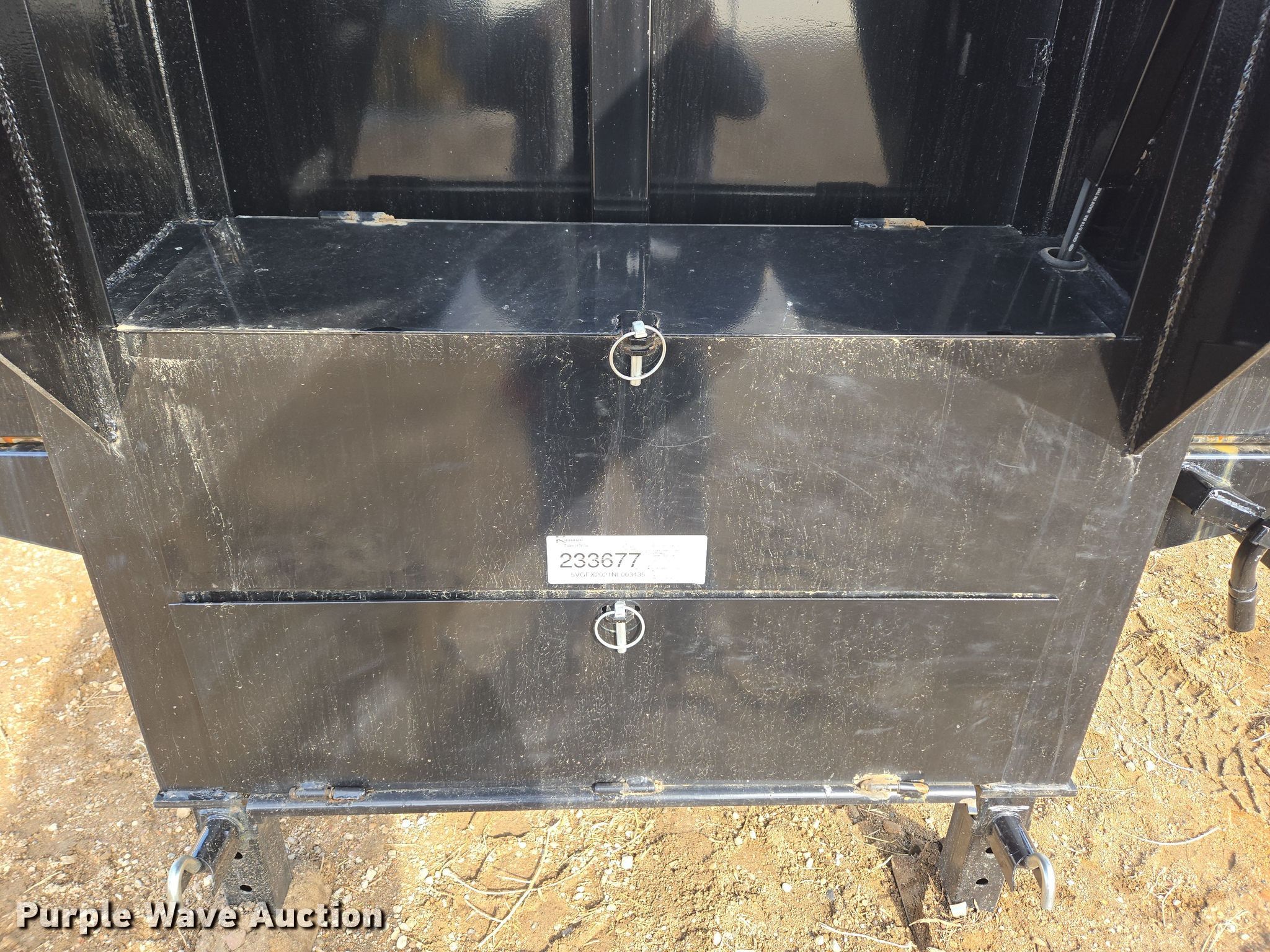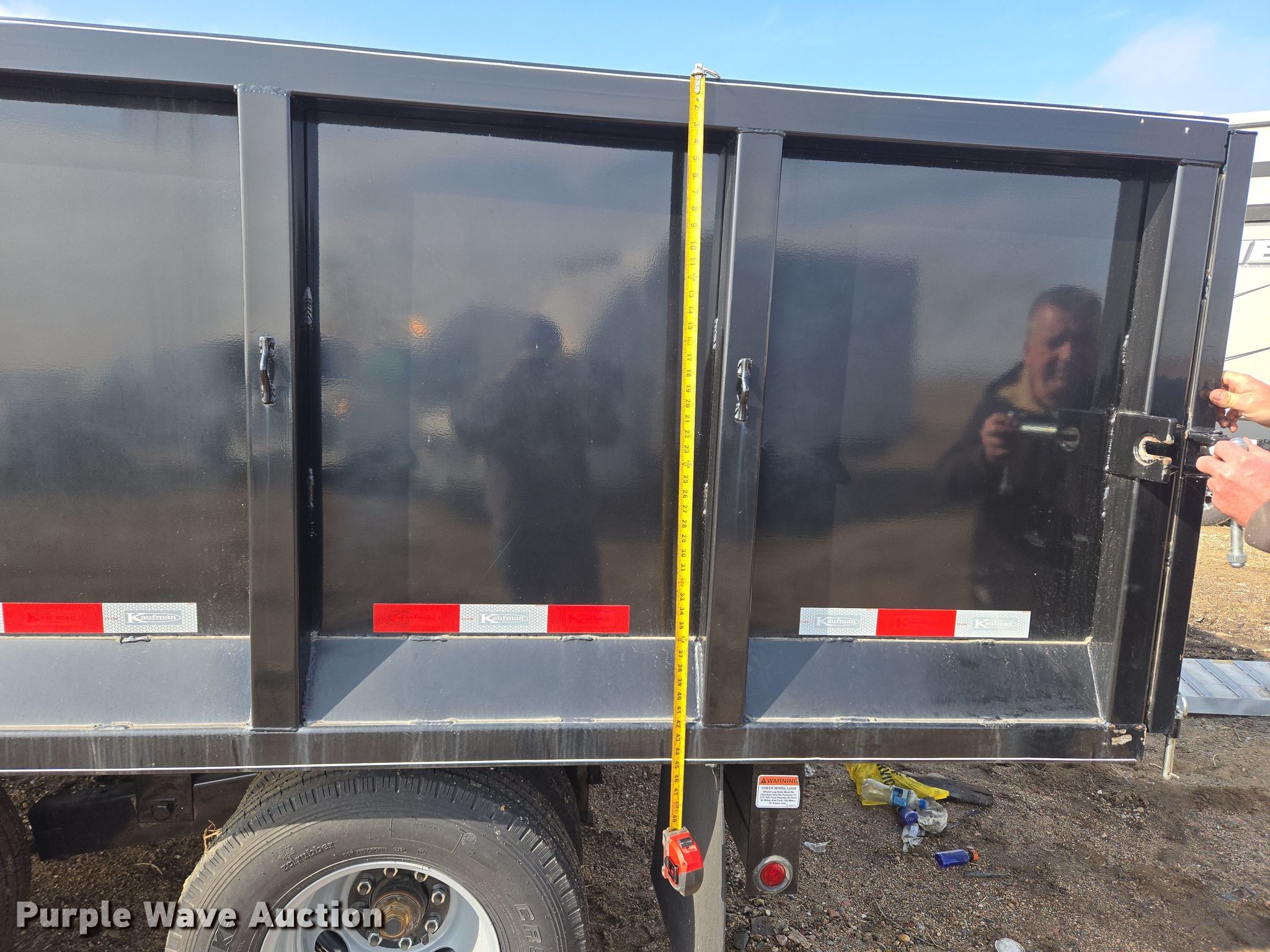 2022 Kaufman dump trailer. VIN: 5VGFX2021NL003435. Dimensions Overall: 28' 11" L x 98" W, Body: 20' L x 98" W, Side height: 3' 8". Features Body type: Steel, Ram: Dual, End gate: Manual, Trailer controls, Roll tarp. Chassis Hitch: Gooseneck, Landing gear: Dual, Suspension: Spring, Brakes: Electric, Axles: Tandem, GVWR: 25,000 lbs, GAWR: 10,000 lbs. Tires Steel wheels, Size: 235/80R16. Notes Contents not included. Colorado title. Title distribution may be delayed up to 14 days from verification of funds. Industrial Pipe Solutions, INC. Wiggins, CO 80654