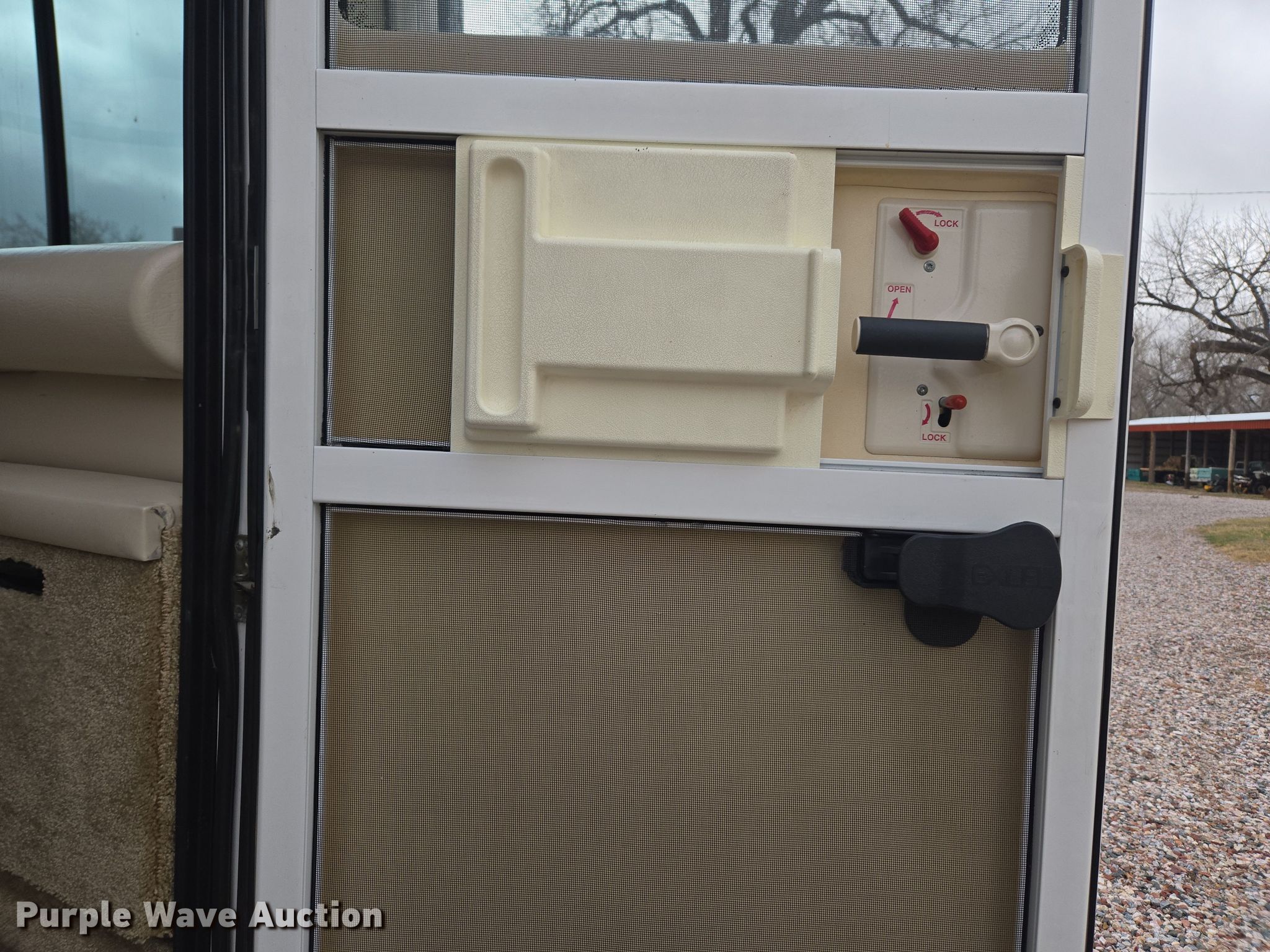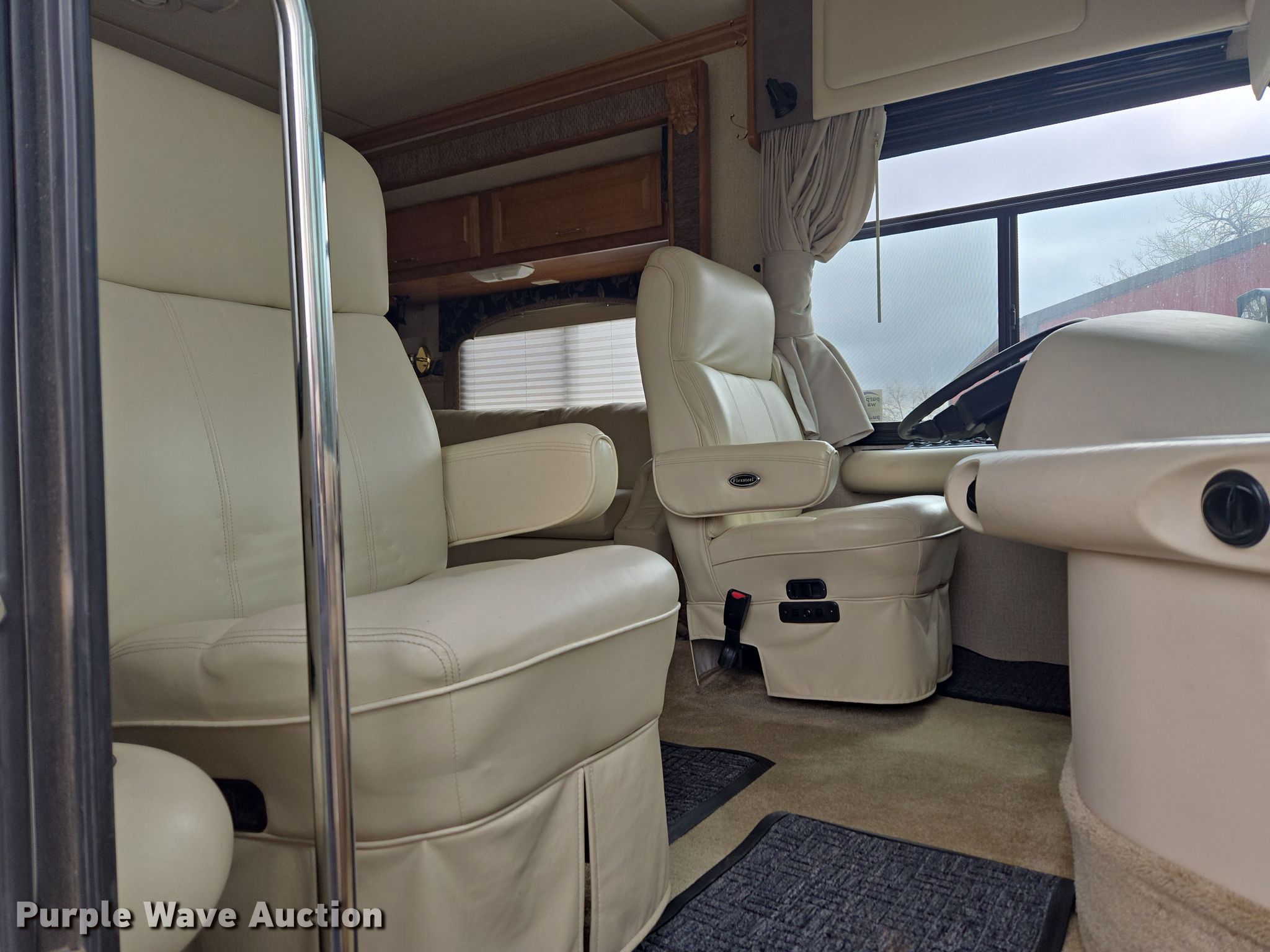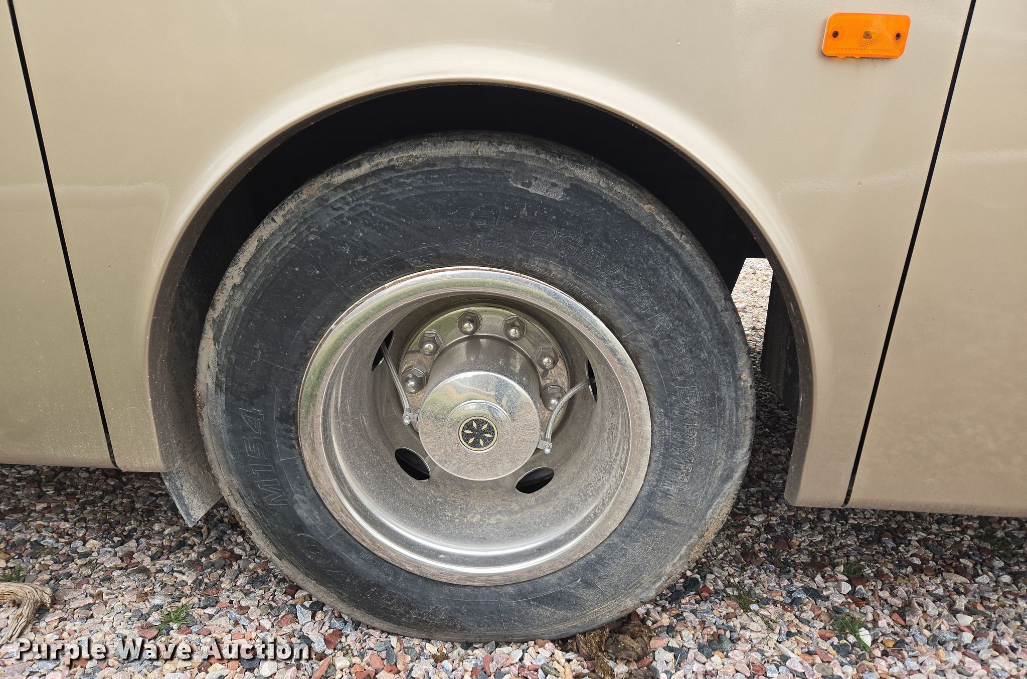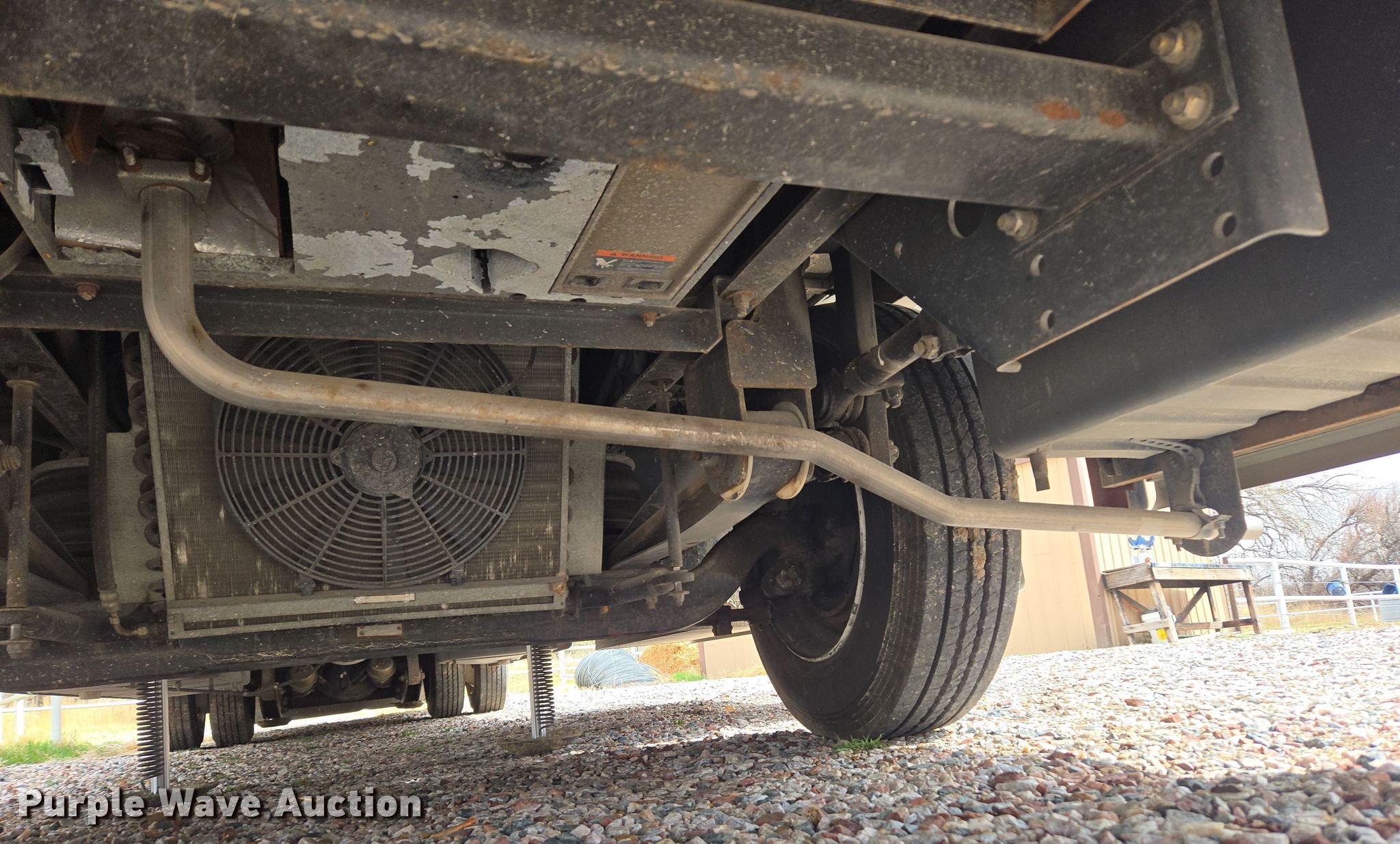2003 Freightliner XC Chassis RV. Miles: 1,079 on odometer Actual mileage unknown, Camper length: 37', VIN: 4UZAAHBV93CM01957. Engine Cummins, Displacement: 5.9L, Cylinders: 6, Fuel type: Diesel. Transmission Automatic. Chassis Axles: Single, Suspension: Air, Brakes: Air, GVWR: 27,910 lbs, GAWR: 10,410 lbs. Interior Kitchen: Sink, Refrigerator, Freezer, Microwave, Oven, Stove: Propane, Living room: Table, Couch, Pull out couch, Bathroom, Beds: 1 Bed type: Double, TVs: 2, Heater, AC units: 2. Features Slide outs: 2, Awnings: 1 Awning type: Manual, Auto leveler, Generator Onan 7.5HDKAJ11451H, Hours: 99 on meter, Fuel type: Diesel, Rear hitch. Tires Size: 265/75R22.5. Notes Engine replaced at 35,193 miles, Odometer replaced at 35,193 miles, Contents not included. View repairs. Nebraska title. Pro Ag Investments. Morrill, NE 69358