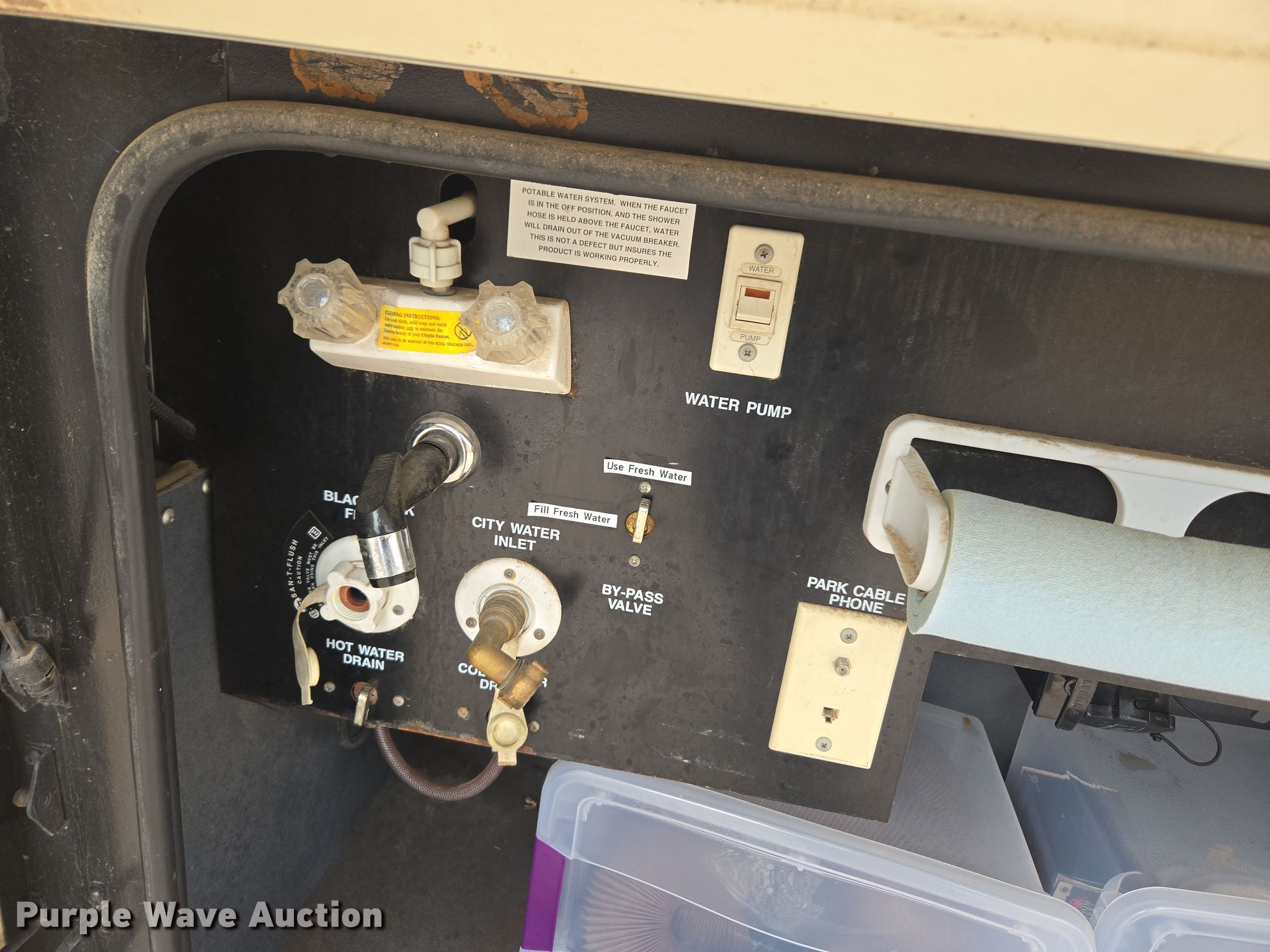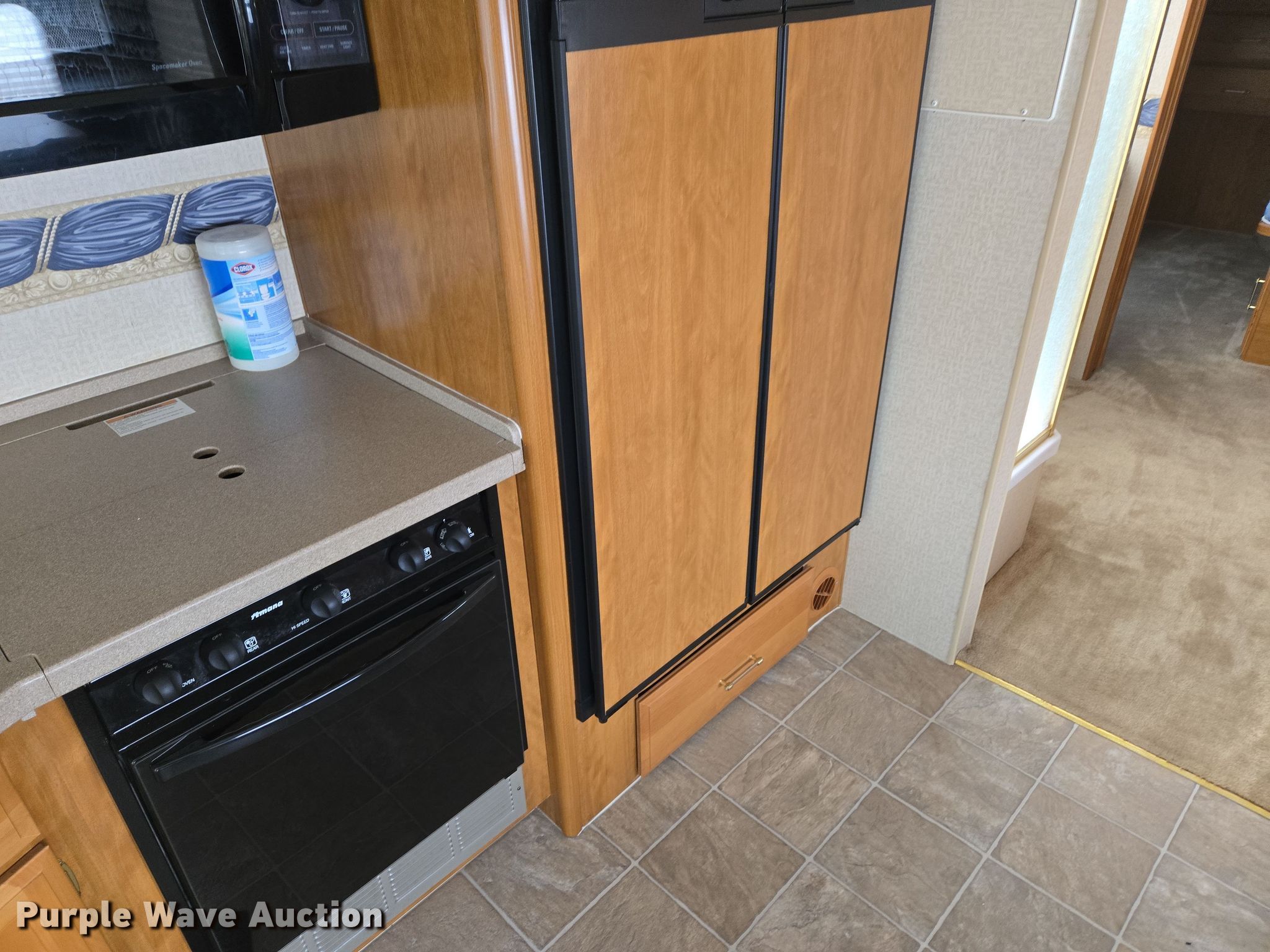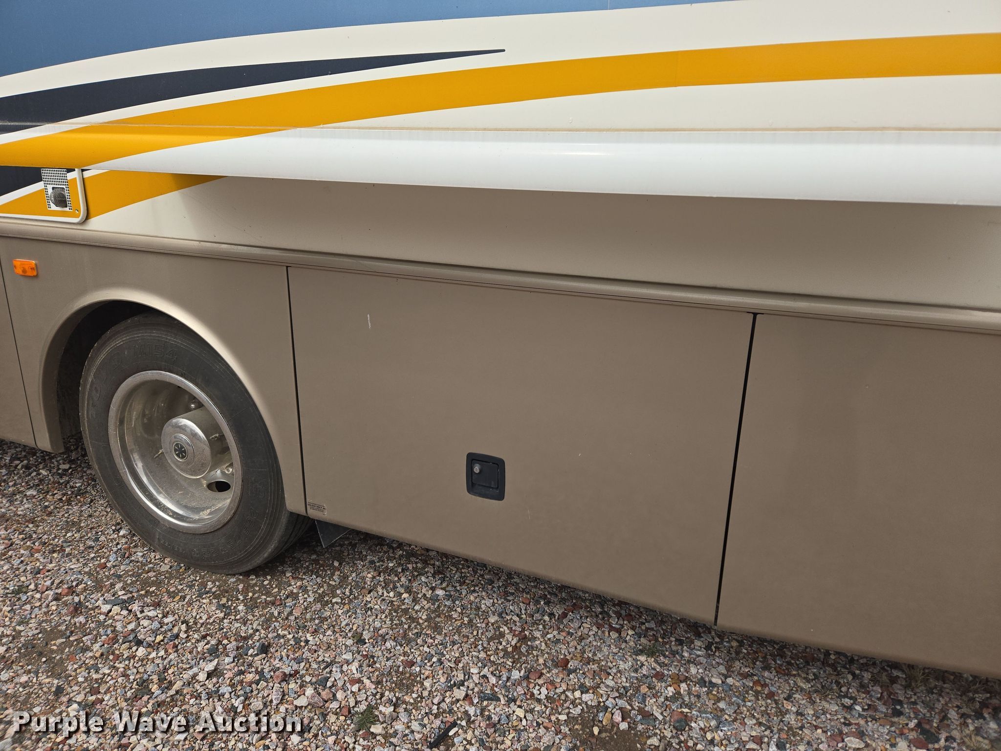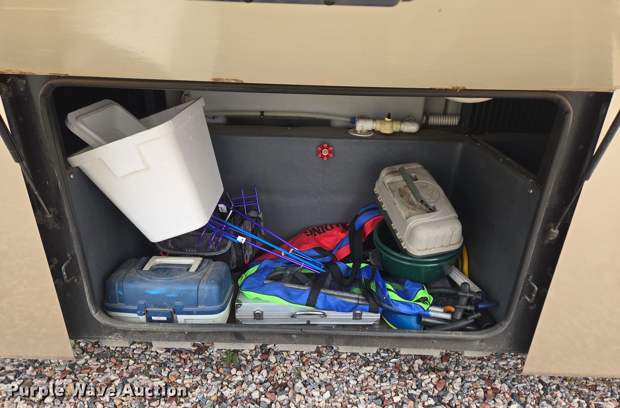 2003 Freightliner XC Chassis RV. Miles: 1,079 on odometer Actual mileage unknown, Camper length: 37', VIN: 4UZAAHBV93CM01957. Engine Cummins, Displacement: 5.9L, Cylinders: 6, Fuel type: Diesel. Transmission Automatic. Chassis Axles: Single, Suspension: Air, Brakes: Air, GVWR: 27,910 lbs, GAWR: 10,410 lbs. Interior Kitchen: Sink, Refrigerator, Freezer, Microwave, Oven, Stove: Propane, Living room: Table, Couch, Pull out couch, Bathroom, Beds: 1 Bed type: Double, TVs: 2, Heater, AC units: 2. Features Slide outs: 2, Awnings: 1 Awning type: Manual, Auto leveler, Generator Onan 7.5HDKAJ11451H, Hours: 99 on meter, Fuel type: Diesel, Rear hitch. Tires Size: 265/75R22.5. Notes Engine replaced at 35,193 miles, Odometer replaced at 35,193 miles, Contents not included. View repairs. Nebraska title. Pro Ag Investments. Morrill, NE 69358