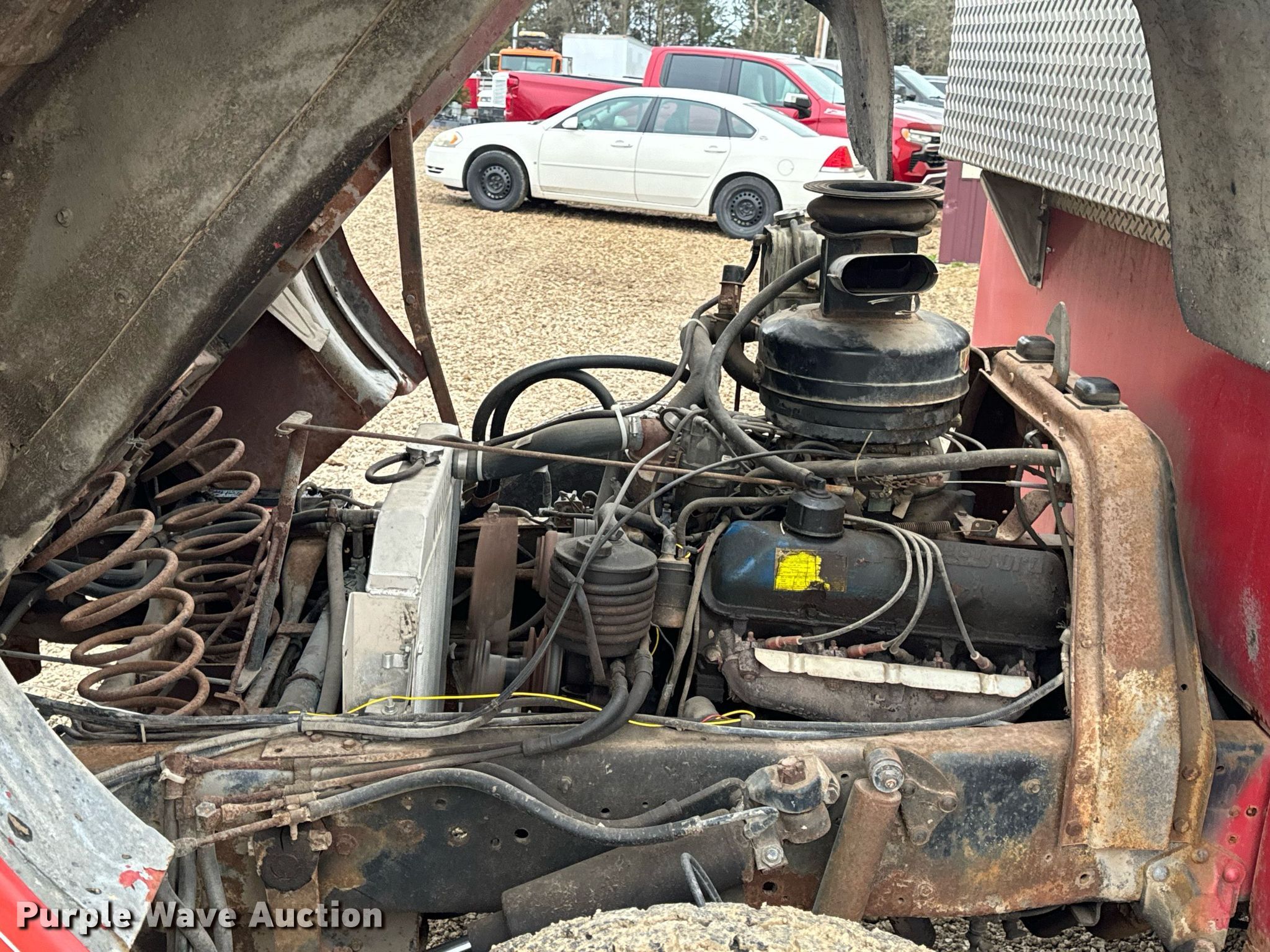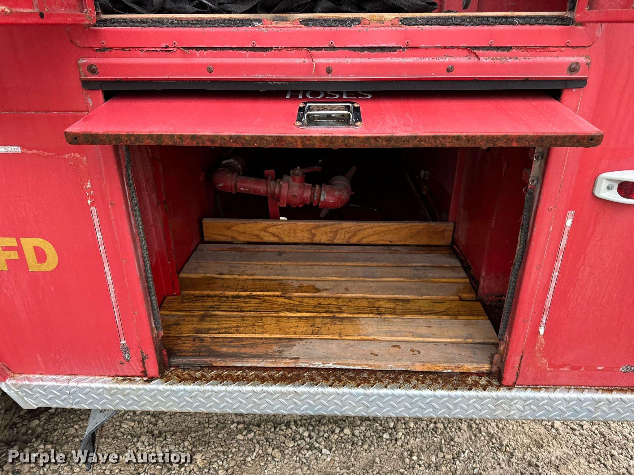 This 1972 Ford 700 pumper fire truck will sell to the highest bidder regardless of price.