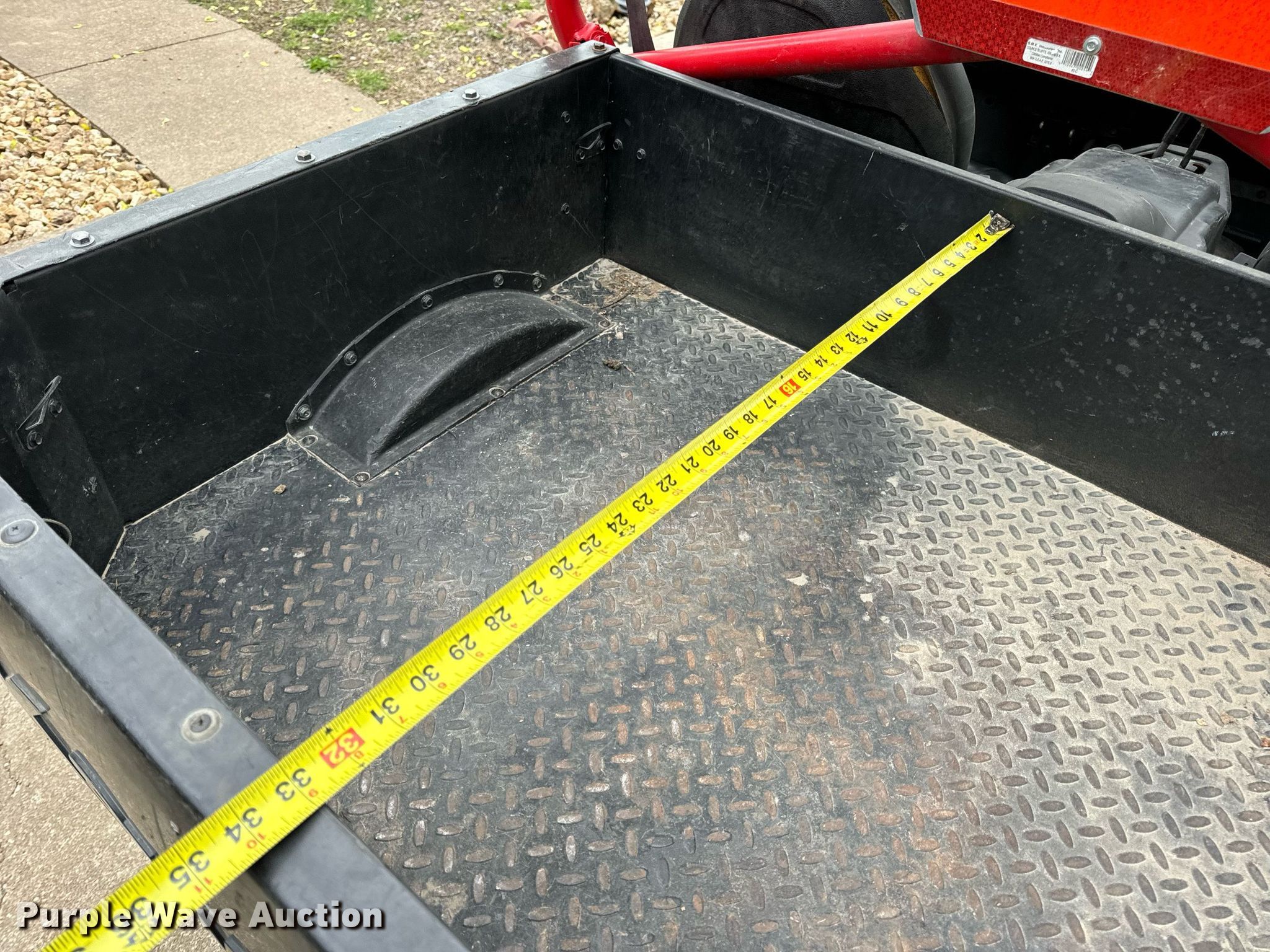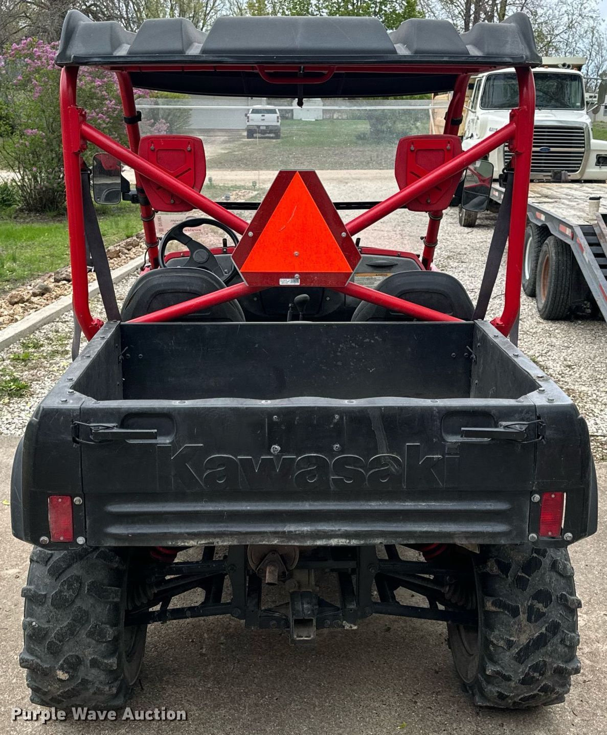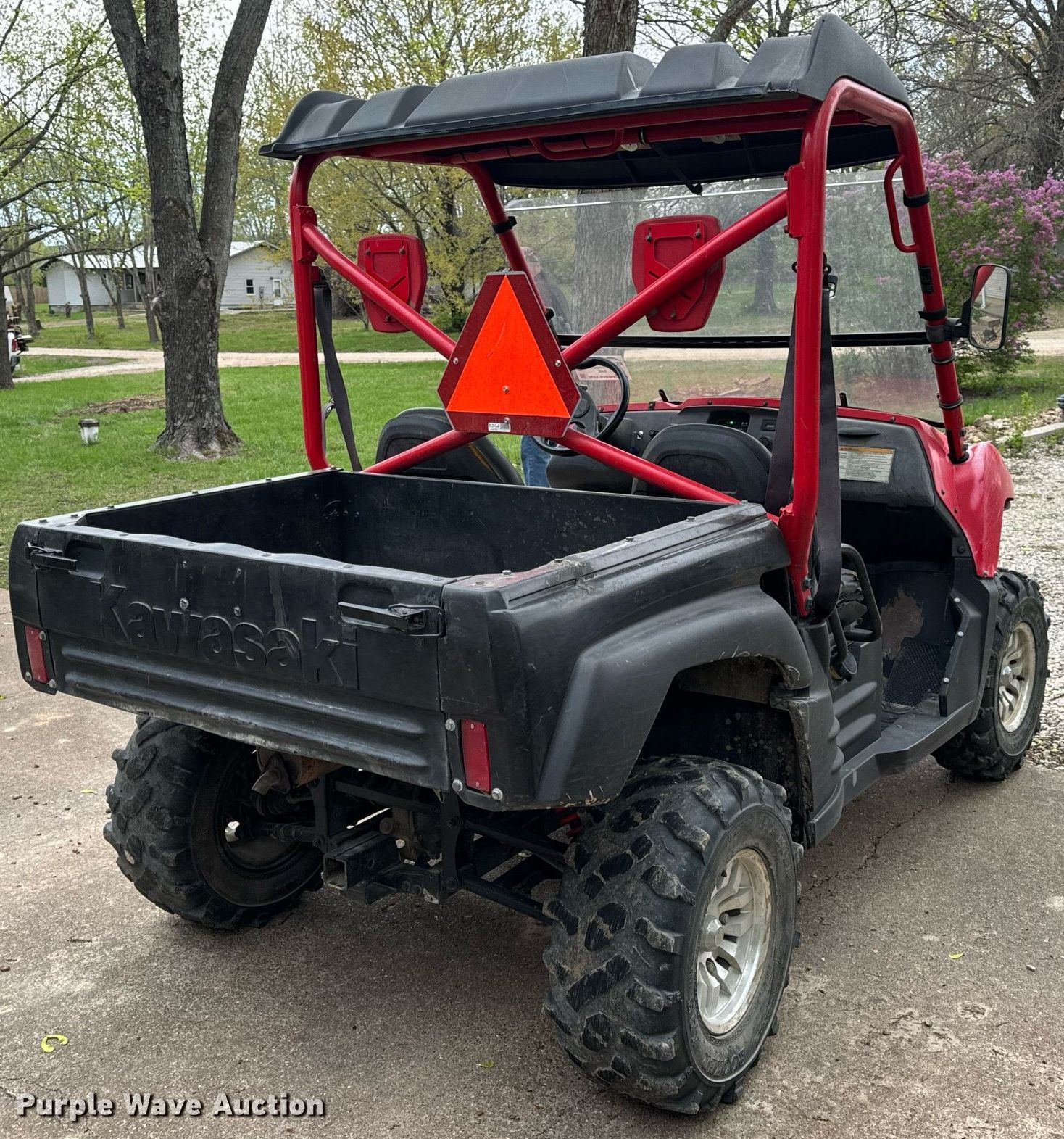 2008 Kawasaki Teryx 750 utility vehicle. Miles: 5,958 on odometer, Hours: 1,191 on meter, VIN: 1KARFDC148B5024. Engine Kawasaki, Fuel type: Diesel, Electric start. Transmission Automatic. Chassis Four wheel drive/ All wheel drive. Operators station OROPS, Canopy. Features Grille guard, Receiver hitch, Dump bed 33" L x 44" W, Dump bed type: Manual. Tires Front: 25.5X8R12, Rear: 25.5X10R12. Notes Frame weld repairs , Starts hard. Transfer of ownership documentation will be a bill of sale. Eldon, MO 65026