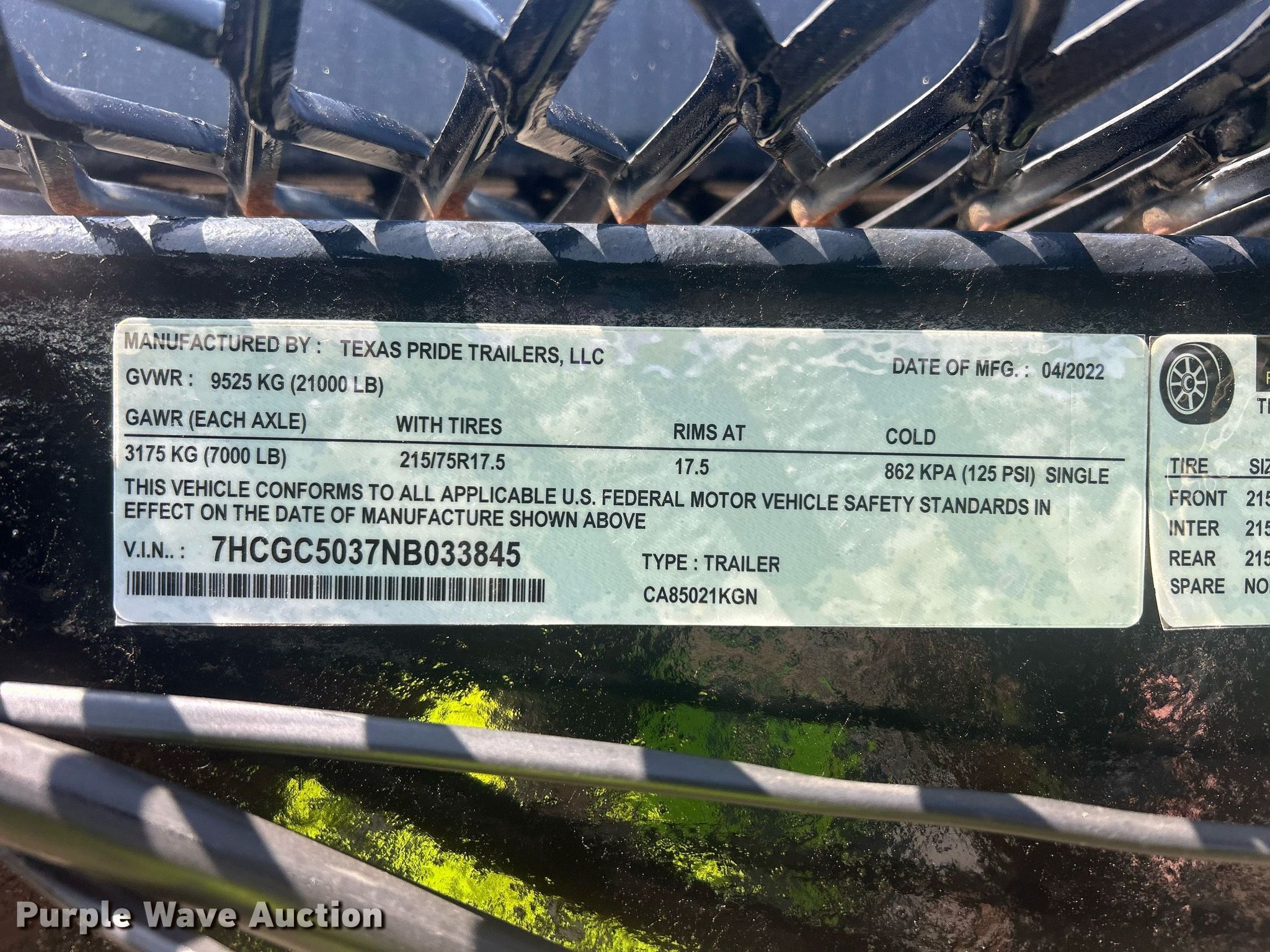 Purple Wave is selling a used Car Carrier in Texas. This item is a 2022 Texas Pride CA85021KGN car carrier with the following: VIN: 7HCGC5037NB033845