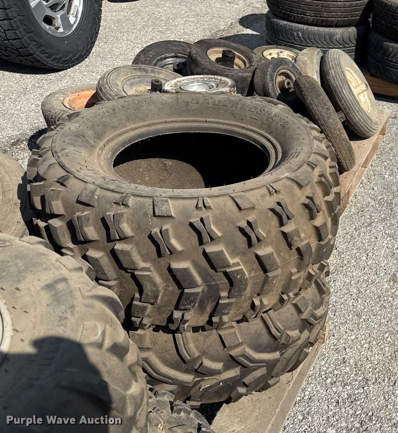 (3) pallets of tires and wheels. Landmasters Landscape Inc. Basehor, KS 66007