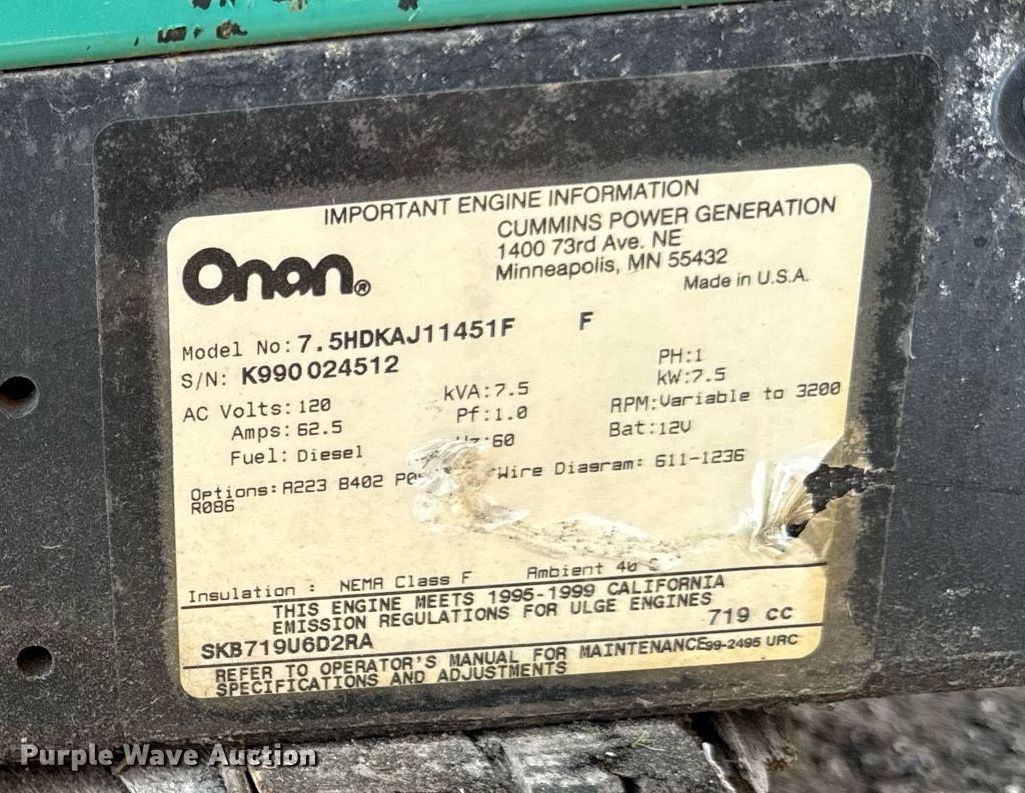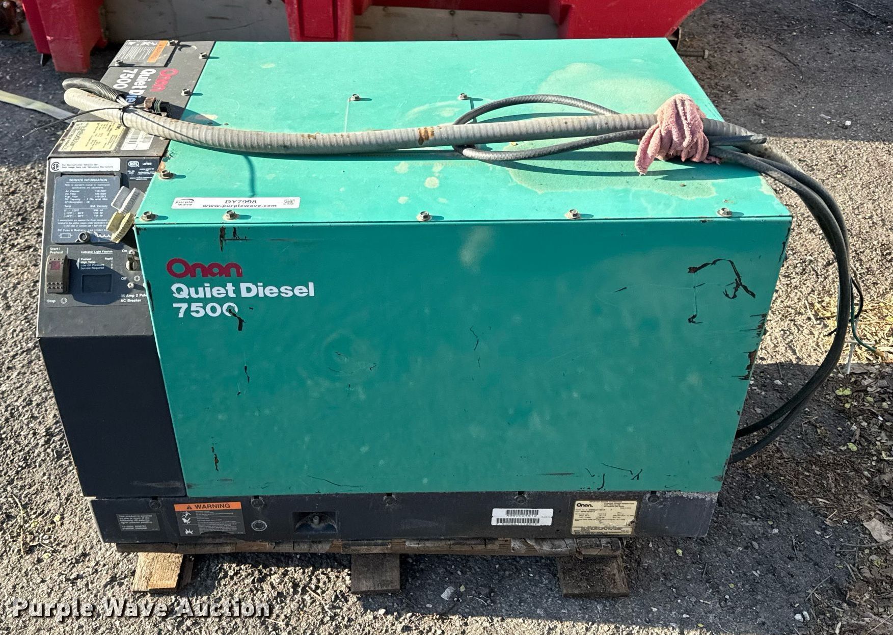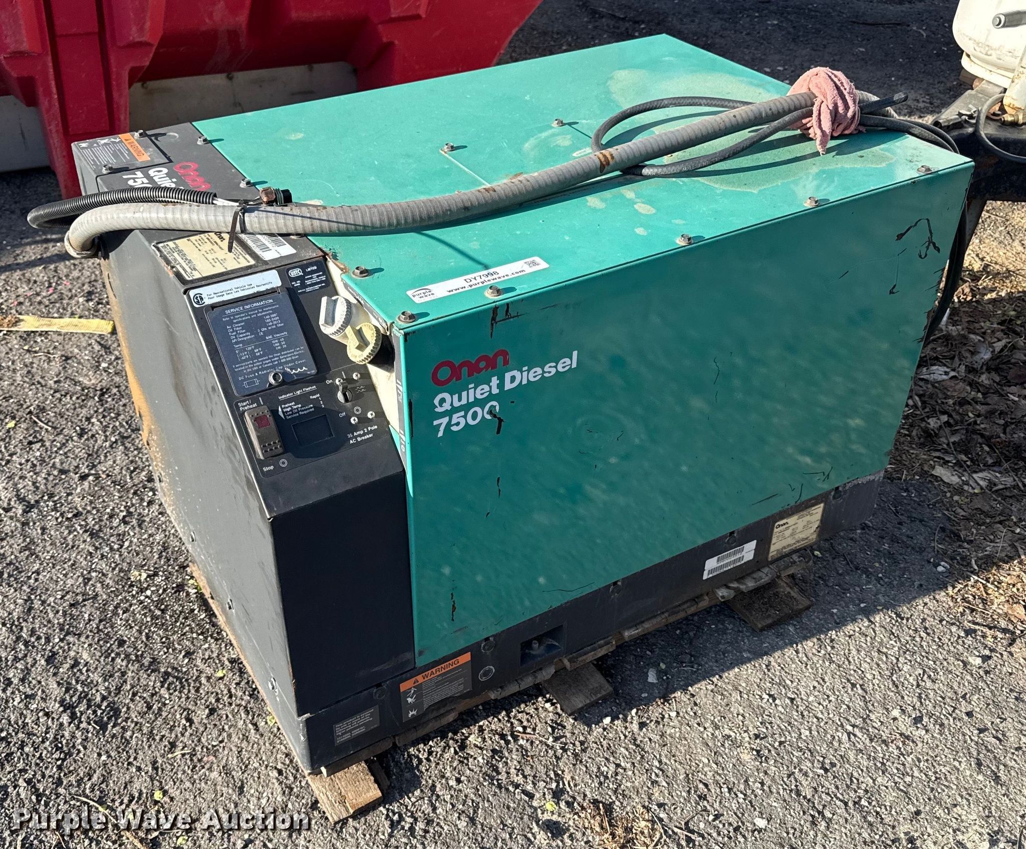 Purple Wave is selling a used Generator Set in Kansas. This item is a Onan Quiet Diesel 7500 generator with the following: Hours: Unknown