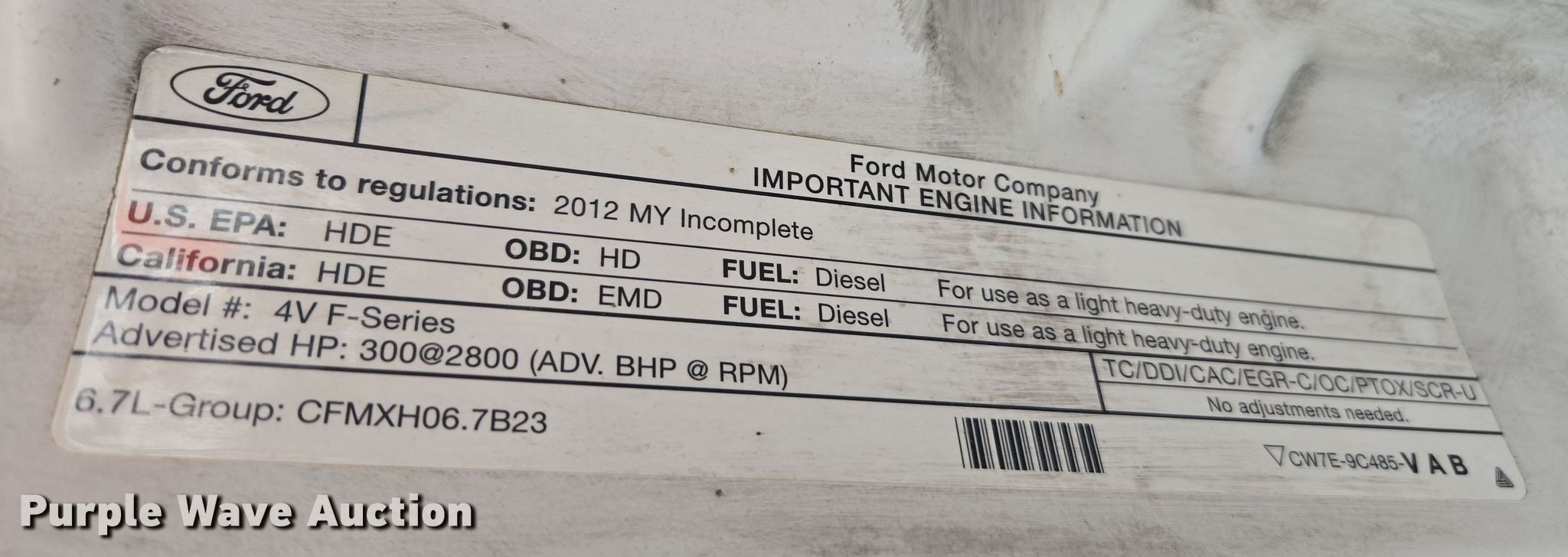 2012 Ford F550 Crew Cab flatbed truck. Miles: Unknown, VIN: 1FD0W5GT4CEB79240. Engine Ford 4V F-Series, Displacement: 6.7L, Cylinders: 8, Fuel type: Diesel, HP: 390. Transmission Automatic. Chassis Axles: Single, Suspension: Spring, Brakes: Hydraulic, GVWR: 18,000 lbs. Interior AC, Heat, Power locks, Auxiliary controls, Brake controller. Features Flatbed 151" L x 8' W. Tires Size: 245/70R19.5. Notes Dead battery, Non-operational unit Unit must be towed or hauled. Buyer responsible for all aspects of state emissions compliance. California title. Mileage has not been verified. Odometer discrepancy will be marked on the title. Title distribution may be delayed up to 14 days from verification of funds. Bay Services. El Sobrante, CA 94803