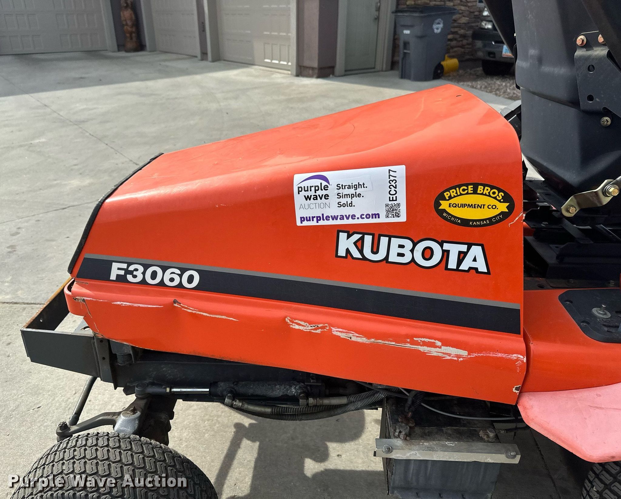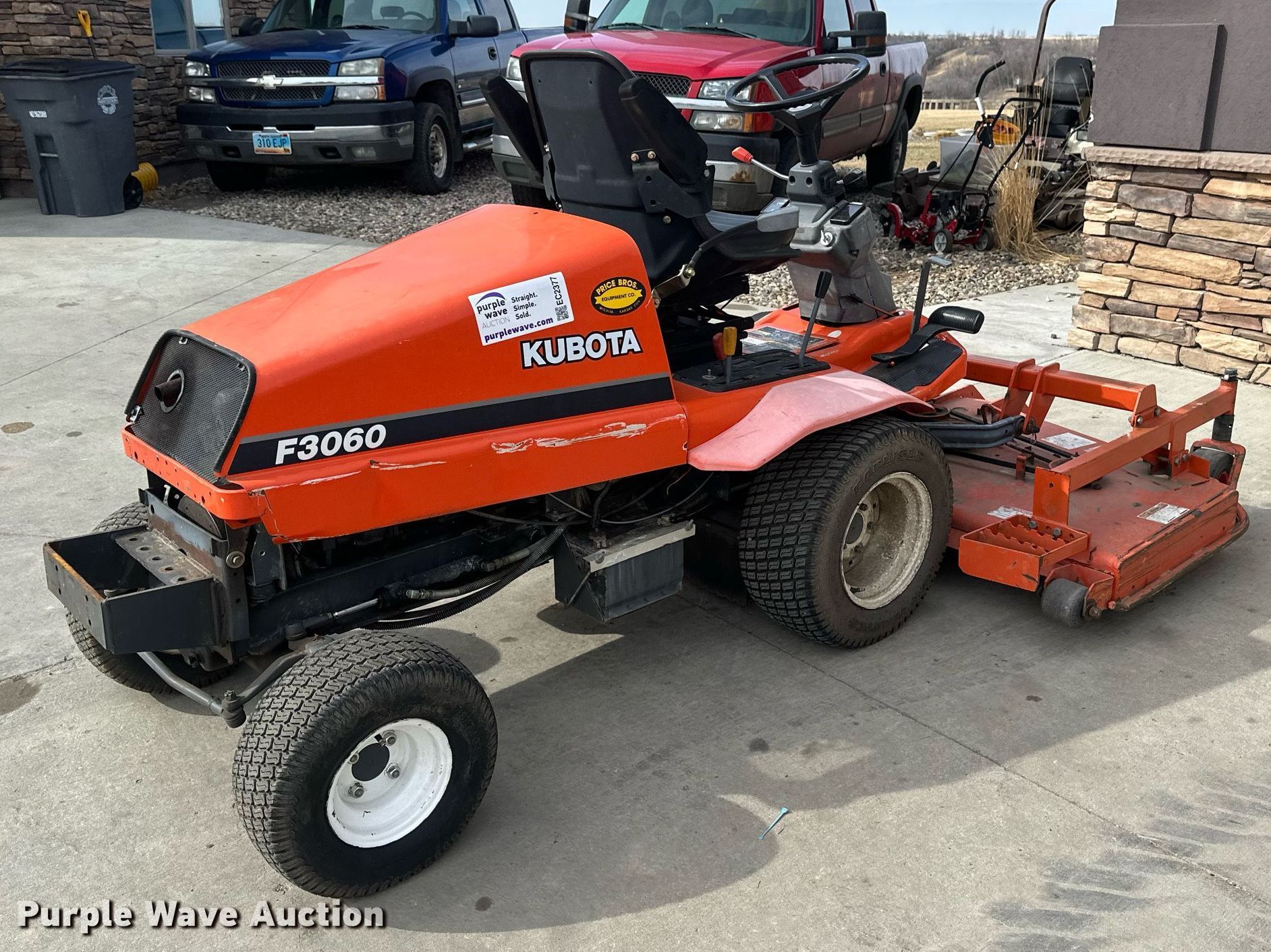 Purple Wave is selling a used Lawn Mower in North Dakota. This item is a Kubota F3060 lawn mower with the following: Hours: 1,253 on meter, Cutting width: 72", Serial: 32853