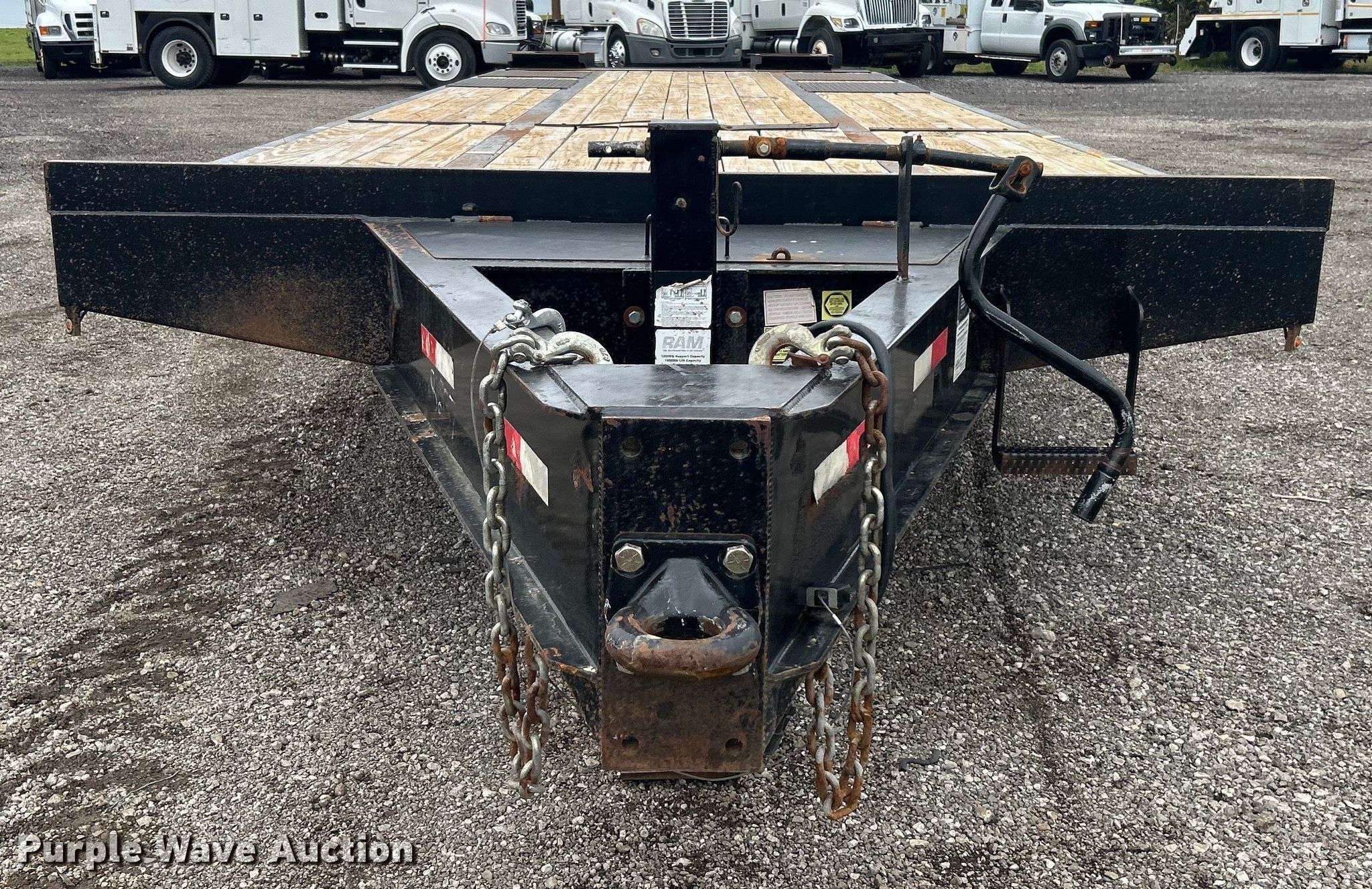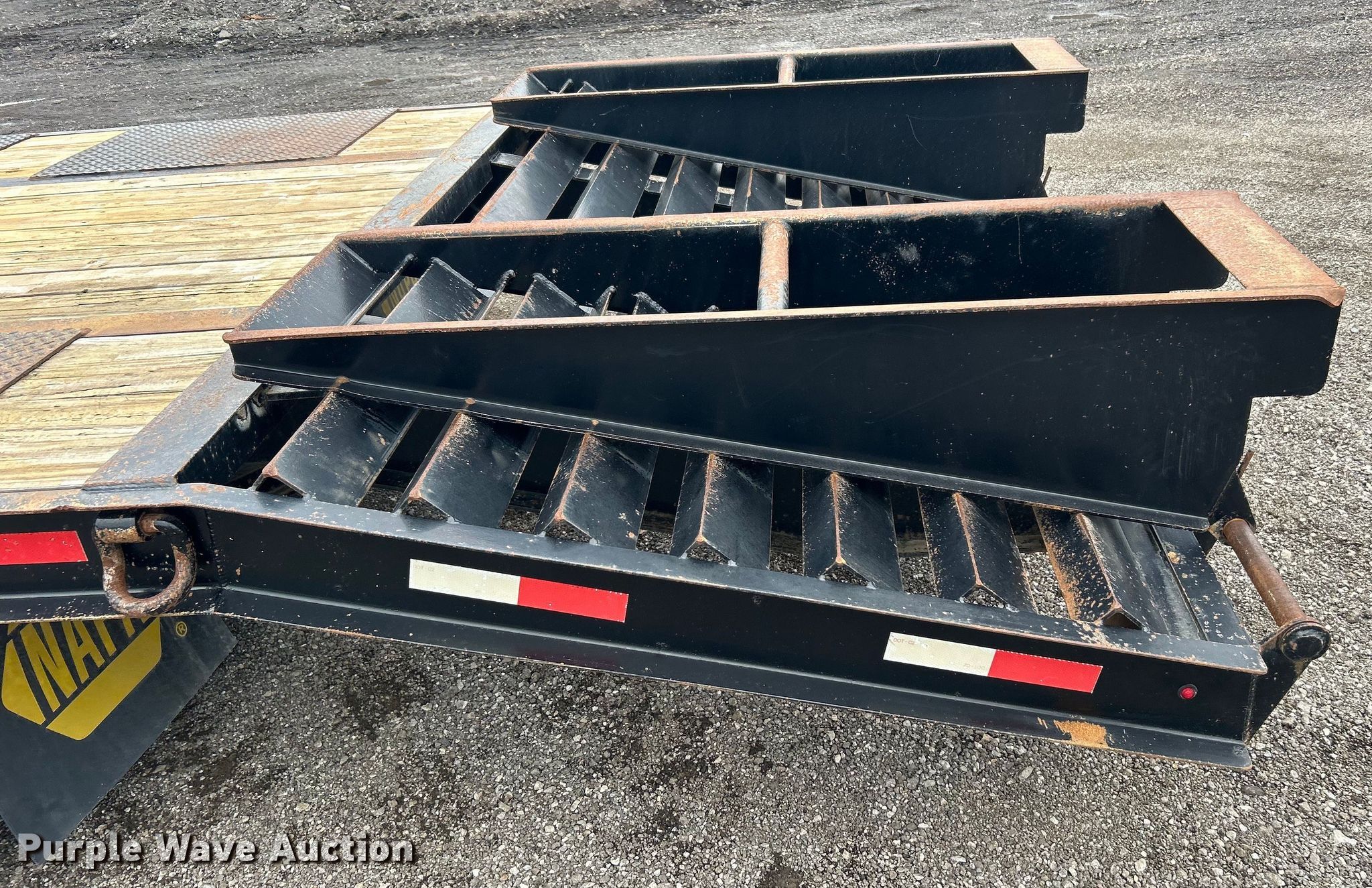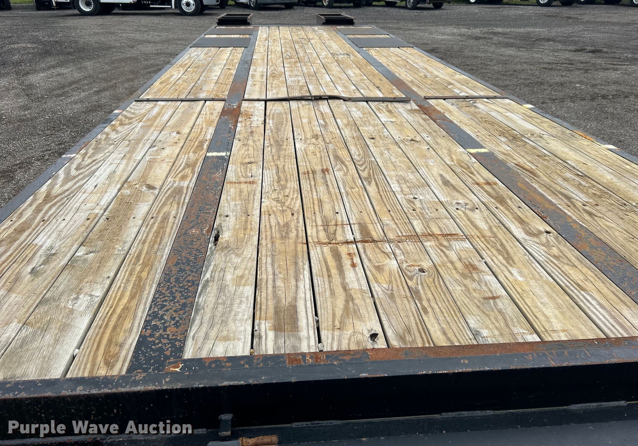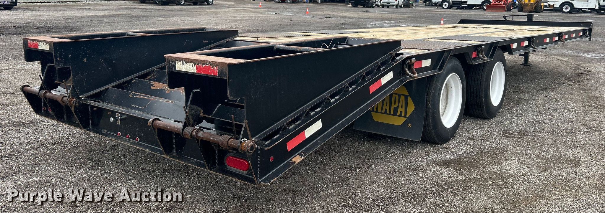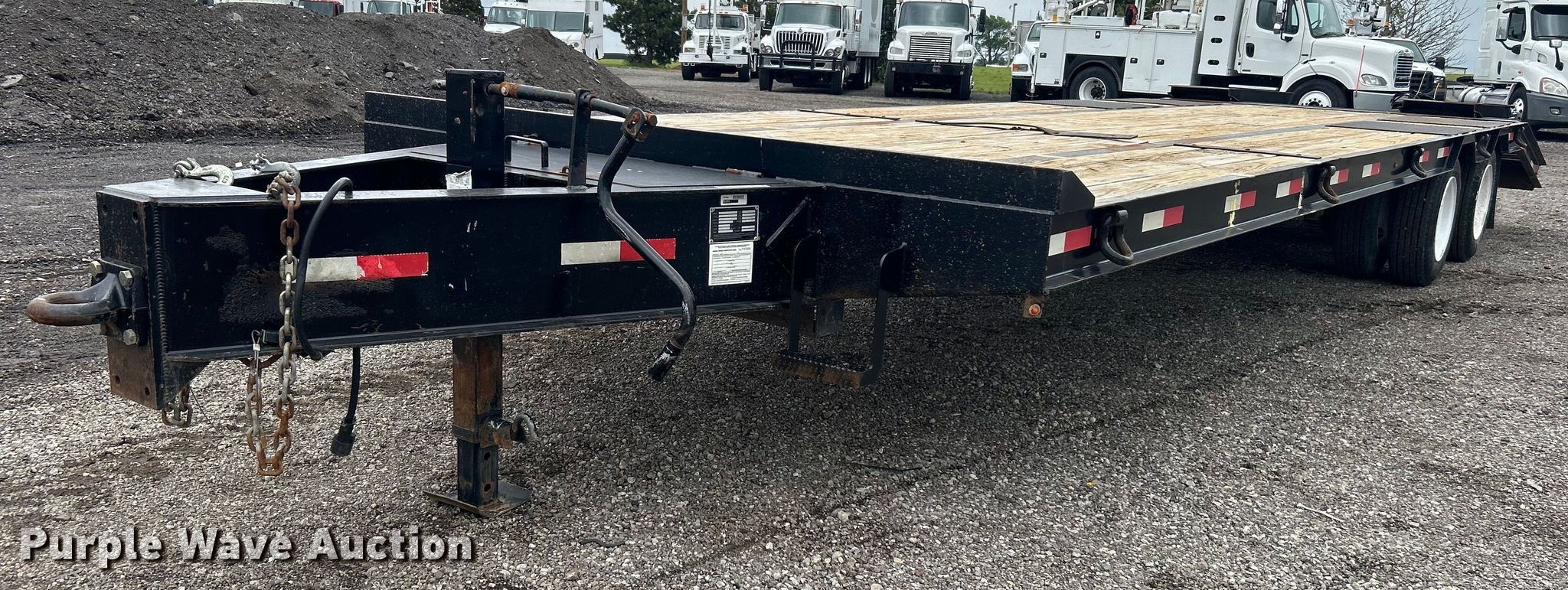 2017 MB Machine equipment trailer. VIN: 1M9AD34338E78026. Dimensions Overall: 34' L x 9" W, Deck: 24' L x 94" W, Tail length: 5', Ramps: Manual Length: 5'. Features Deck type: Wood. Chassis Hitch: Pintle, Landing gear: Single, Suspension: Spring, Brakes: Electric, Axles: Tandem, GVWR: 24,640 lbs, GAWR: 10,000 lbs. Tires Steel wheels, Size: 215/75R17.5. Transfer of ownership documentation will be a bill of sale. Collinsville, OK 74021