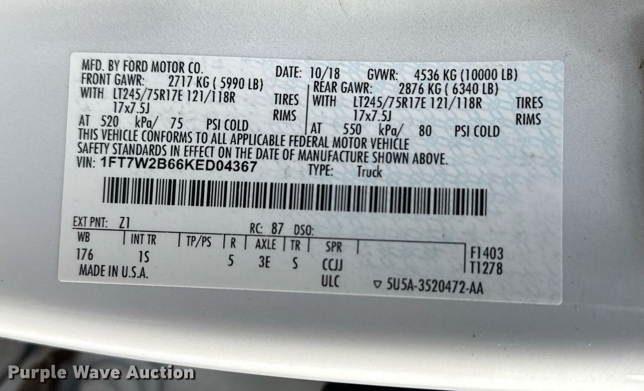 Purple Wave is selling a used 3/4 or 1 Ton Pickup or Van in Oklahoma. This item is a 2019 Ford F250 Super Duty Crew Cab pickup truck with the following: Miles: 133,165 on odometer, VIN: 1FT7W2B66KED04367