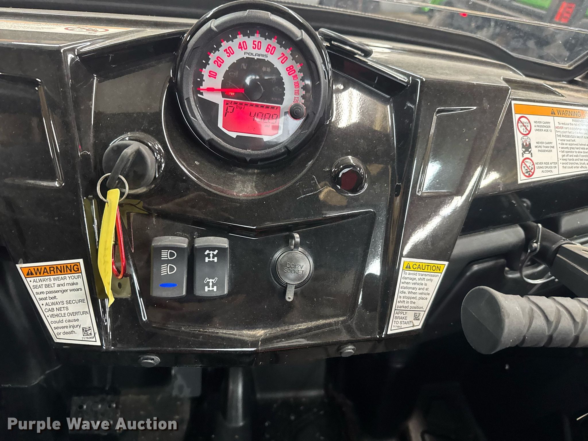 Purple Wave is selling a used Utility Vehicle in Oklahoma. This item is a 2012 Polaris Ranger RZR S utility vehicle with the following: Miles: 909 on odometer, Hours: 82 on meter, VIN: 4XAVE76A9CF666637