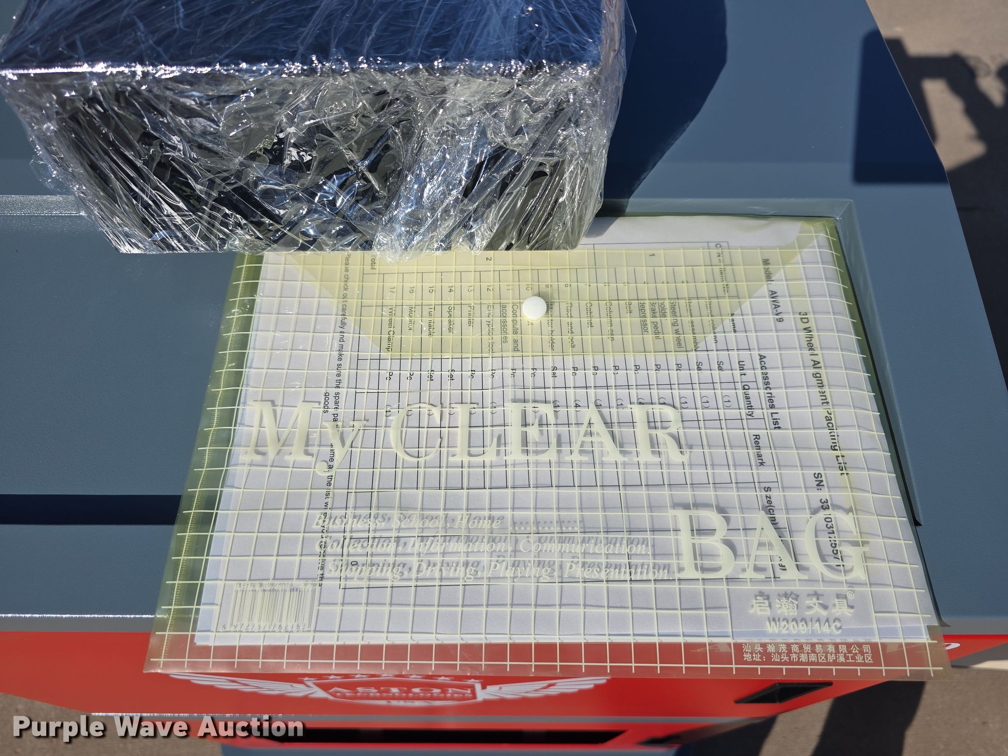 2024 Aston Technologies AWA-V9 wheel alignment machine. Serial: 33003125571. Dimensions 27" L x 28" W x 42" H. Features Clamping capacity: 10" to 24" diameters, LED monitor, LED backlight monitor, HP printer, Keyboard. Notes Unused. Nebraska Commercial Equipment. Papillion, NE 68046