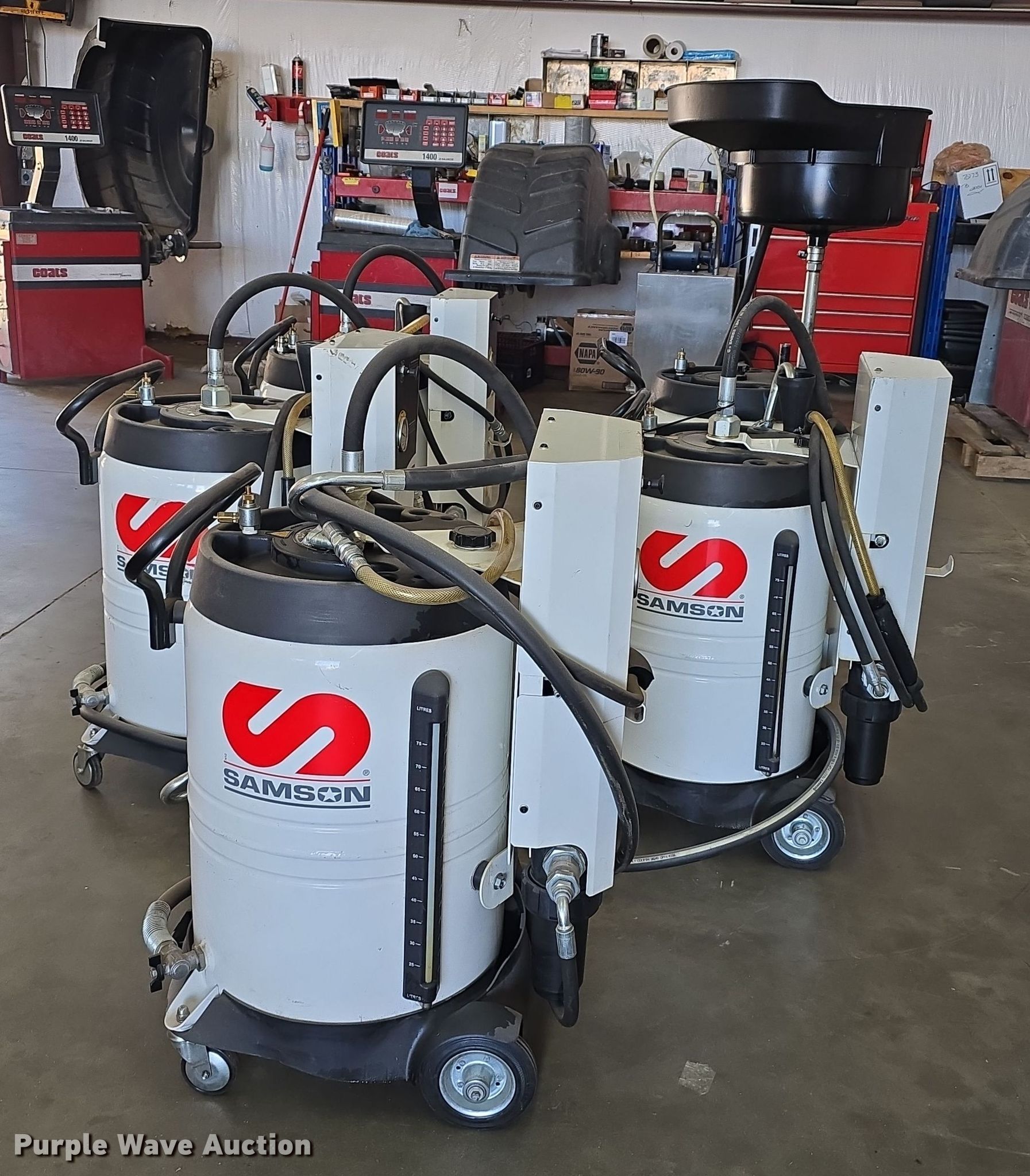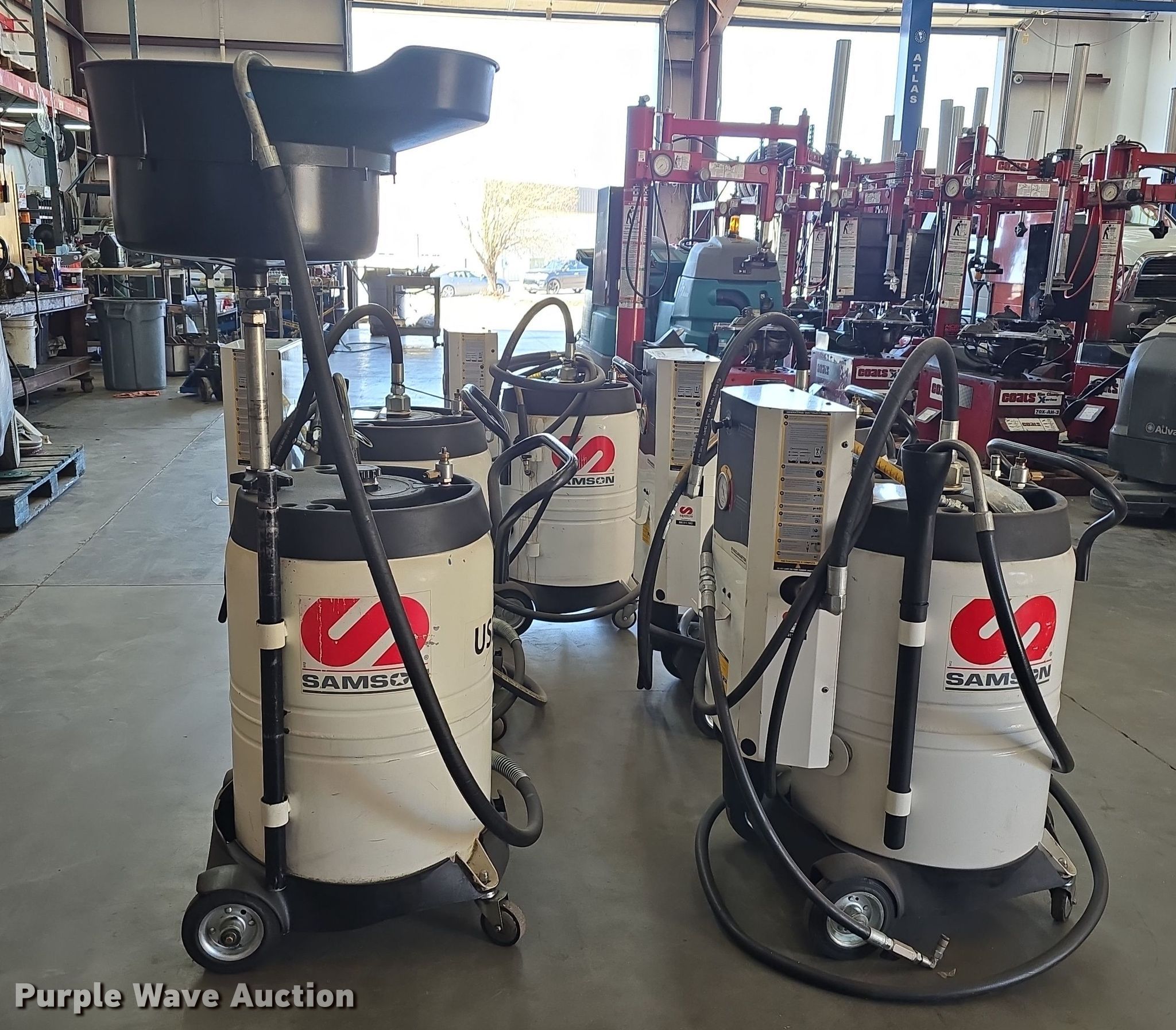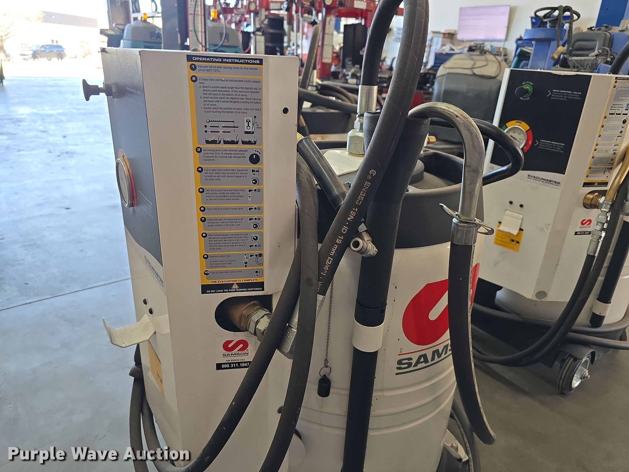 Purple Wave is selling a used Tools in Nebraska. This item is a (4) Samson Evacumaster oil suction units with the following: Capacity: 26 gallons, Samson oil drain barrel, Capacity: 26 gallons