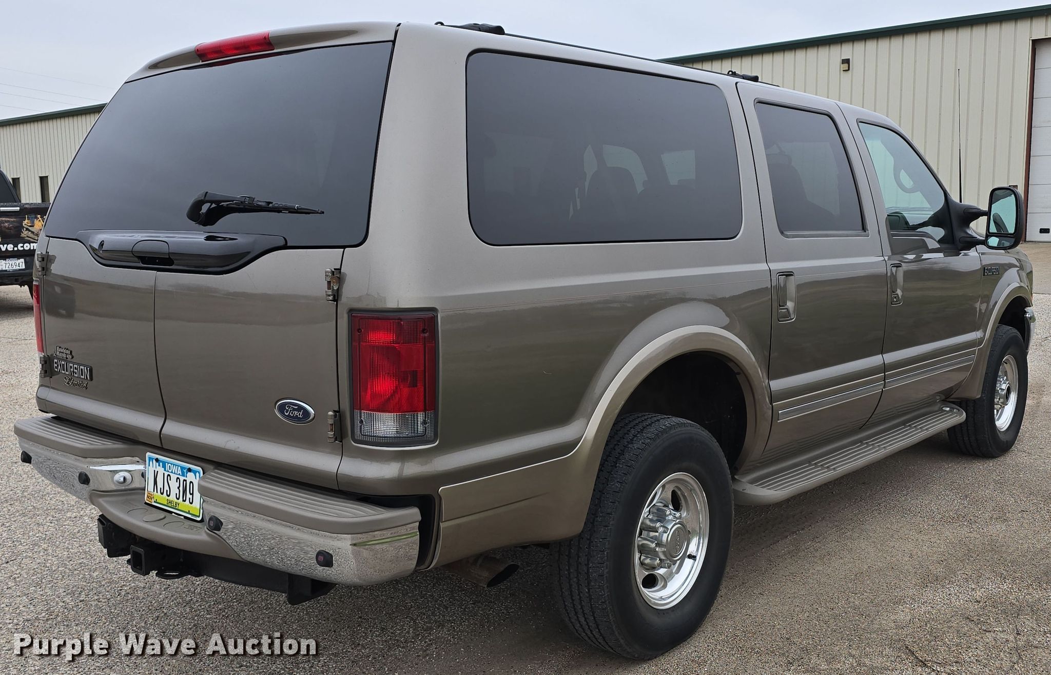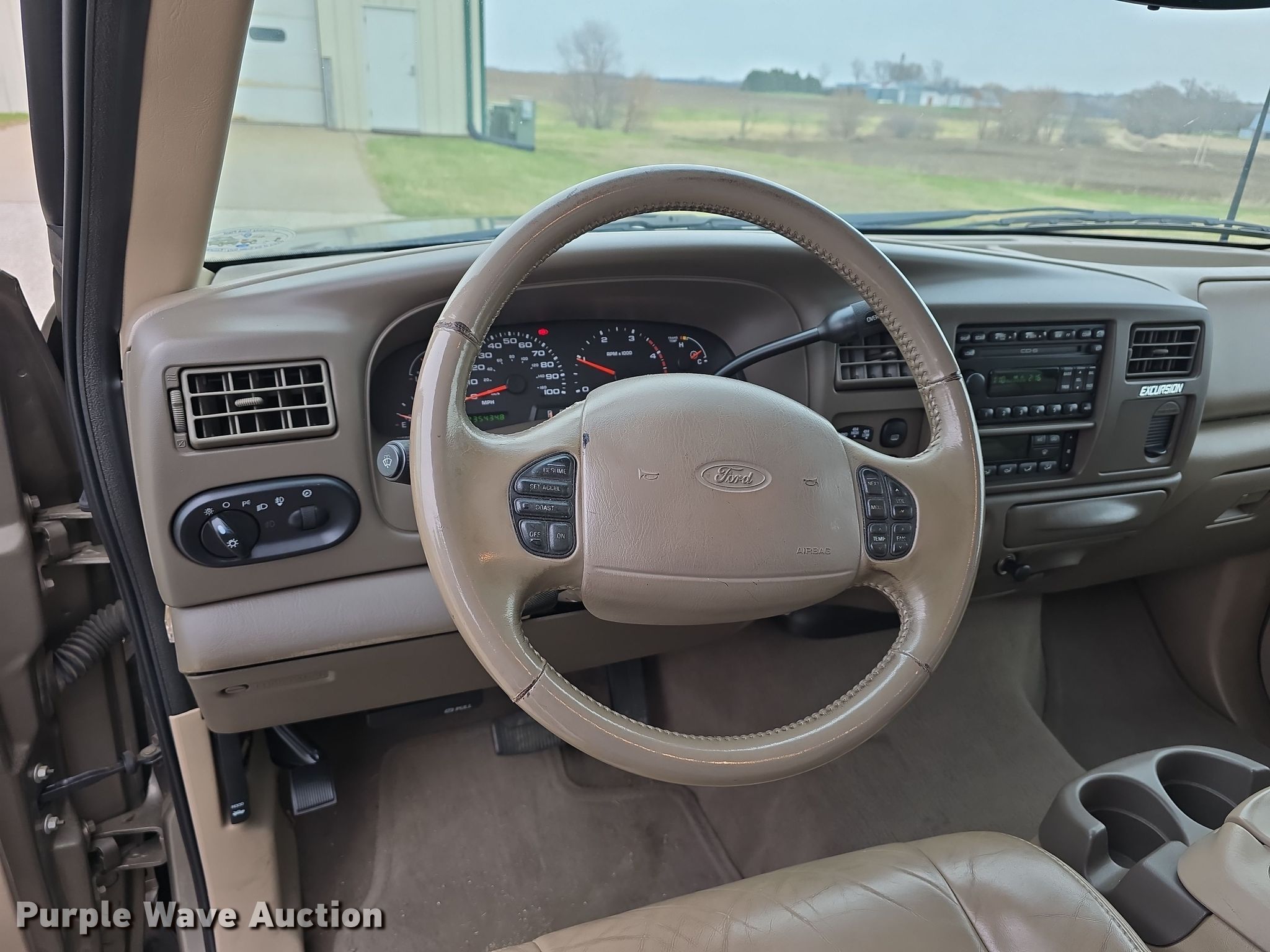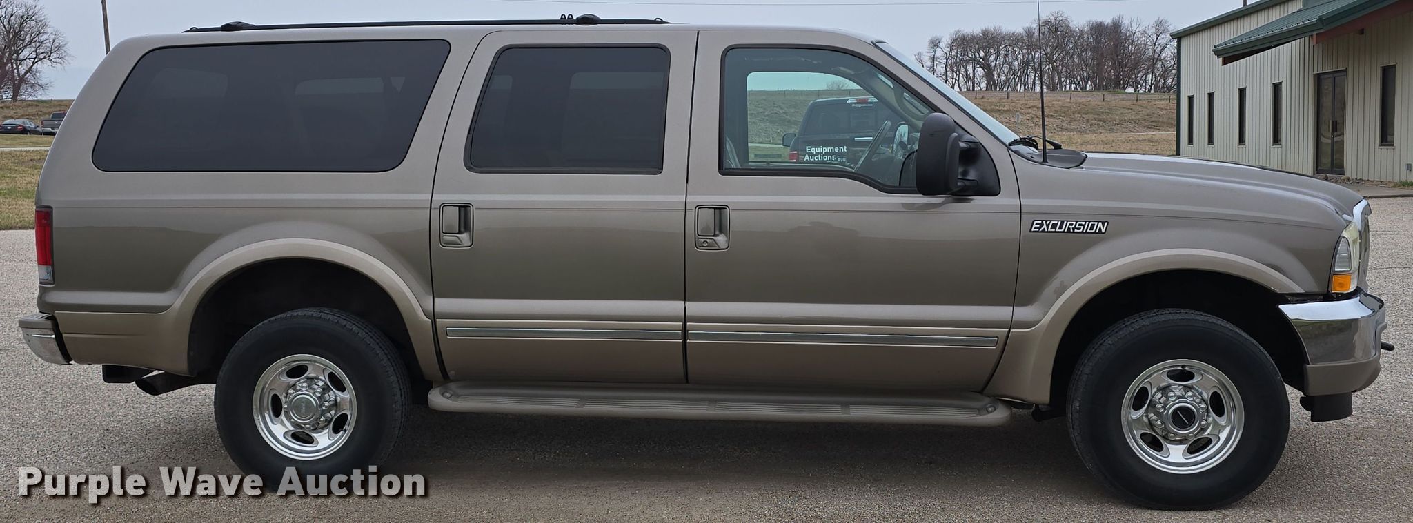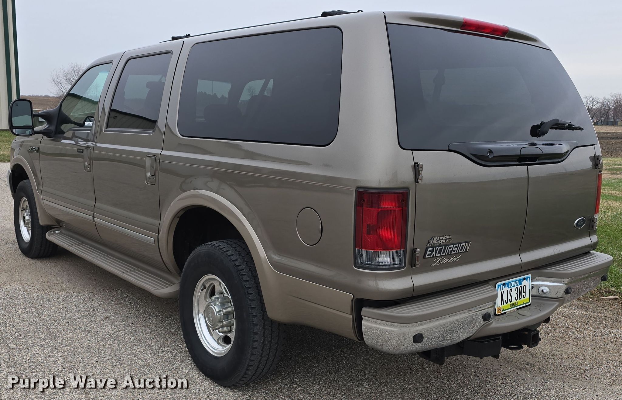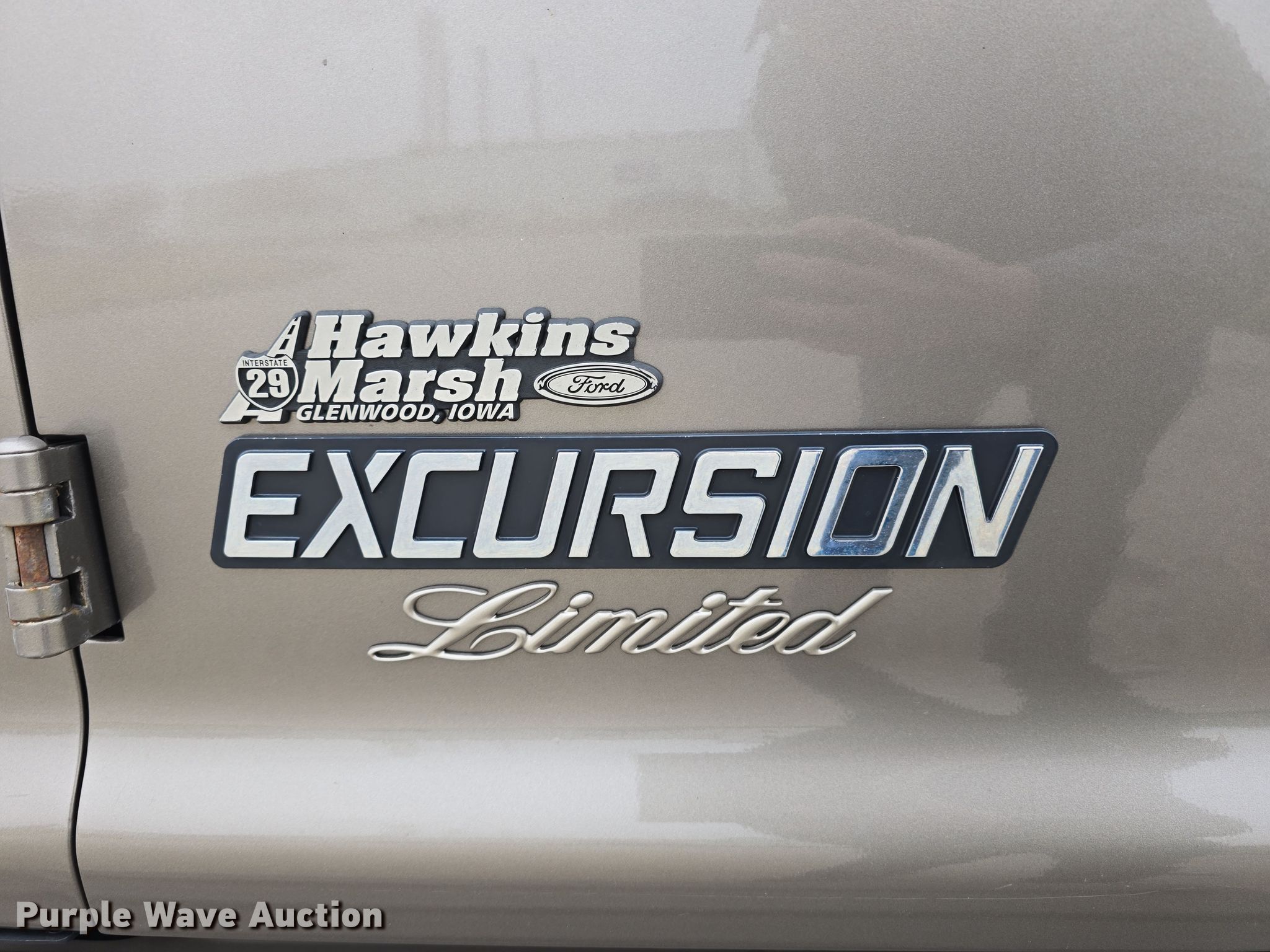 2002 Ford Excursion Limited SUV. Miles: 235,435 on odometer, VIN: 1FMSU43F42EB24861. Engine Displacement: 7.3L V8 OHV, Cylinders: 8, Fuel type: Diesel. Transmission Automatic, Four wheel drive. Interior AC, Heat, Seat: Heated, Power driver, Power passenger, Heated mirrors, Power windows, Power locks, Cruise control. Tires Size: 265/75R16. Iowa title. Title distribution may be delayed up to 14 days from verification of funds. Harlan, IA 51537