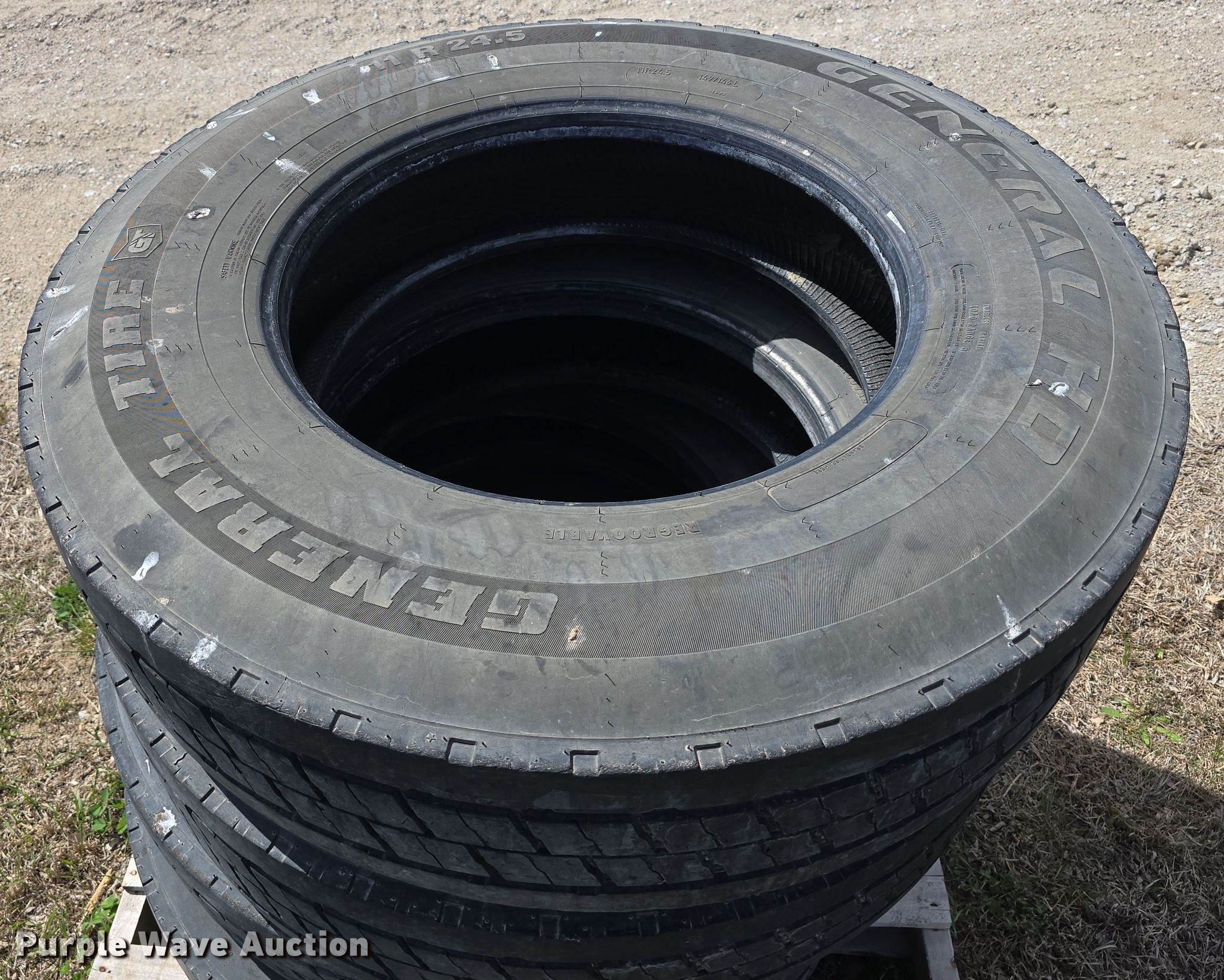 Purple Wave is selling a used Fleet Tires in Nebraska. This item is a (4) General Tire 11R24.5 tires with the following: (4) General Tire 11R24.5 tires. High Plains Erosion. Hickman, NE 68372