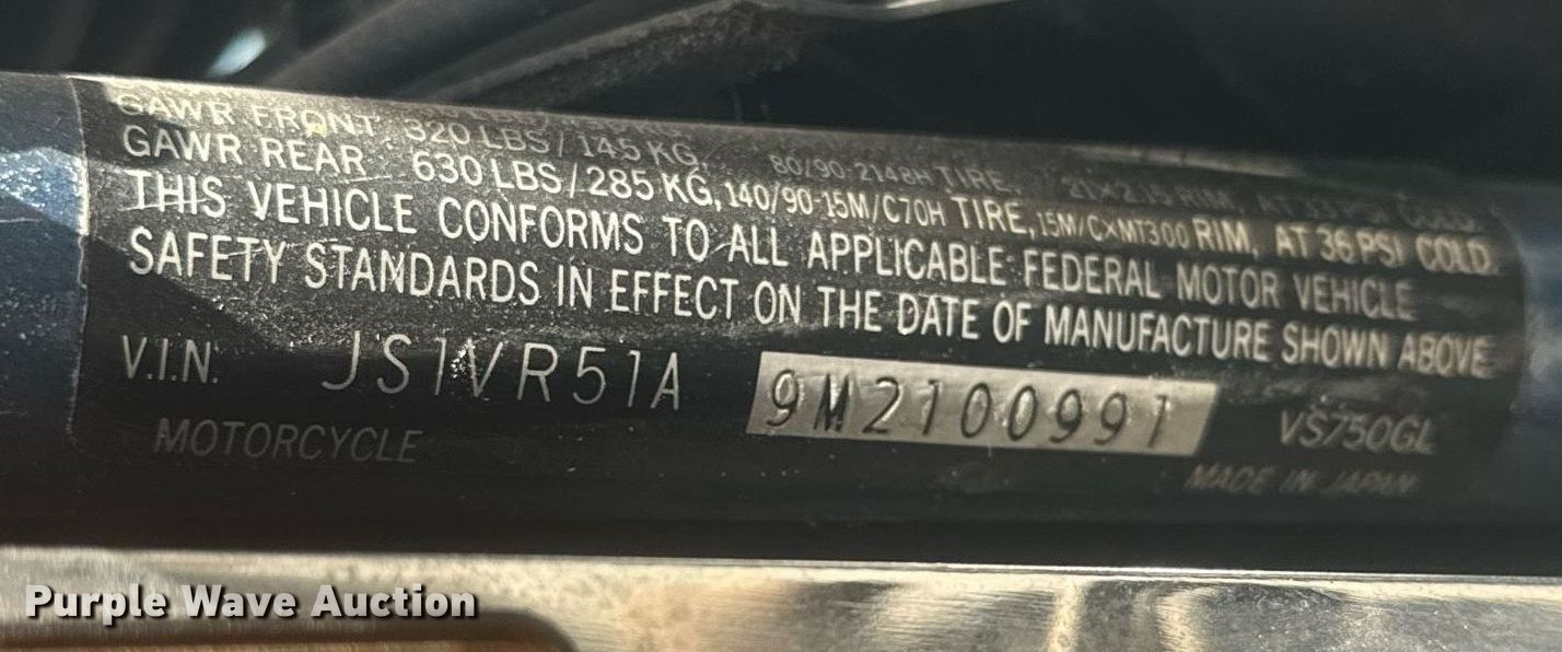 Purple Wave is selling a used Motorcycle in Oklahoma. This item is a 1991 Suzuki Intruder VS750GL motorcycle with the following: Miles: 43,161 on odometer, VIN: JS1VR51A9M2100991