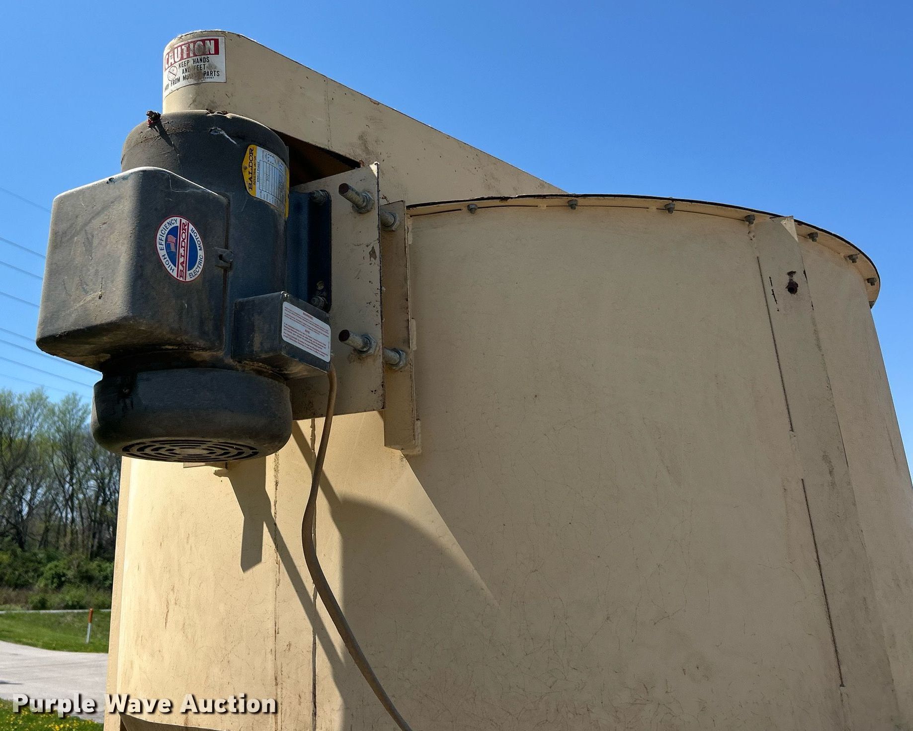 NBE Whirlwind feed mixer. 8' H x 48" W, Baldor electric motor, Phase: Single, HP: Three, Hertz: 60. Emerald View Turf Farms. O'Fallon, MO 63366