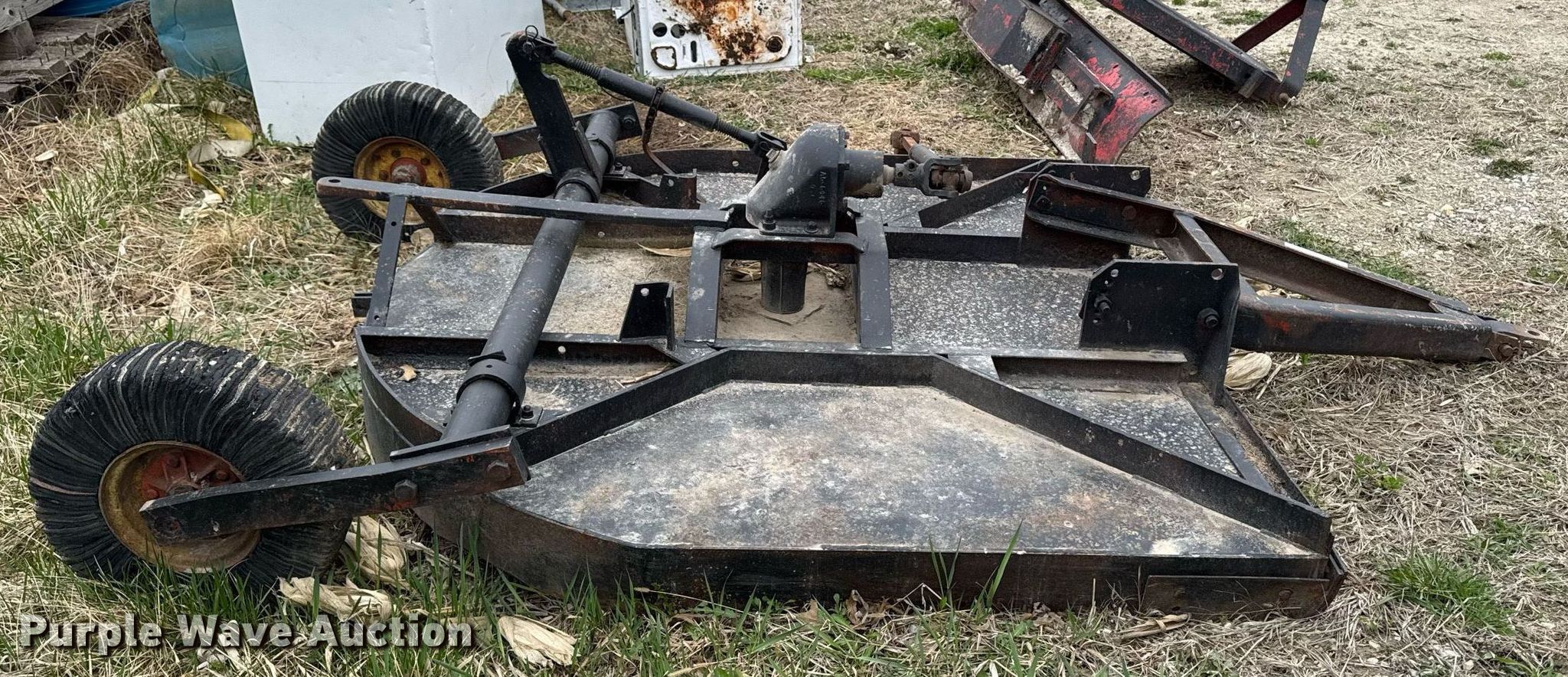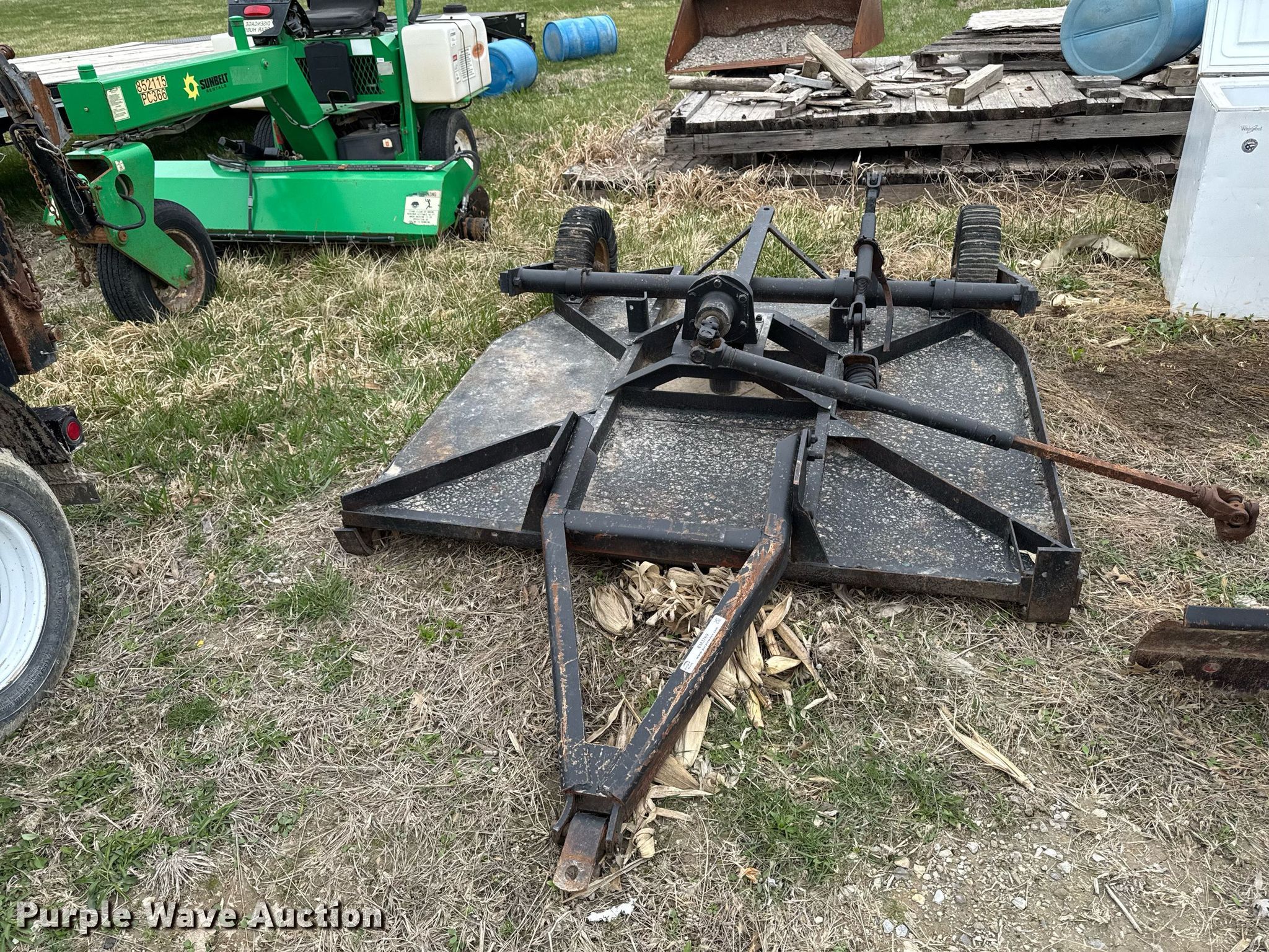 Purple Wave is selling a used Ag Tractor Loader or Attach. in Iowa. This item is a Tractor attachments with the following: Adjustable blade, Width: 8', Cutting edge: Bolt on, Hitch: Three point, Rotary mower, Width: 72", PTO: 540