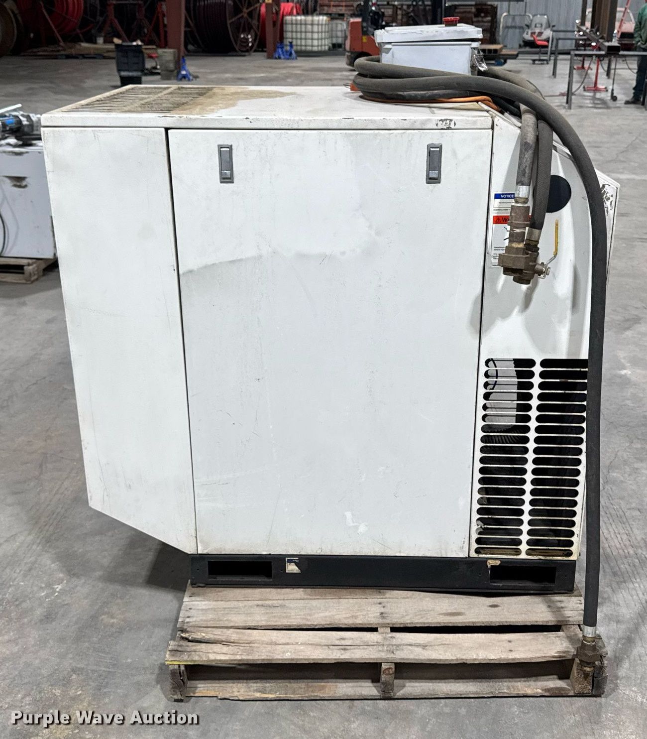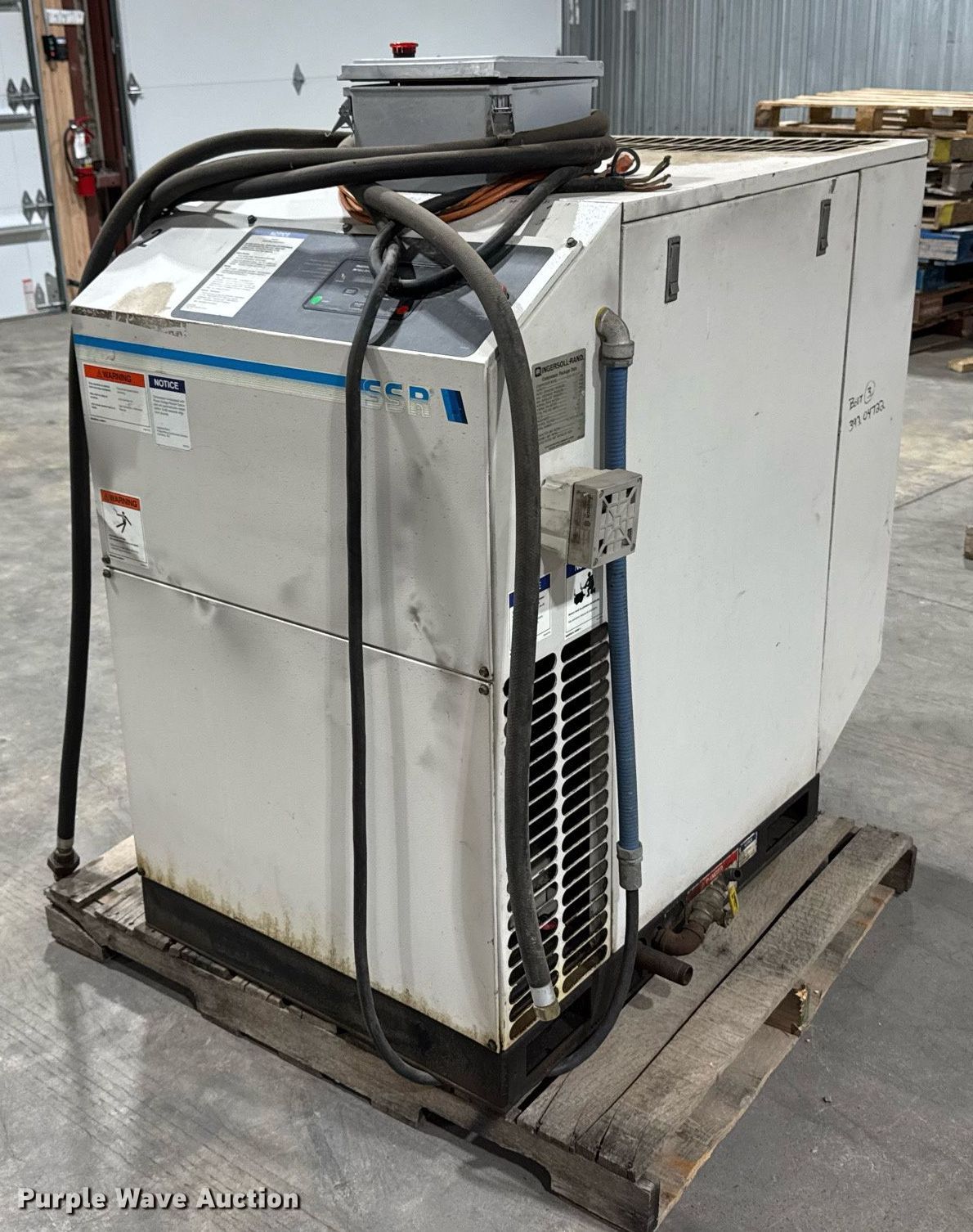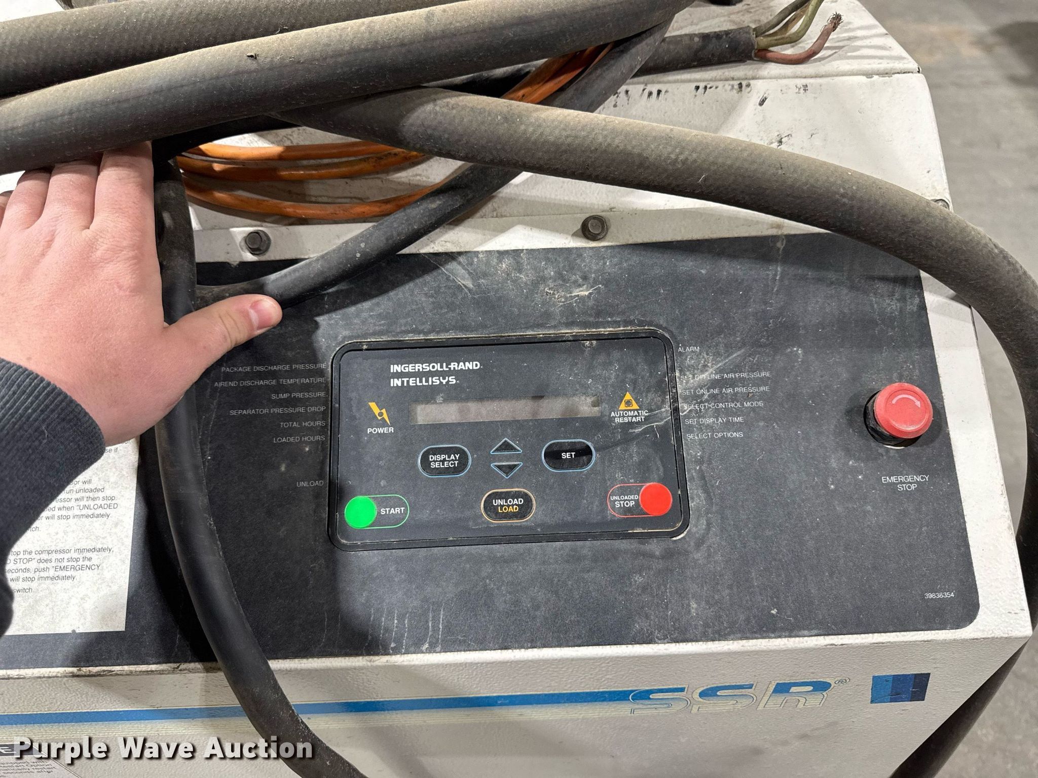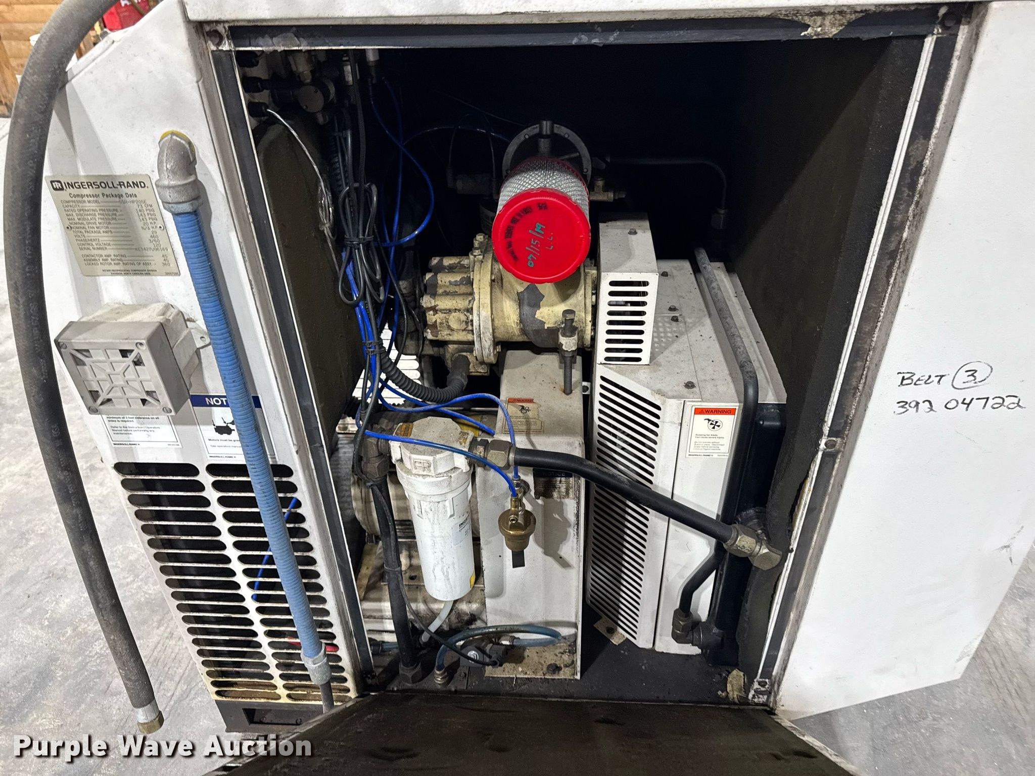 Purple Wave is selling a used Air Compressor in Iowa. This item is a Ingersoll-Rand SSR-HO20SE air compressor with the following: Serial: KE3427U96169