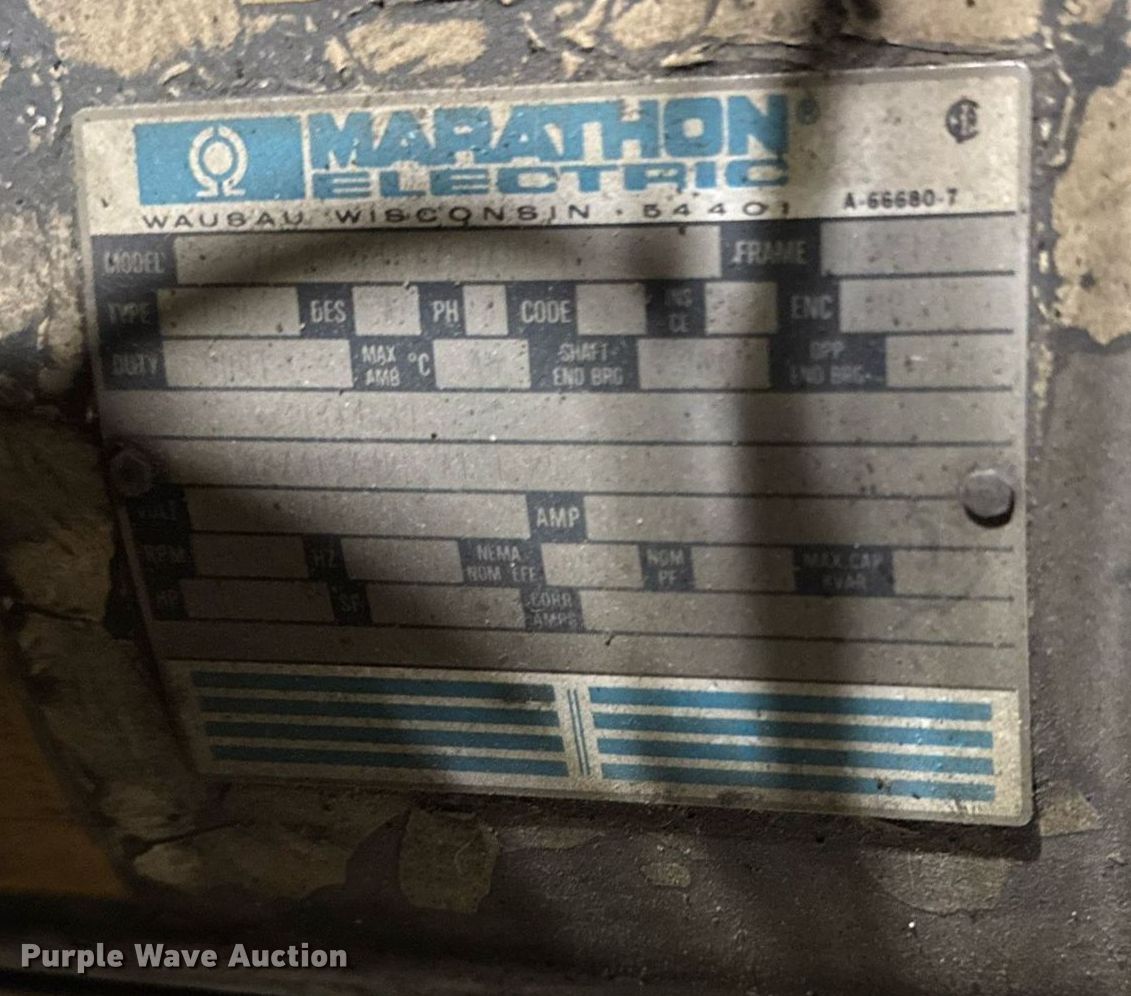 Ingersoll-Rand SSR-HO20SE air compressor. Serial: KE3427U96169. Electric Motor Marathon, HP: 20, Volts: 460, Phase: Three. Features Air compressor CFM: 73, PSI: 140. Notes Unknown operating condition. Boulder Contracting LLC. Grundy Center, IA 50638